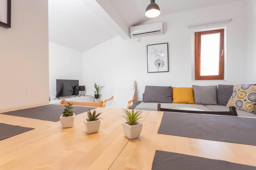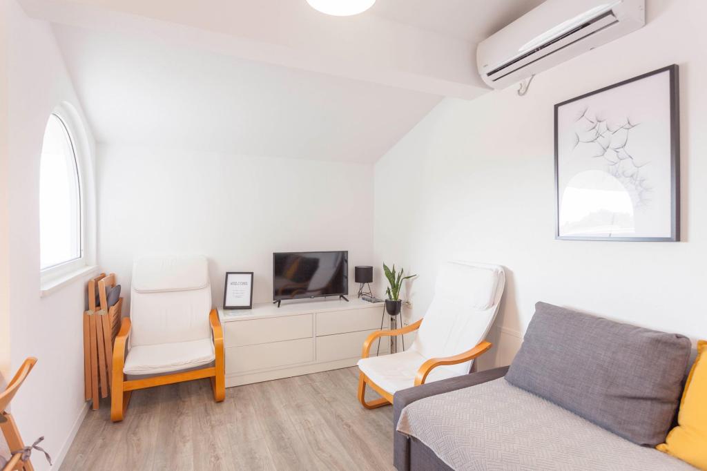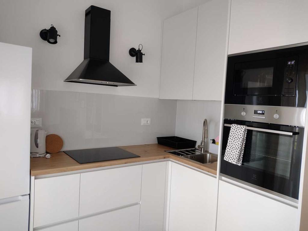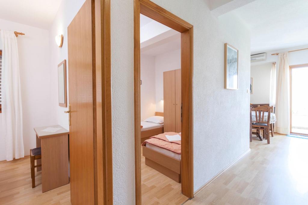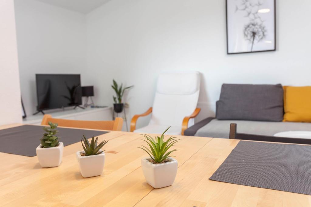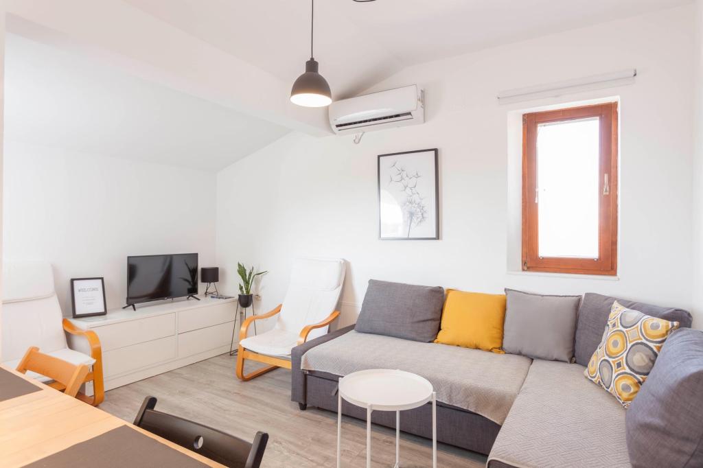 Appartements confortables avec deux chambres, cuisine spacieuse et salon avec vue sur la mer, près de la plage. Parking inclus dans le prix.