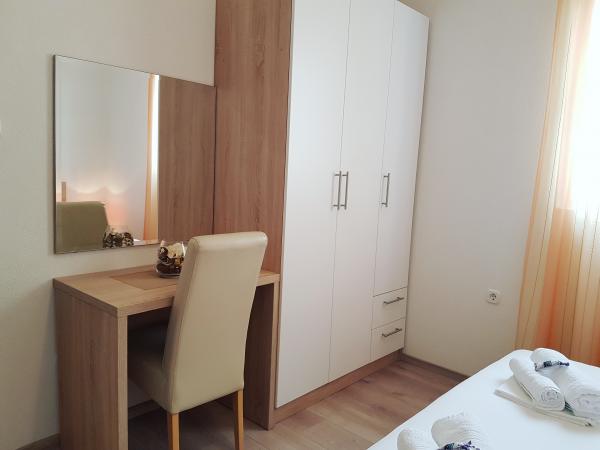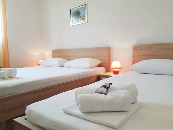 Chers visiteurs, les appartements "Stella" sont situés sur l'île de Pag dans une petite ville touristique de Zubovići, loin du bruit et de la foule. Des plages naturelles de sable et de galets, des criques cachées et une mer cristalline laissent à chaque client la possibilité de choisir dans l'une d'elles pour trouver la paix désirée. Nous proposons l'hébergement dans 2 appartements neufs (2 à 4 personnes) à 5-10 min à pied des plages de sable. Les deux disposent de la climatisation, d'une cuisine entièrement équipée, d'une télévision LCD, d'une connexion Wi-Fi gratuite et illimitée, d'un parking privé et d'une cheminée dans la cour. De plus, les deux appartements disposent d'une terrasse avec une belle vue sur la baie et la plage. Pas même 2 minutes à pied de l'appartement, il y a un magasin, une boulangerie, un bureau de poste et une petite église. Vous trouverez également plusieurs restaurants à proximité où vous pourrez déguster diverses spécialités gastronomiques locales. Note spéciale - dans les appartements, nous adhérons aux mesures épidémiologiques et les deux hôtes sont vaccinés contre le virus Covid19.