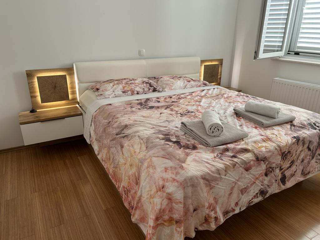 Bel appartement de deux pièces moderne et confortable. Endroit calme et paisible où tout est à proximité. Structure de l'appartement : -Cuisine moderne et entièrement équipée avec lave-vaisselle, four, micro-ondes. Débarras séparé avec machine à laver et sèche-linge. -Salon spacieux où vous pourrez profiter de la télévision sur un grand écran LDC incurvé avec plus de 100 programmes iptv, netflix, youtube. Wifi gratuit. -Salle de bain moderne et design avec douche. -Chambres séparées avec lits doubles de qualité supérieure (doublure en cuir). Il y a de grandes armoires à l'intérieur des chambres.