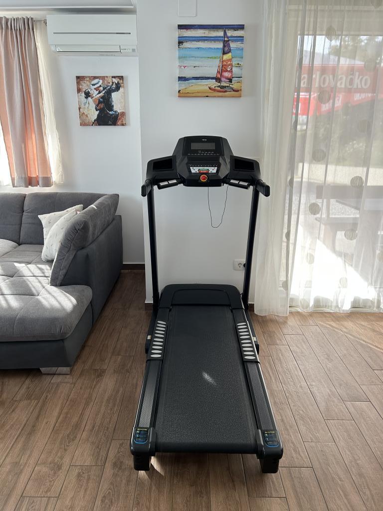 Grand jardin avec barbecue. Dans l'appartement, un tapis roulant Ring de haute qualité est à la disposition des clients.