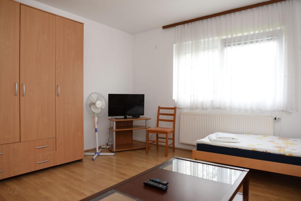 Près de l'autoroute, à l'entrée même de Županje. Grand parking. Supermarché à proximité. Une salle à manger commune équipée d'une bouilloire, d'un four micro-ondes et d'un réfrigérateur est à votre disposition. Il est possible d'organiser le dîner et/ou le petit-déjeuner moyennant un supplément. Sèche-cheveux sur demande.