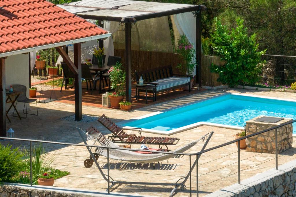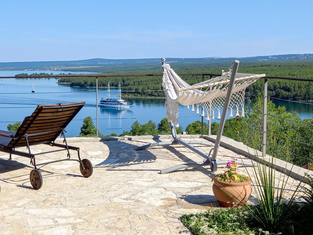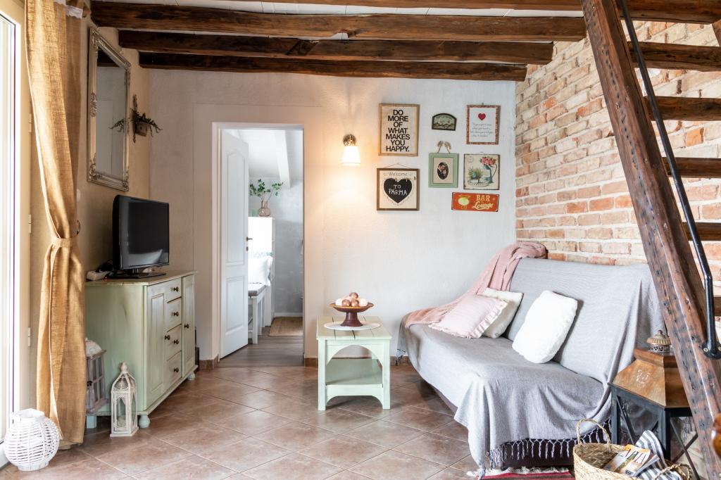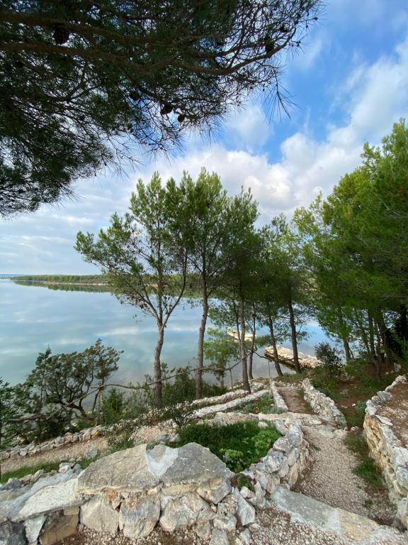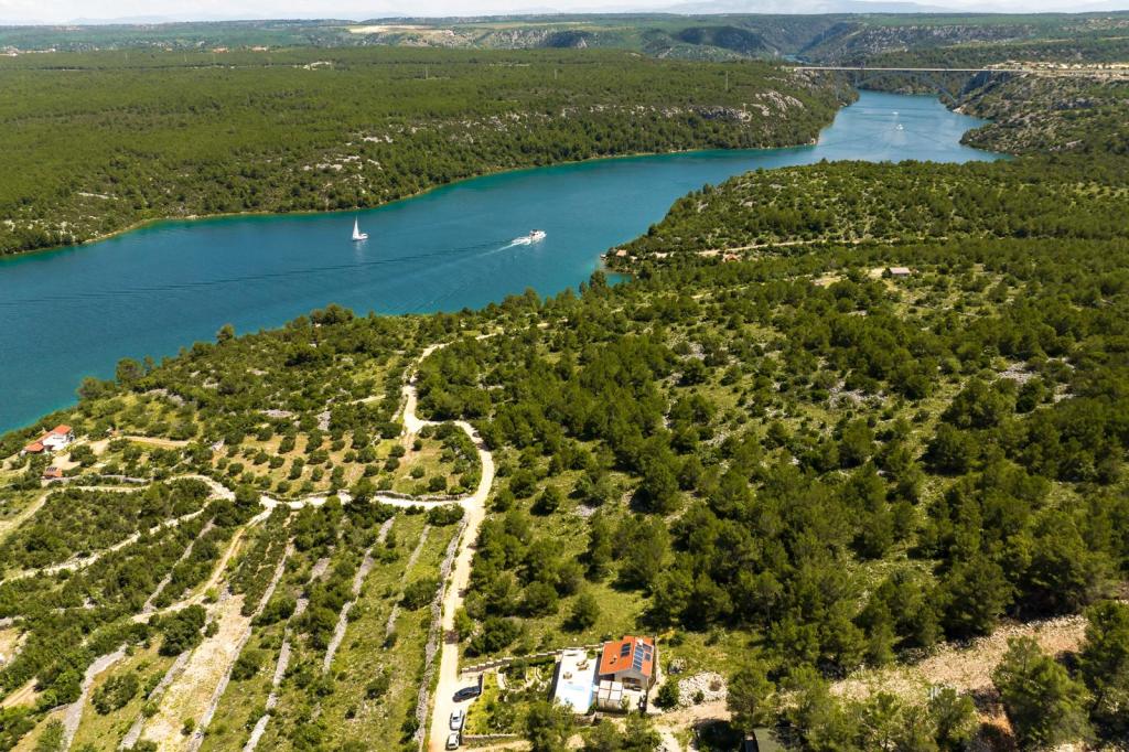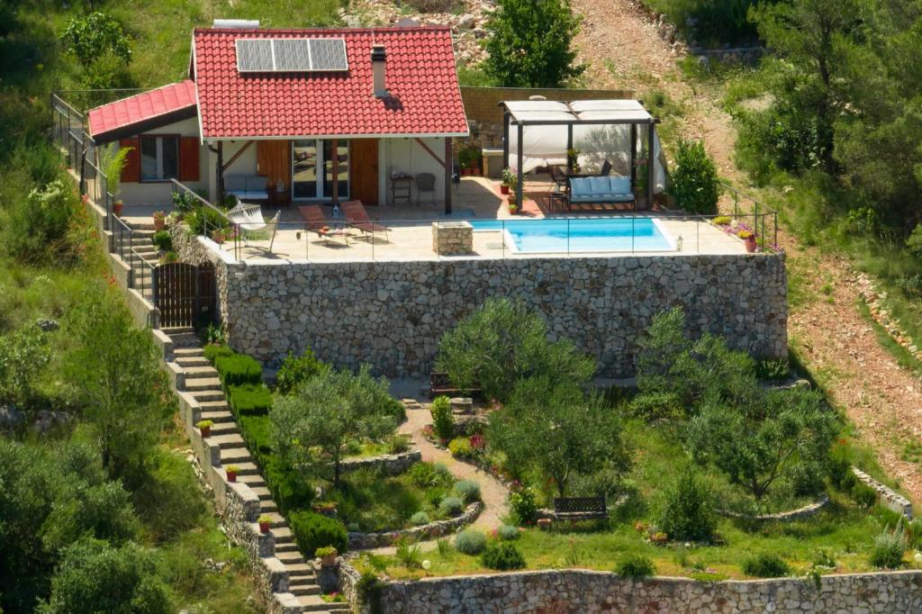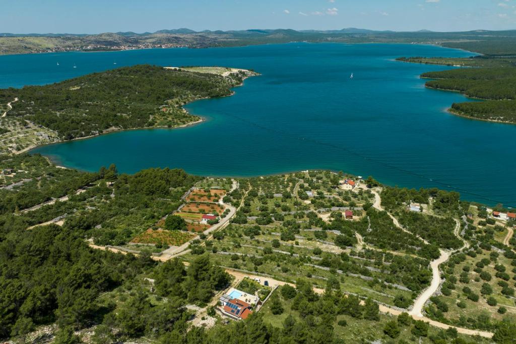 Cette petite maison irrésistible est située dans le village de Bilice Vrulje, à seulement 15 minutes en voiture du centre de Šibenik, mais assez loin du bruit et de l'agitation de la ville. L'emplacement fait de cette maison le choix parfait pour ceux qui ont besoin de paix et de repos dans la nature. Et outre l'emplacement, l'extérieur de cette charmante petite villa vous ravira, ainsi que son intérieur féerique minutieusement décoré. La maison se compose d'une cuisine/salle à manger, d'un salon, d'une salle de bain, d'une chambre et d'une chambre sur la galerie. L'espace extérieur couvre 100 m2; la terrasse avec vue panoramique est l'endroit idéal pour profiter des couchers de soleil ou se rafraîchir dans la piscine. De plus, il y a aussi une pergola où vous pourrez vous abriter du soleil et déguster des repas préparés sur le gril. Et à seulement 5 minutes à pied se trouve une plage privée à l'ombre d'une pinède. Il y a une salle de stockage en bois sur la plage où vous pouvez ranger vos affaires pendant que vous vous baignez ou pagayez dans un kayak ou un SUP, qui sont également disponibles. La plage est également accessible en voiture.