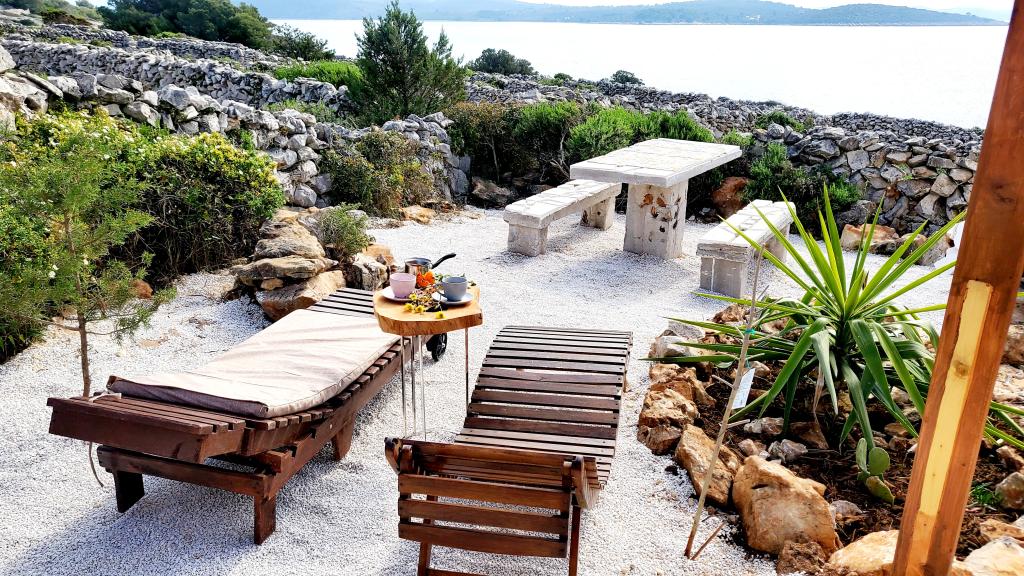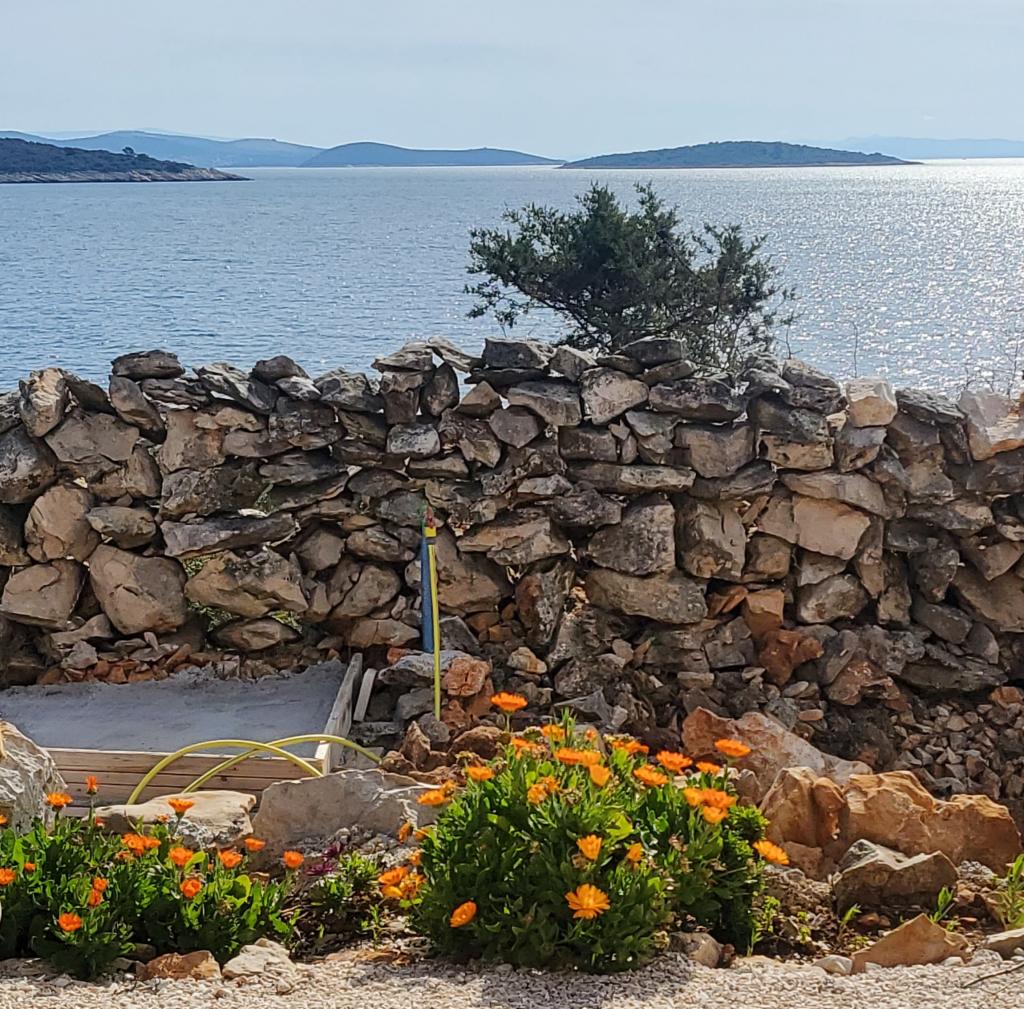 La mer et le soleil sont omniprésents sur l'Adriatique. Si vous souhaitez vous détendre loin du bruit de la ville et des passants, avec les plus beaux levers et couchers de soleil, cette île près de Trogir est idéale. Cette maison de vacances, alimentée par l'énergie solaire, est située à seulement 30 mètres de la mer et offre une vue imprenable sur les rochers naturels formés par le jeu millénaire des vagues. Cet ancien mobil-home, aujourd'hui rénové, est idéal pour tous les amoureux de la nature, de la verdure parfumée et du calme. Le Wi-Fi est inclus. Vous pouvez également emmener votre animal de compagnie en vacances, et pour les amateurs de barbecue, un grand foyer extérieur est à votre disposition. La maison est climatisée et comprend une cuisine entièrement équipée, deux chambres et une salle de bain. Devant la maison se trouve une terrasse couverte avec table, chaises, transats et douche extérieure. Alors, si vous souhaitez venir dans un endroit où le temps passe lentement et si vous êtes avide de nature intacte, venez chez nous.
