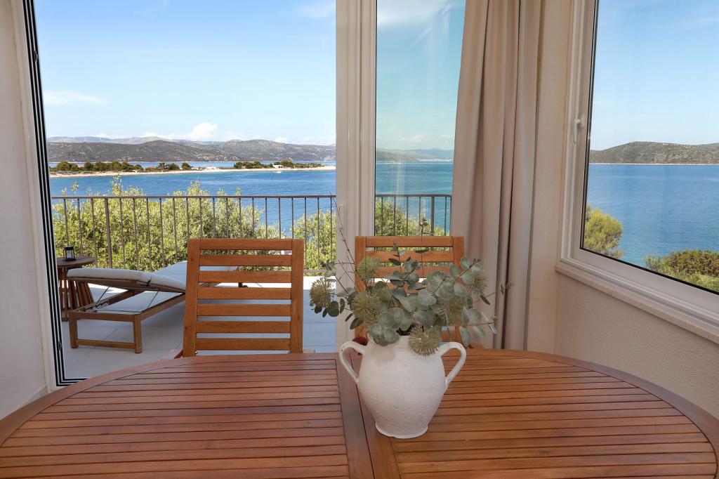 Taxe de sejour est inclus dans le prix. Document de confirmation de réservation lors de la réservationRusso 2 est une maison très confortable et raffinée, nichée dans la nature. Elle dispose d'une grande terrasse ensoleillée et panoramique offrant de magnifiques levers de soleil, vous invitant à vous lever tôt. À quelques dizaines de mètres en contrebas, une plage rocheuse privée et tranquille offre un accès facile à l'eau. La baie est sûre et idéale pour la baignade et le surf. Vous pourrez vous promener le long de la côte ou emprunter les pittoresques sentiers surélevés. La longue plage de sable bleu de Vela Rina, paisible matin et soir, est accessible en 10 minutes à pied, agréablement située le long des oliveraies et à travers un vieux village pittoresque. Notre séjour de septembre sur l'île a été très paisible et riche en découvertes. La maison est confortable, meublée avec goût et soin, très propre et bien rangée, mais accueillante. Une douche extérieure supplémentaire, ornée d'un olivier, avec vue sur la mer et parfumée de lavande et de romarin, constitue la plus belle salle de bain. La salle de bain intérieure, bien sûr, est également confortable et joliment décorée. Les propriétaires Snježana et Siniša sont extrêmement sympathiques, chaleureux et hospitaliers. Bien qu'habitant de l'autre côté de la mer, ils sont toujours serviables et savent réserver des surprises chaleureuses et amicales. Si vous aimez les vacances paisibles et confortables, la nature, la vue imprenable sur la mer et les sentiers sinueux à travers la végétation méditerranéenne, nous vous recommandons vivement cet endroit. Drvenik Mali est une île minuscule mais pleine de charme, et la maison Russo 2 avec vue sur la mer est tout aussi charmante.