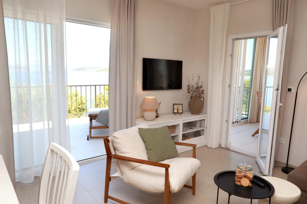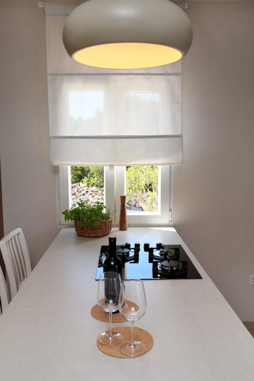 Ces dernières années, nous cherchions un hébergement qui répondrait à tous nos besoins : vue sur la mer, proximité de la plage, éloignement des voisins et, surtout, calme. L'hébergement Russo 2 comblait tous nos critères et dépassait nos attentes. Comme si ces magnifiques photos prenaient vie. Une vue panoramique imprenable, un emplacement idéal et peu fréquenté sur l'île, si le calme et une plage privée peu fréquentée sont importants pour vous. La plage est rocheuse, mais joliment aménagée en terrasses, elle est donc accessible et magnifique. L'eau est cristalline et divine. La maison est neuve et conçue pour accueillir vos invités : une immense terrasse ombragée l'après-midi, et le matin, vous pourrez admirer le lever du soleil, vous réveiller de la mer et vous réchauffer au soleil matinal (le petit plus : les chaises longues rembourrées !). J'adore cuisiner en vacances et cette cuisine était celle de mes rêves. Plus grande que chez moi, elle était équipée de tous les appareils électroménagers et ustensiles nécessaires pour cuisiner et pâtisser : four, lave-vaisselle, mixeur plongeant, papier sulfurisé, film alimentaire, cafetière et bien plus encore. La cuisine d'été extérieure est déjà installée ! Charbon de bois, brûleur à gaz, tout est à votre disposition. Enfin, je tiens à remercier les propriétaires Siniša et Snježana, car nous n'avons jamais reçu un accueil aussi chaleureux. Adaptables, chaleureux et toujours disponibles. Nous serons heureux de revenir dans les années à venir.
