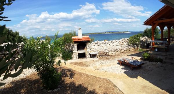 La maison est située à 10 m de la mer avec vue sur la mer. Situé dans une baie avec une plage de sable et de béton, entouré d'une nature idyllique intacte. La distance de la propriété voisine est de 500 mètres. Distance du centre ville 500 mètres - distance de la mer 10 mètres - l'amarrage du bateau est situé devant la maison. La maison dispose d'une terrasse. Possibilité de livraison de courses (en accord avec le propriétaire moyennant un supplément) ou de restauration autonome sur l'île de Vrgada avec votre propre bateau - tous les jours. DESCRIPTION : la maison dispose de 2 chambres. E-mail. L'énergie est du 12 V ou du 220 V (solaire), l'éclairage, le réfrigérateur à gaz. L'eau est de l'eau de pluie provenant d'un réservoir d'eau de pluie, installé dans la maison, principe de chauffage de l'eau à l'aide d'une chaudière externe (l'eau doit être traitée avec parcimonie). Possibilité d'organiser un changement de linge de lit et un nettoyage de l'espace par le propriétaire une fois par semaine. Possibilité d'acheter du poisson frais au village de pêcheurs. Possibilité d'utiliser les amarres pour le bateau sur la bouée devant la maison. Un parking est disponible à Murter. Le transport est assuré par bateau depuis Murter moyennant des frais.