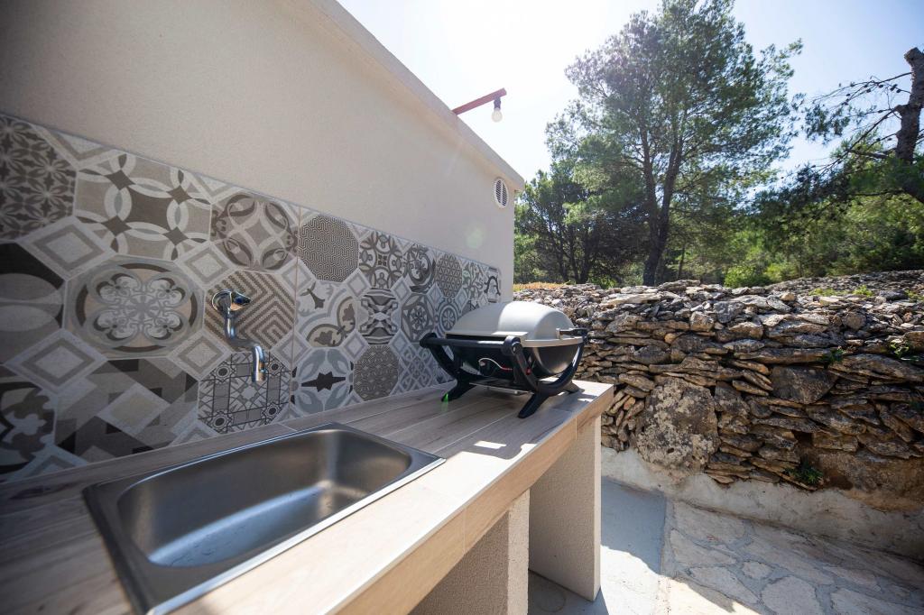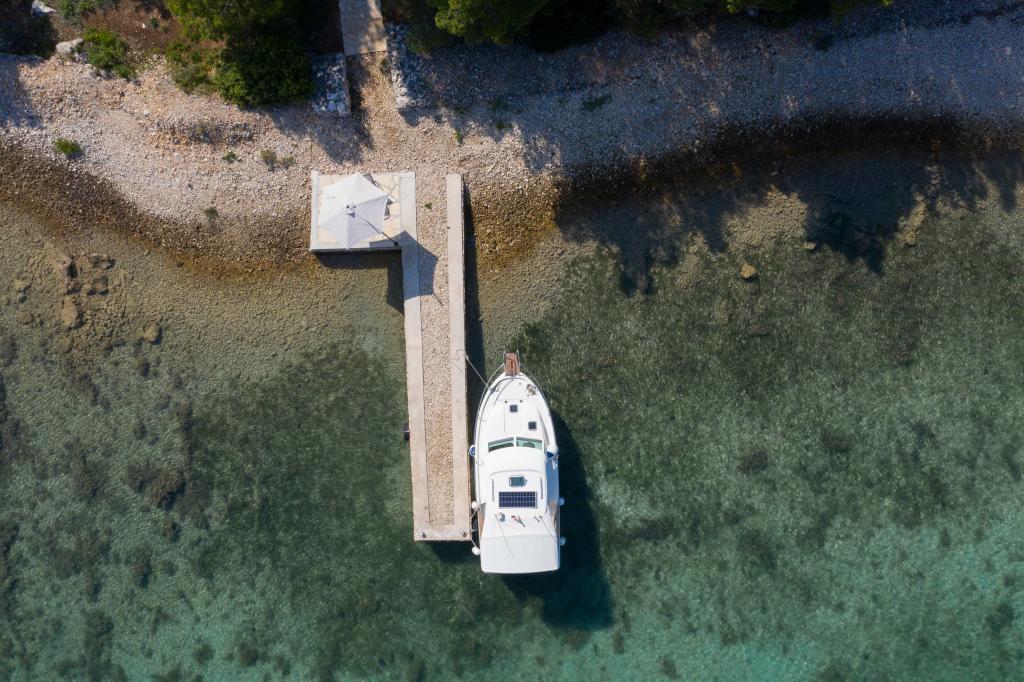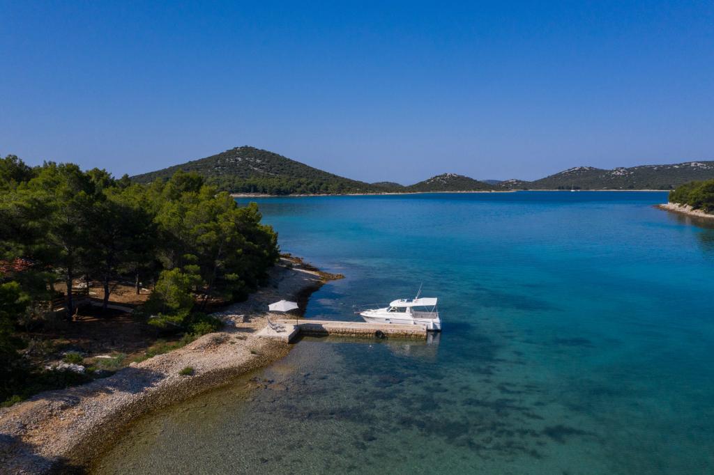 La Sea House Modrave est située dans la baie de Zečica, à 15 minutes de Murter. Elle se trouve à 10 mètres de la mer et dispose de son propre quai. L'accès se fait uniquement par bateau. Un parking gratuit est disponible à Murter, ainsi qu'un transfert jusqu'à la maison. La maison comprend une chambre avec un lit double, une salle de bain avec douche et un canapé-lit pouvant accueillir deux personnes supplémentaires. La cuisine est équipée d'un réfrigérateur avec congélateur et d'une cuisinière à gaz. Elle est également équipée d'une télévision avec récepteur satellite, d'une connexion internet Wi-Fi et de la climatisation. La maison est alimentée par l'énergie solaire et l'eau de pluie, ce qui est suffisant si elle est utilisée de manière rationnelle. Les animaux de compagnie sont admis moyennant un supplément de 5 euros par jour.
