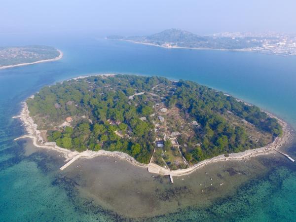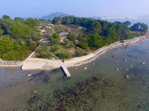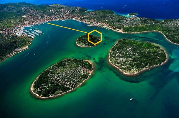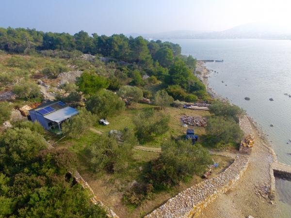 Êtes-vous fatigué des plages bondées ? Vous recherchez le calme et la nature ? Vous cherchez quelque chose de différent ? Nous offrons une expérience d'île presque privée ! Une petite maison en bois, pour deux personnes ou un couple avec un petit enfant, pour les vacances d'été. Un endroit où vous pourrez profiter du calme et de la nature dans une oliveraie de 800 m2, presque seul sur l'île. La durée minimale du séjour est de 7 jours. La maison dispose de sa propre plage, d'une cuisine, d'un barbecue et d'un quai pour bateau. La maison dispose d'eau potable et d'électricité (solaire). Il y a des toilettes. La douche est à l'extérieur. La ville de Murter est située à proximité (300 mètres), soit environ 10 minutes en bateau.