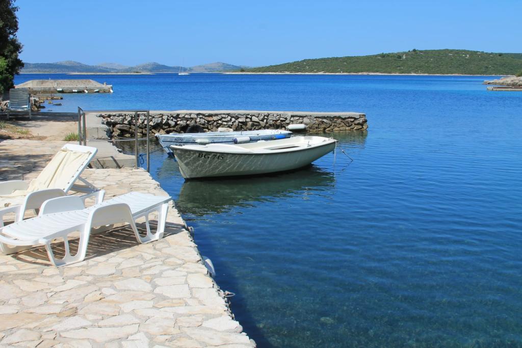 Maison Rhapsody in Blue est situé sur l'île de Pasman dans la baie Kruševica et est situé sur la belle plage. La maison peut accueillir jusqu'à 6 personnes, parce qu'il ya deux chambres adaptées à chacune des trois personnes, avec un lit double au-dessus duquel est un lit superposé pour une personne. L'électricité de 12 V est l'énergie solaire et l'onduleur 12V-220V-300W. L'eau courante est installé dans la cuisine, la salle de bain et la douche sur la plage. Il est possible de louer l'hiver, l'eau chaude est disponible via la chaudière à gaz dans toute la maison, ainsi que le chauffage de la maison par un poêle à bois. Maison Rhapsody in Blue est possible de réserver au moins 7 jours du samedi au samedi. Grill est situé à l'extérieur de la maison, une cheminée en briques dans la maison. linge propre, serviettes de bain et torchons sont dans la maison et sont changés chaque semaine. La maison dispose d'une télévision par satellite et radio avec lecteur de CD et USB. Nous vous assurons que ce type de vacances en raison de l'emplacement et la position de la maison a été une expérience inoubliable pour des vacances tranquilles en famille ou pour une fête avec des amis.