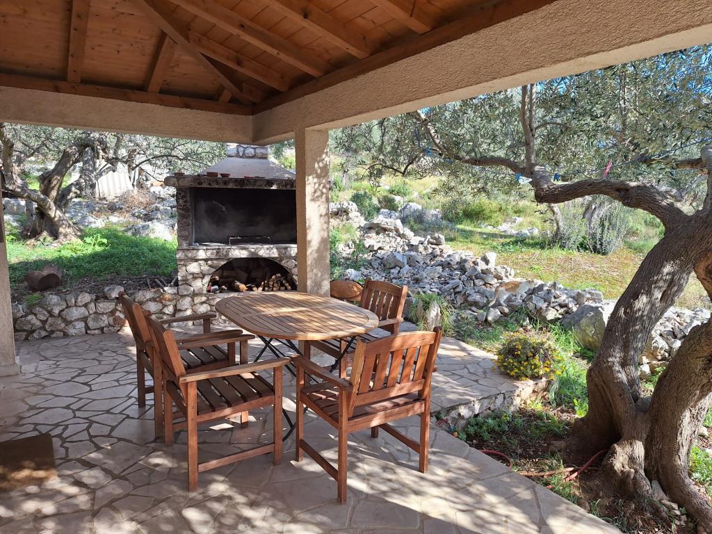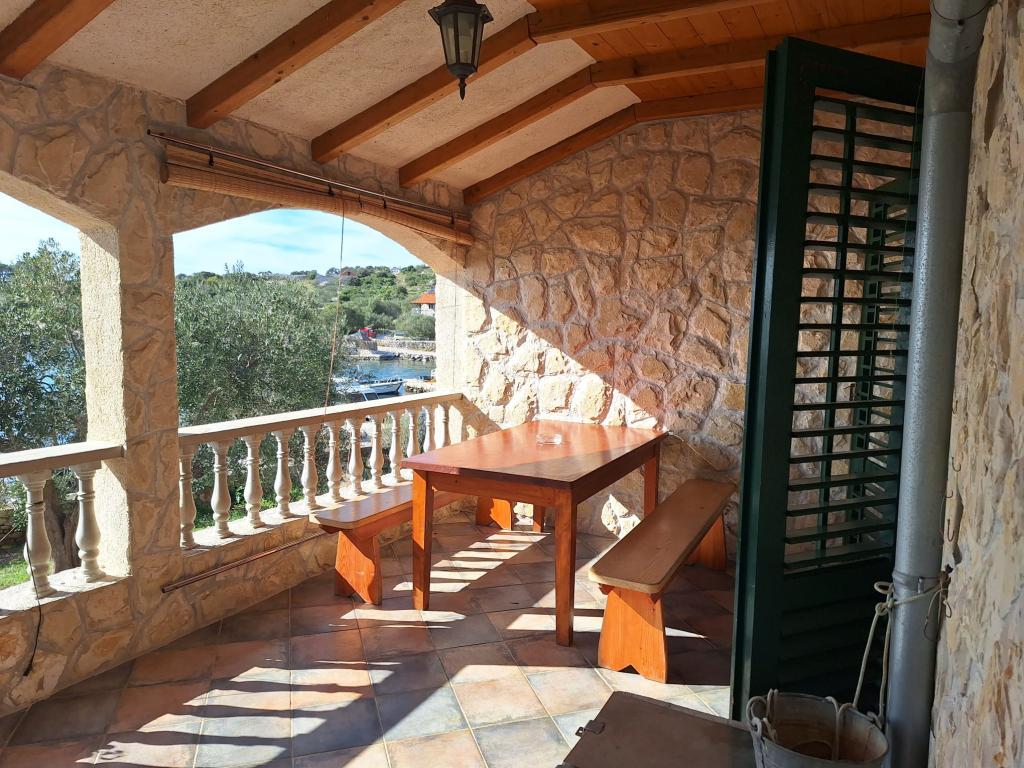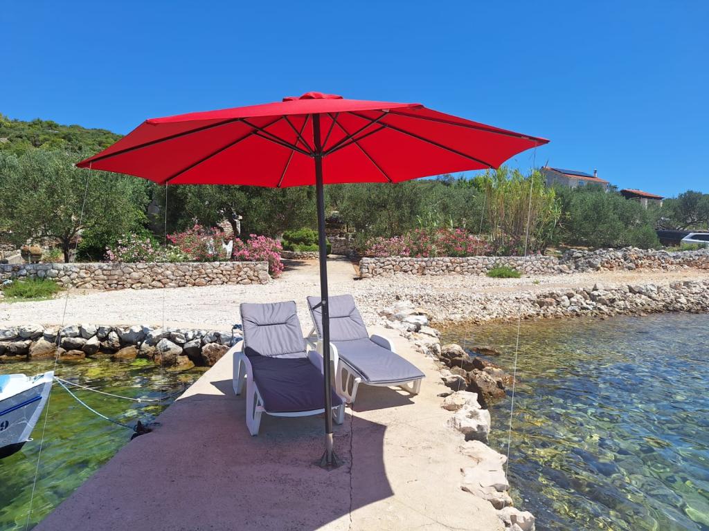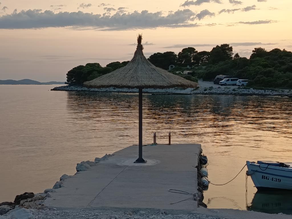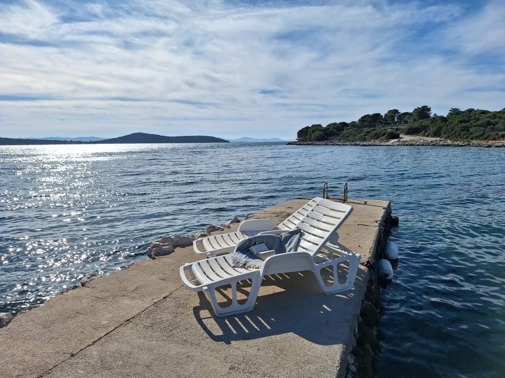 La maison Robinson Cvita est située du côté sud de Pašman, dans la baie de Vitane. Il se trouve à 4,5 km de Tkon. Tkon est accessible en ferry depuis Biograd (15 min en voiture). La propriété dispose de deux chambres avec un ventilateur de plafond pour un sommeil confortable, d'une salle de bain avec douche, d'un salon avec cuisine et d'une terrasse couverte avec grill. La maison est équipée d'électricité 220v via capteurs solaires, eau chaude, wi-fi, douche solaire, parking... Dans le séjour il y a un canapé gigogne (lit d'appoint pour deux). Devant le bâtiment se trouve une jetée pour amarrer les bateaux. Il y a 4 transats avec parasols.