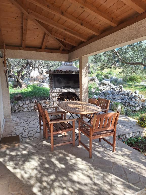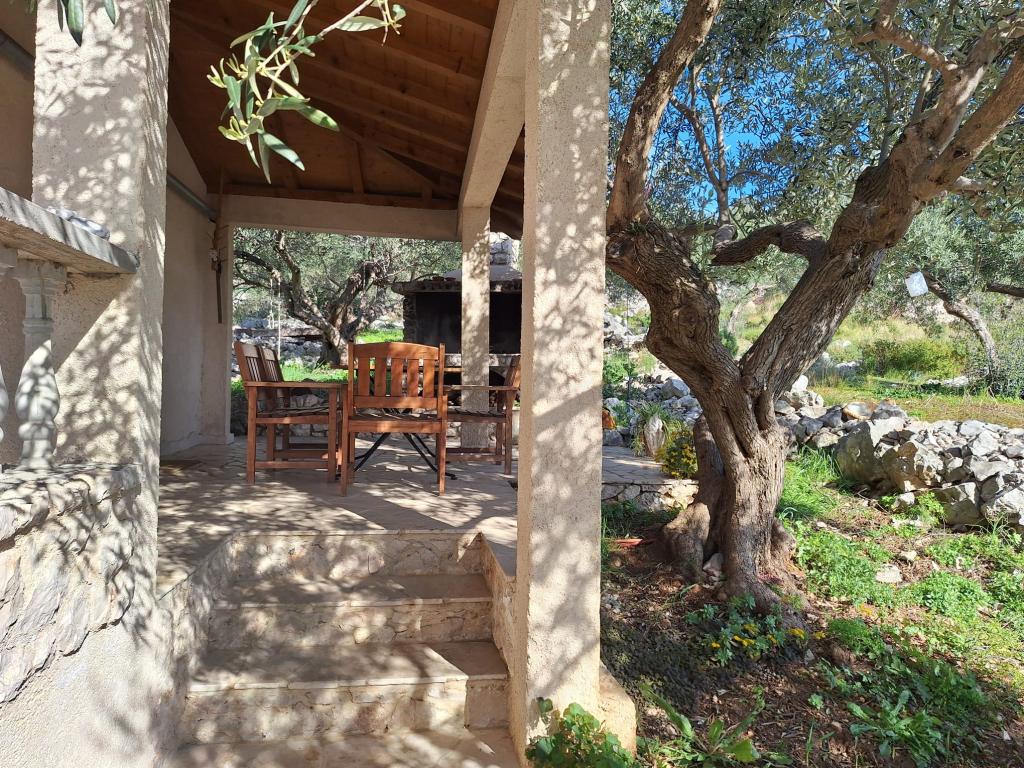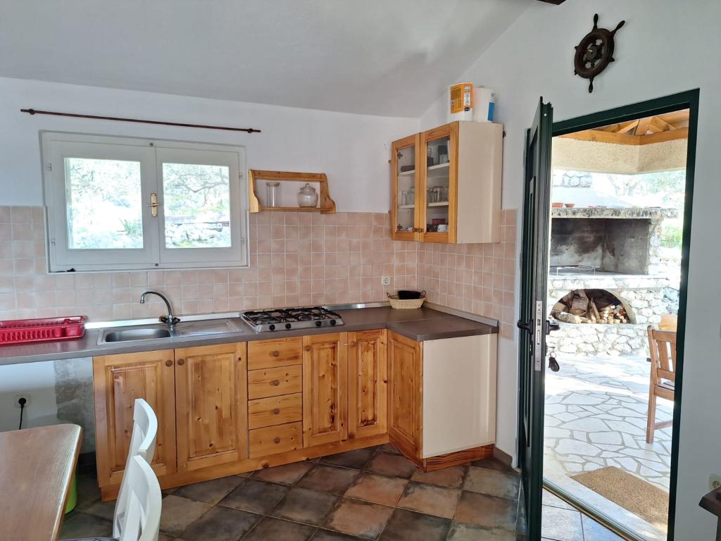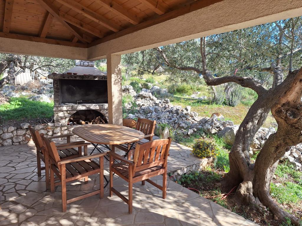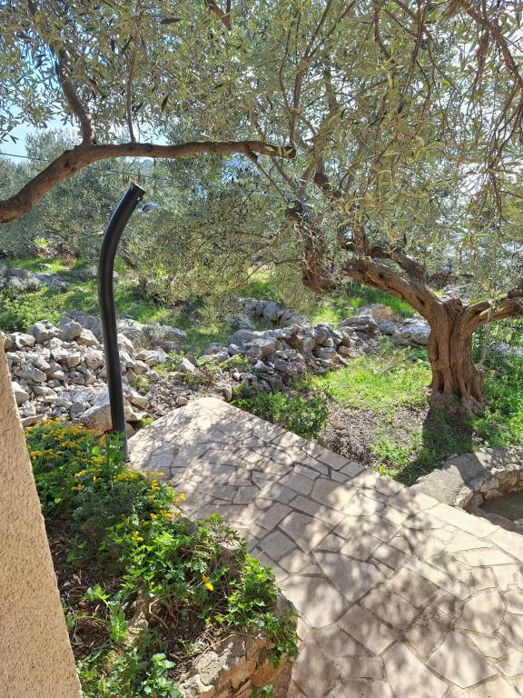 La maison Robinson Cvita est située du côté sud de Pašman, dans la baie de Vitane. Il se trouve à 4,5 km de Tkon. Tkon est accessible en ferry depuis Biograd (15 min en voiture). La propriété dispose de deux chambres avec un ventilateur de plafond pour un sommeil confortable, d'une salle de bain avec douche, d'un salon avec cuisine et d'une terrasse couverte avec grill. La maison est équipée d'électricité 220v via capteurs solaires, eau chaude, wi-fi, douche solaire, parking... Dans le séjour il y a un canapé gigogne (lit d'appoint pour deux). Devant le bâtiment se trouve une jetée pour amarrer les bateaux. Il y a 4 transats avec parasols.