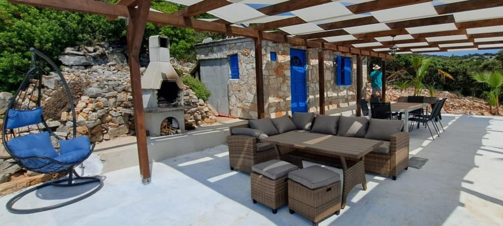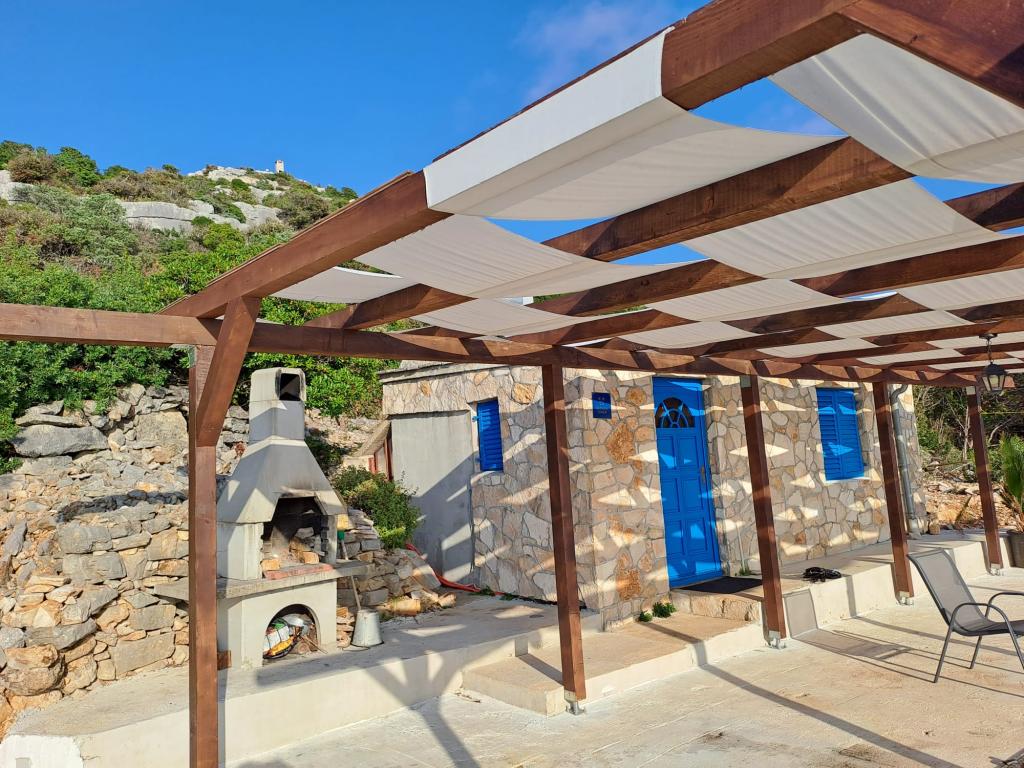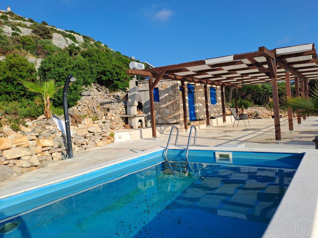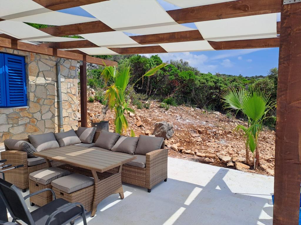 Villa Robinson est une maison en pierre située près de l'île de Pasman avec une belle vue sur le parc national. La villa est entourée par la nature pure, et voisin d'à côté est à 2 km, de sorte que vous ferez l'expérience de la vraie vie de Robinson Crusoé. La maison est un grand 35 m2 et est entouré de 10 000 m2. En face de la maison est une terrasse couverte avec barbecue et à côté de la maison il y a une terrasse pour bronzer. Distance de la maison à la plage est à environ 250 m. L'électricité est l'énergie solaire, mais elle est assez forte et produit 220 volts normale. L'eau est de l'eau du robinet stockée dans le réservoir d'eau. Dans la maison il y a 2 chambres à coucher. Dans une chambre il y a un lit double, et dans l'autre pièce, il y a deux lits et la possibilité de mettre un lit supplémentaire. Draps et serviettes sont fournis. La cuisine est bien équipée. Il est cuisinière au gaz et réfrigérateur avec congélateur sur électrique.
