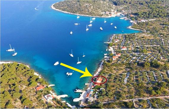 Gîte entièrement équipé avec électricité 12V et panneaux solaires. Situé sur l'île de Žut, dans la baie de Dragišina. Il comprend deux chambres, une cuisine, un cellier, une salle de bains, un grand jardin planté d'oliviers, une terrasse, un barbecue et une douche extérieure.
