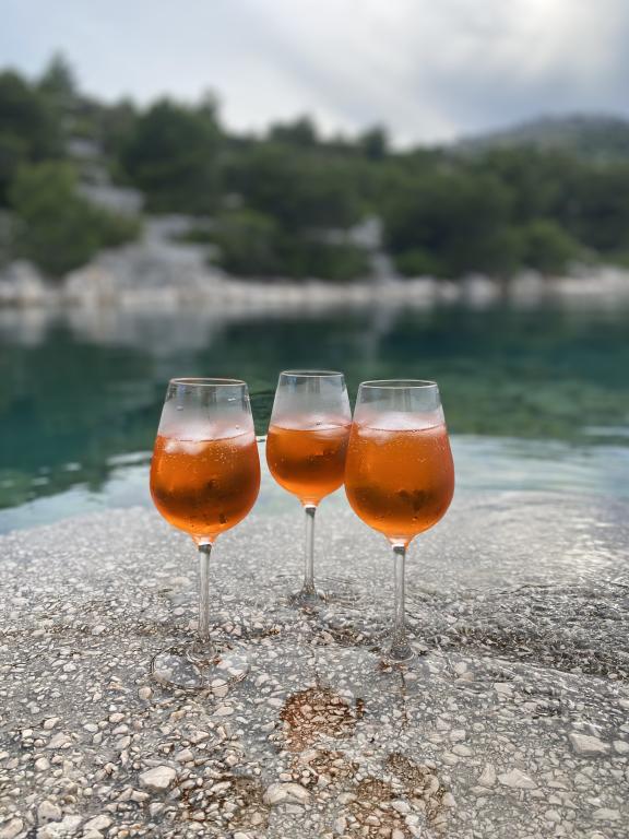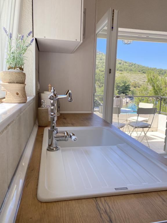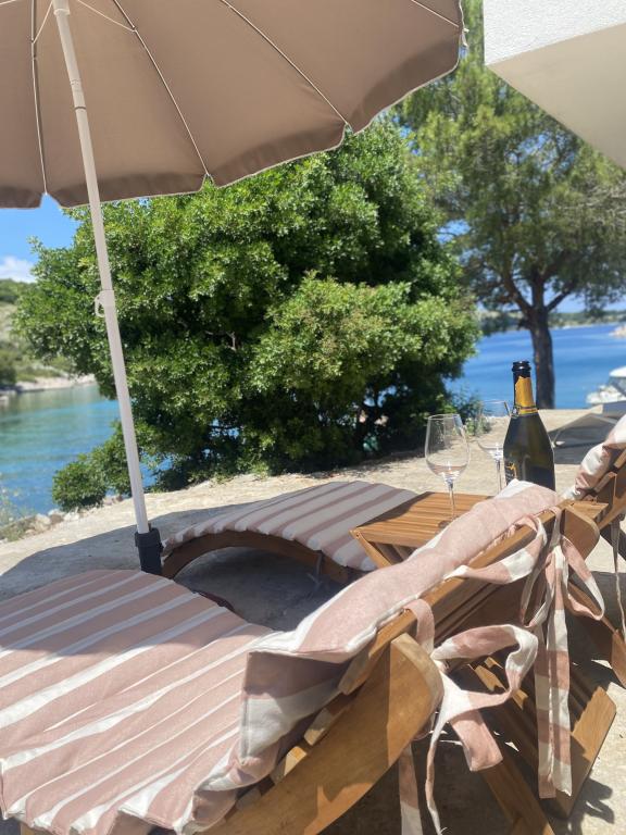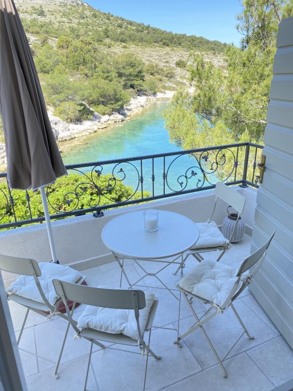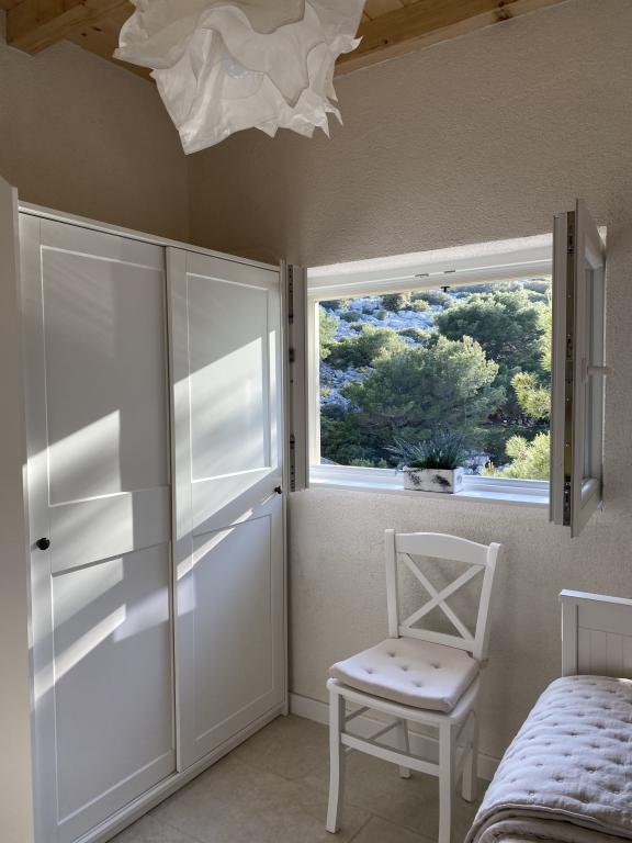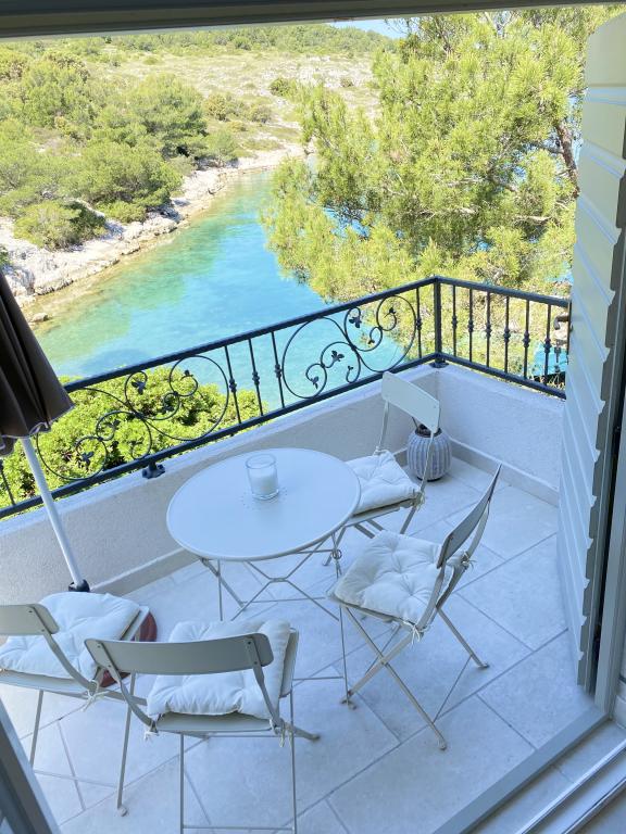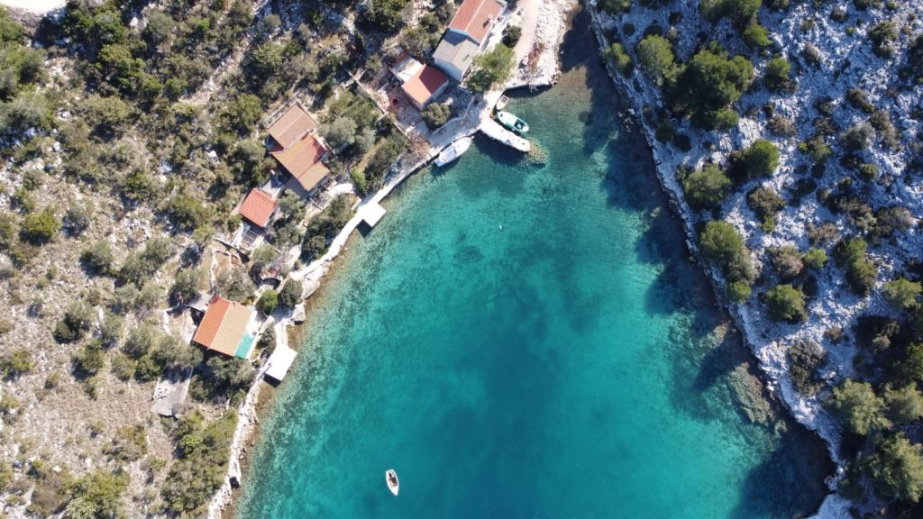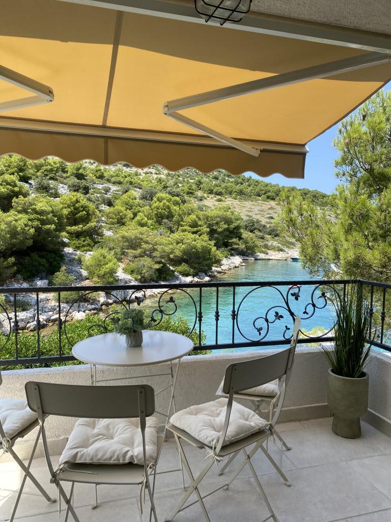 La maison de vacances « Levina », récemment construite, est située dans une oasis de verdure et de calme, un lieu idéal pour se détendre et profiter. Décorée dans un style champêtre, elle se trouve à 10 mètres de la mer, dans la baie. Le balcon offre une vue magnifique sur la mer. La baie, verdoyante et isolée, vous offrira une sensation de calme et de beauté. Il y a peu d'autres maisons dans la baie. La maison comprend deux chambres, une salle de bain avec douche, un balcon avec une vue magnifique et une terrasse extérieure avec barbecue. La maison est équipée d'un climatiseur portable et d'un ventilateur. Au sens figuré, l'eau sur l'île vaut de l'or ; il faut donc l'utiliser avec parcimonie. L'eau provient de sources naturelles et de l'eau de pluie. Elle n'est pas potable, mais peut être utilisée pour la douche et le lavage. De bons restaurants, la marina ACI et un marché se trouvent dans la baie voisine. Comptez environ 20 minutes de marche le long des rochers ou en bateau pour vous y rendre. Vous êtes littéralement à l'entrée du parc national des Kornati. Il est préférable de faire vos courses et de vous procurer de l'eau potable au port de départ.