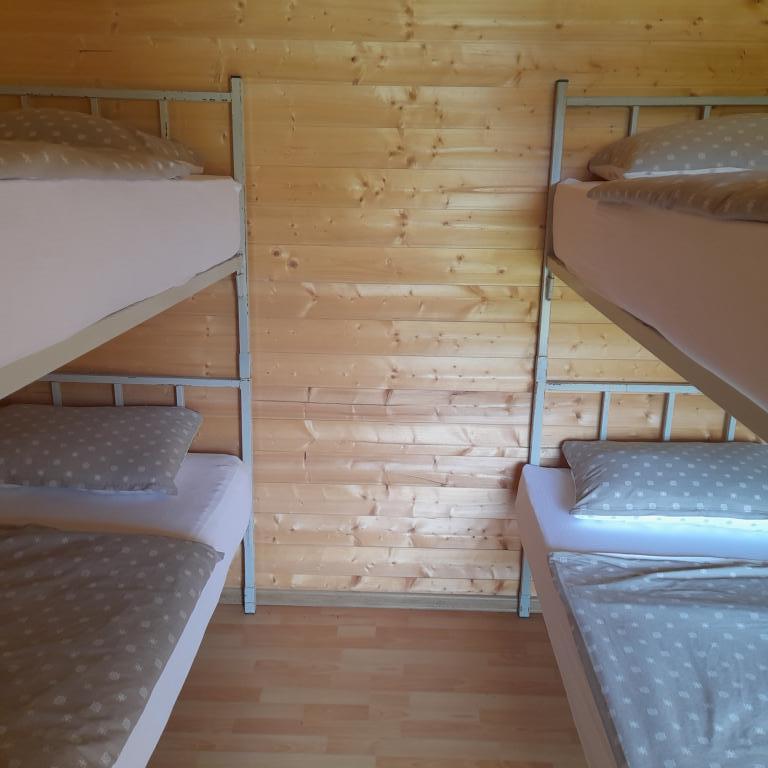 Il est possible de réserver un lit dans l'ancien grenier à foin rénové. Le hangar dispose de 14 lits, disponibles individuellement ou en groupe. Les toilettes et les douches se trouvent dans les sanitaires centraux, à seulement 50 m. Le hangar est situé dans le parc d'attractions, vous permettant ainsi de suivre l'activité depuis la fenêtre.