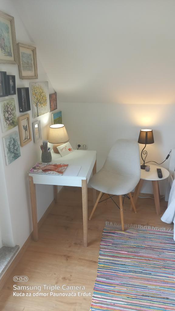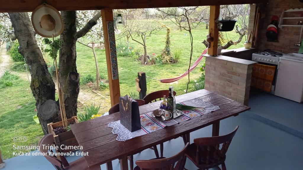 Paunovača Erdut est situé dans le village d'Erdut, au-dessus de la promenade verte magique du Sentier Vert du Danube. C'est une maison de vacances qui vous séduira par son confort, ses détails, sa discrétion et vous donnera le sentiment d'une résidence secondaire. La maison comprend une chambre avec un lit double (concept ouvert), un plus petit lit dans la deuxième chambre et un canapé-lit au salon. Dans le prolongement du séjour, se trouvent une salle à manger et une cuisine équipée (sauf un lave-vaisselle et un micro-ondes). Boissons chaudes gratuites, plusieurs types de café et thé sont toujours à disposition des hôtes. Dans la cour spacieuse, il y a une terrasse couverte avec un barbecue et un jardin pendant la période la plus chaude de l'année avec des légumes et des fruits issus de l'agriculture biologique. Un parking gratuit et une connexion Wi-Fi sont à la disposition des clients. La maison est située dans une position idéale pour les amateurs de vacances actives dans la nature, elle se trouve à proximité immédiate de la descente vers le Danube, des sentiers de randonnée, des escaliers de santé, située à proximité de la Vieille Tour d'Erdut. Accueillir!