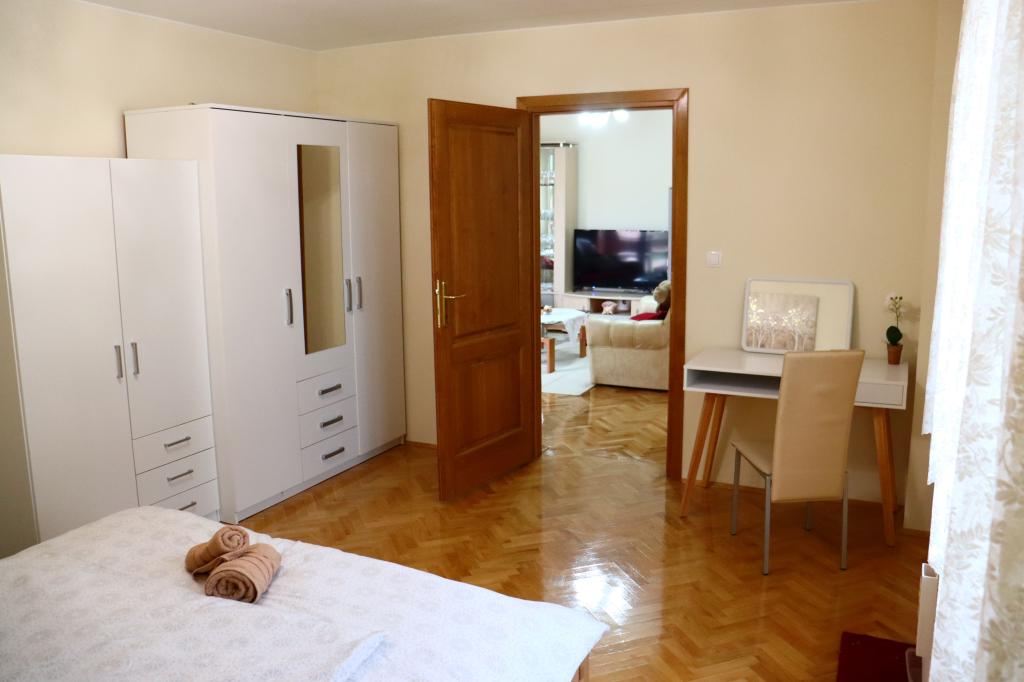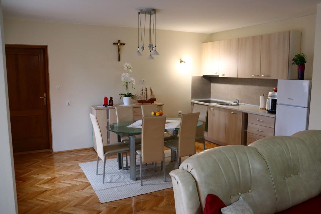 Appartement récemment rénové et équipé de façon moderne dans un quartier calme du village. Il se compose d'une chambre, d'un séjour, d'un couloir. salles de bains, cuisines avec salles à manger et terrasses. Accès et usage adaptés à l'usage des personnes handicapées. Capacité : quatre adultes. Chambre Chambre récemment rénovée avec salle de bain attenante dans un style traditionnel. Capacité : deux personnes (lit double).