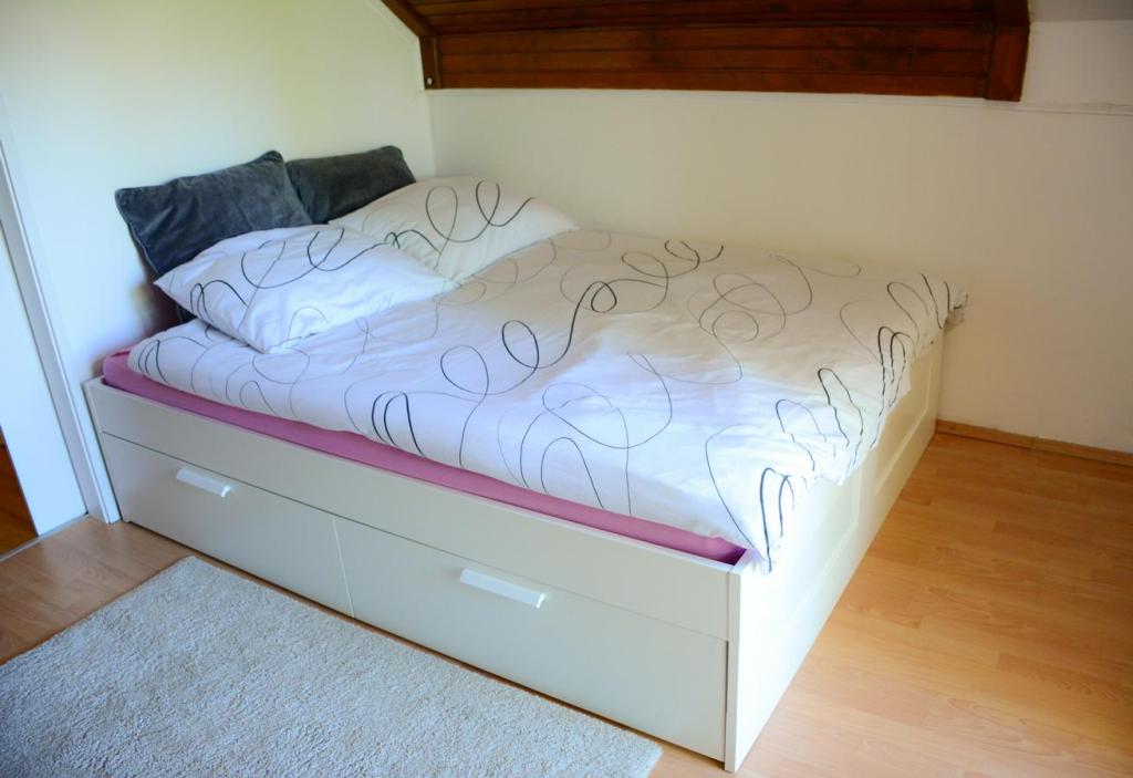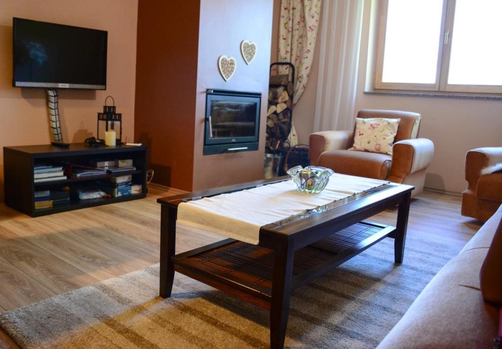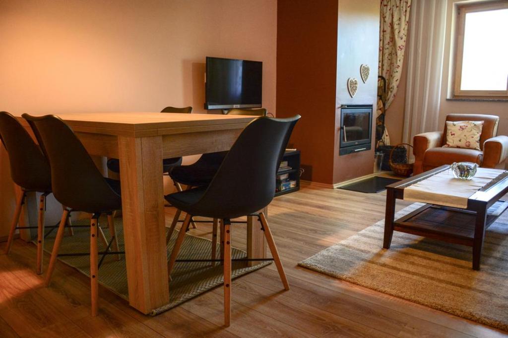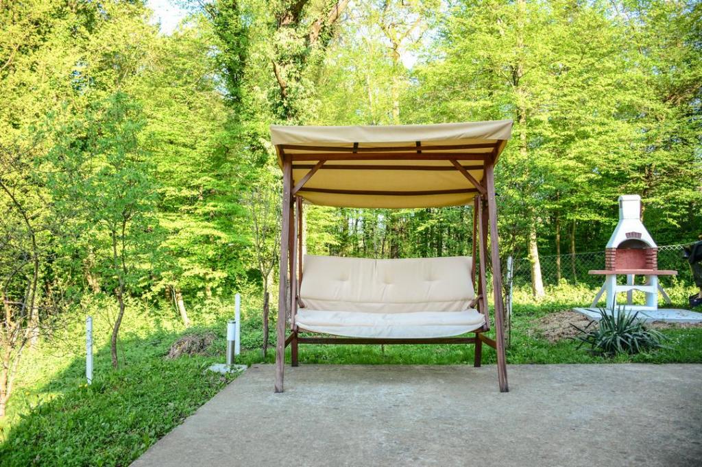 La maison de vacances Lema est située dans l'oasis de verdure de Hrvatski Zagorje, dans la ville de Tuhelj, à 1,5 km des thermes Tuhelj. Le terrain de 2000m2 est clôturé et adapté au jeu insouciant des enfants et des animaux domestiques, il offre un lieu idéal pour se reposer et socialiser agréablement. Les collines voisines, où s'étendent de nombreux vignobles et vergers d'espèces autochtones, sont un lieu idéal pour s'évader de l'agitation de la ville. Les amateurs de vacances actives ont la possibilité d'utiliser les pistes cyclables à proximité de la maison et la piscine de Terme Tuhelj. La maison fait 80m2 avec une terrasse, au rez-de-chaussée il y a une cuisine, une salle à manger et un salon et une salle de bain avec un wc Au premier étage il y a deux chambres avec un wc séparé et un balcon. La capacité d'accueil du bâtiment est d'une chambre à deux lits, d'une chambre à un lit et d'un séjour avec deux lits d'appoint. il y a deux places de parking, grill, four, cheminée, coffre-fort, balançoire, bac à sable et toboggan pour les enfants, ainsi que WI-FI et TV. La nouveauté de l'offre est une baignoire d'hydromassage.