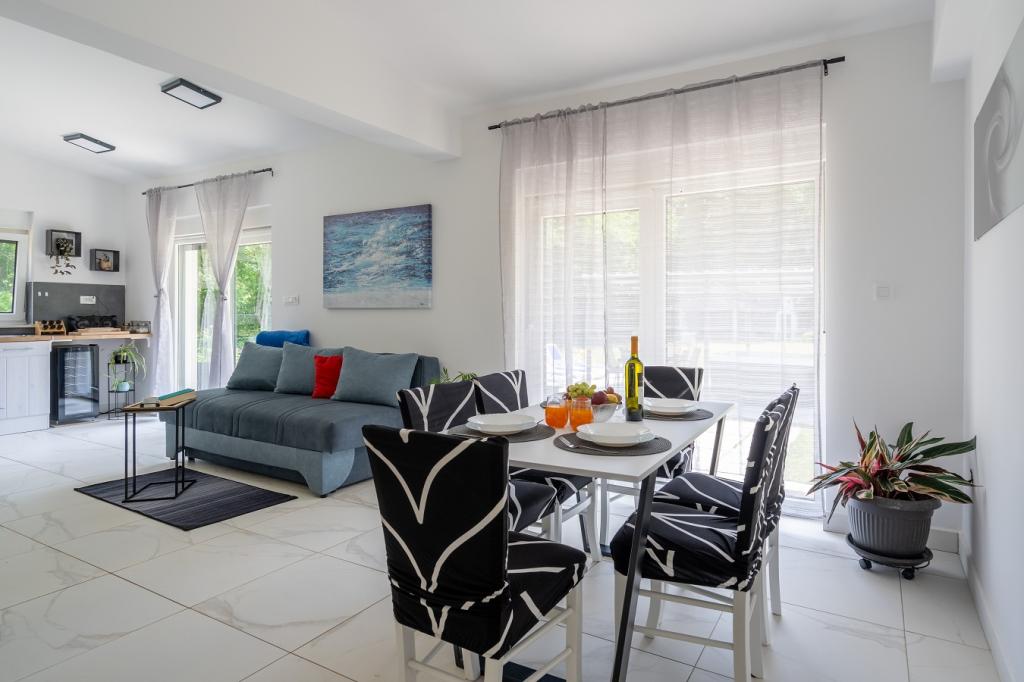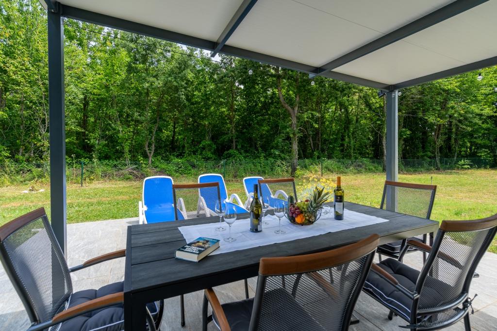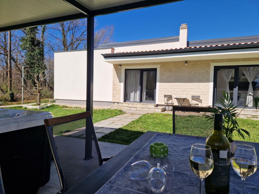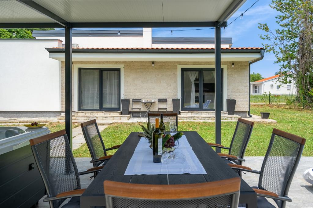 Imaginez-vous réveillé par les rayons du soleil et le chant des oiseaux dans les arbres environnants, tout en vous relaxant dans le jacuzzi (baignoire massante). En toute intimité, installez-vous confortablement sur une chaise longue et savourez votre premier café ou thé du matin. Un emplacement idéal pour les clients qui aiment se détendre et profiter d'une oasis verte et ensoleillée. Vous êtes à environ 10 minutes en voiture de plages propres et petites. Nos hôtes ont accès gratuitement à une planche de SUP. Belle maison de vacances nouvellement construite avec un grand jardin de 1300 m2. 2 terrasses extérieures pour profiter du soleil, un gazebo avec ombre pour profiter, jacuzzi, matériel de badminton, parking privé gratuit à l'ombre. La maison se compose de 3 chambres (chaque chambre climatisée), 2 salles de bains et un lave-linge, un grand séjour climatisé et une cuisine équipée avec un lave-vaisselle. Vous êtes à 20 minutes de l'aéroport de Pula et à 25 minutes de l'amphithéâtre romain Arena dans le centre de Pula. Le parc national de Brijuni et la ville de Rovinj sont à environ 30 minutes.
