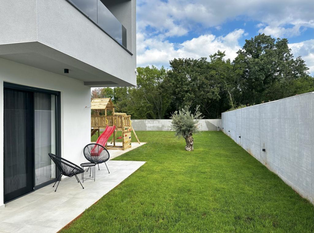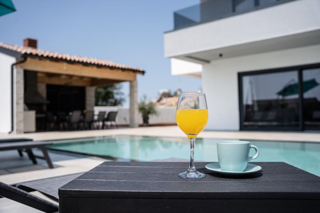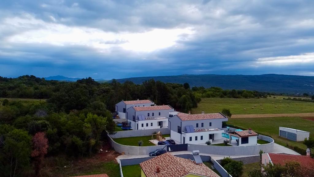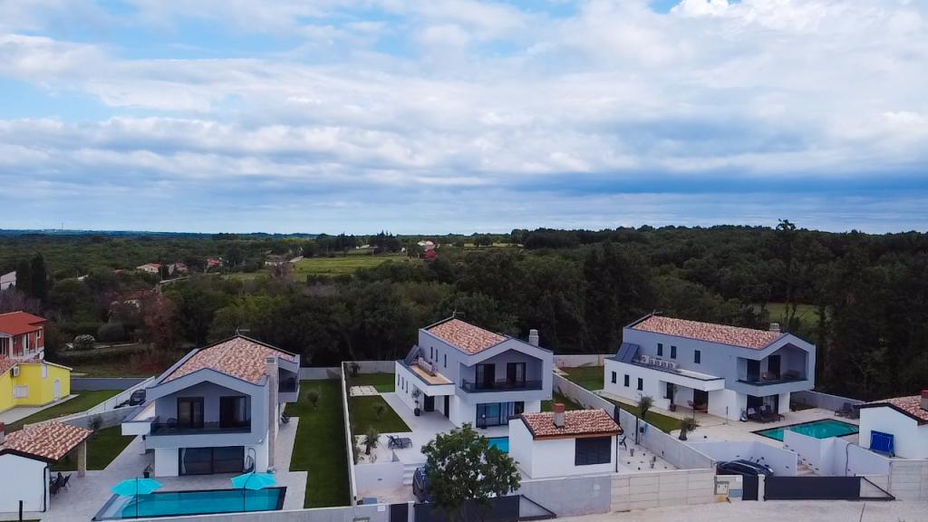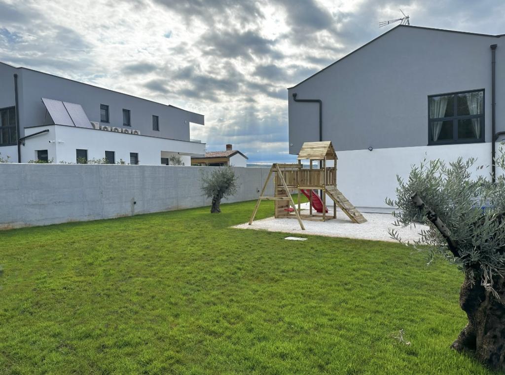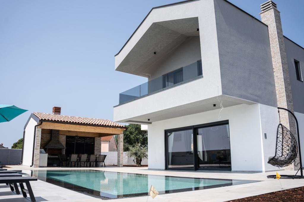 Cette belle villa est située dans un endroit très calme de Rebići, Barban, à seulement 2,5 km de la mer, entourée de beauté naturelle et de verdure, et en tant que telle, elle sert à des vacances parfaites et sans soucis, loin des foules de la ville, du bruit et de la circulation. Par temps clair, vous pourrez voir la mer depuis le balcon situé au premier étage de la maison. Chaque chambre possède sa propre terrasse pour des moments d'intimité et de paix en cas de besoin. La villa est décorée de manière très moderne, vous donnant l'atmosphère et la chaleur de la maison, elle a été construite en 2023 dans un style très moderne et elle contient également une installation extérieure avec une cuisine extérieure, un réfrigérateur et deux grills, au gaz et au bois. -brûlant. L'environnement est spécialement aménagé dans une combinaison d'une plage moderne autour d'une piscine à débordement mesurant 10 x 3,8 mètres et d'une belle pelouse décorée de vieux oliviers et d'autres plantes diverses, créant une oasis de détente. dans la cour il y a des transats, des parasols et des installations supplémentaires telles qu'une table de ping-pong, un baby-foot.