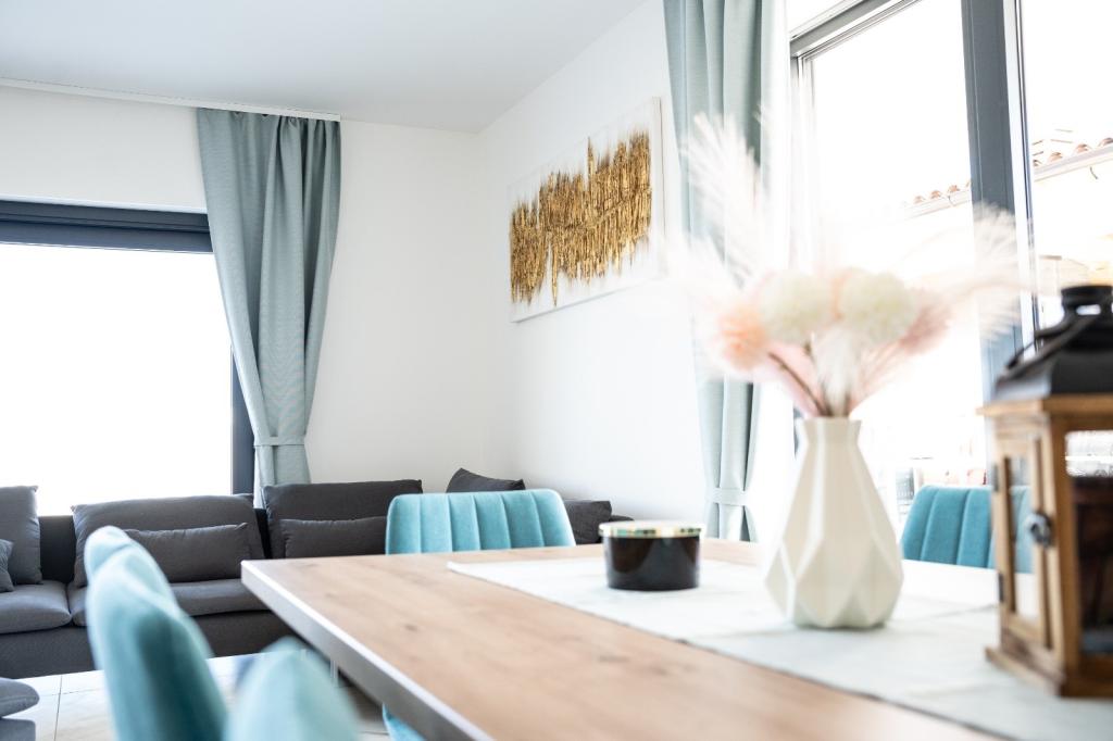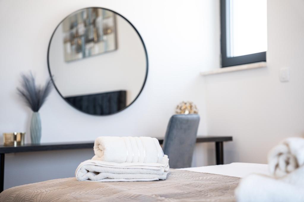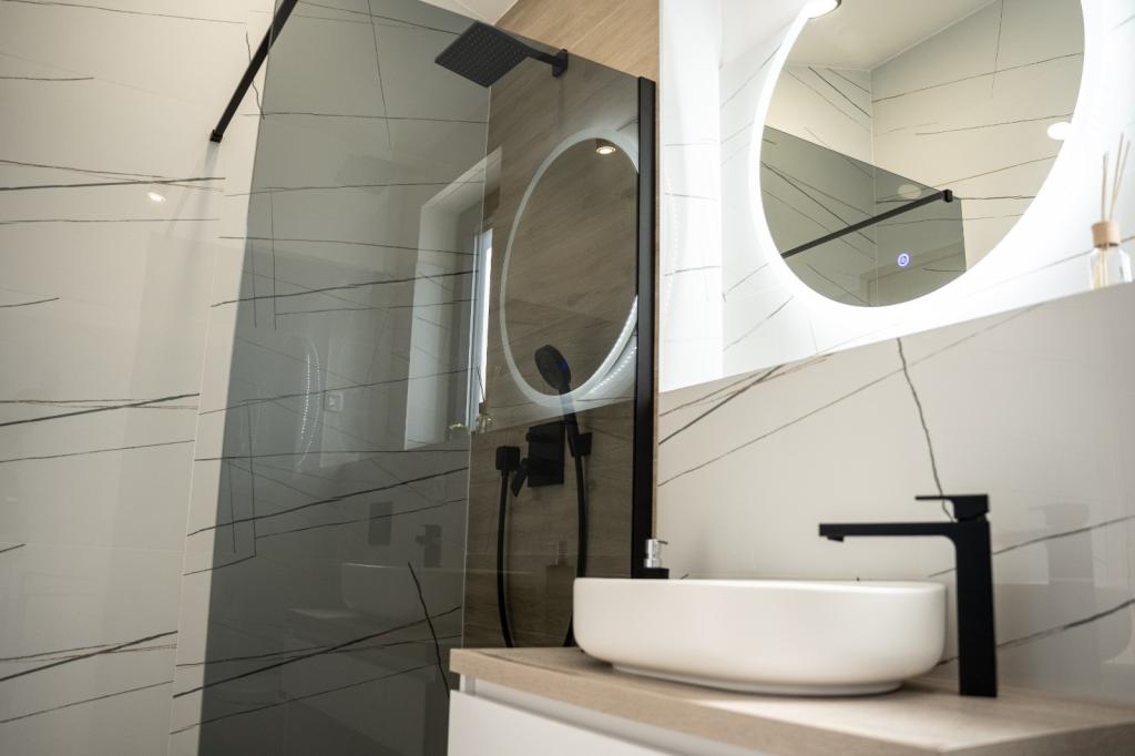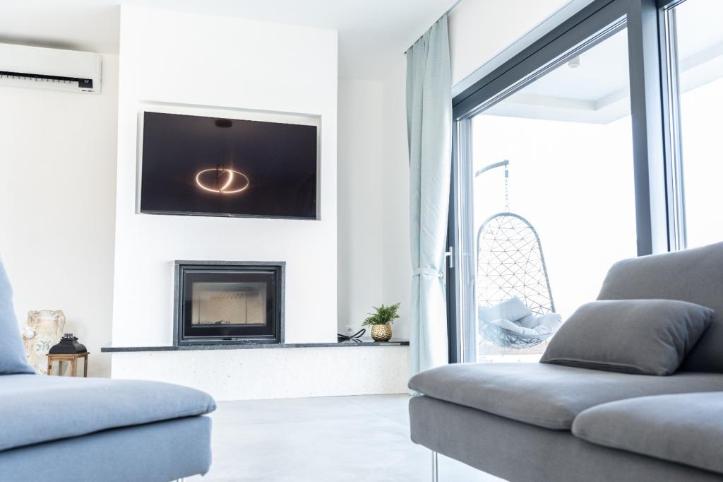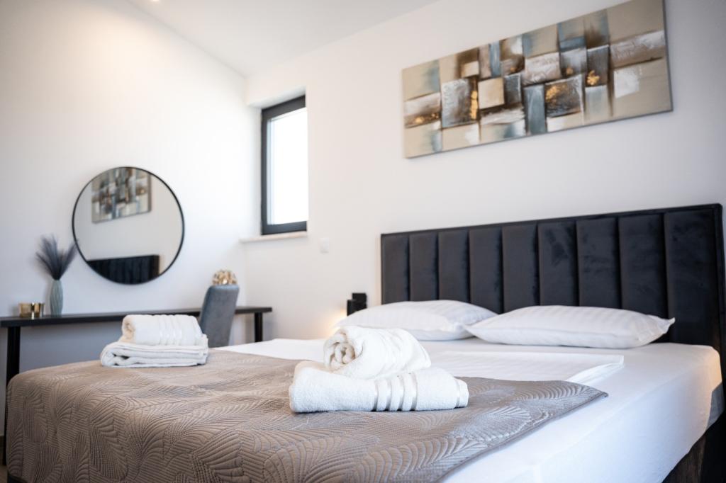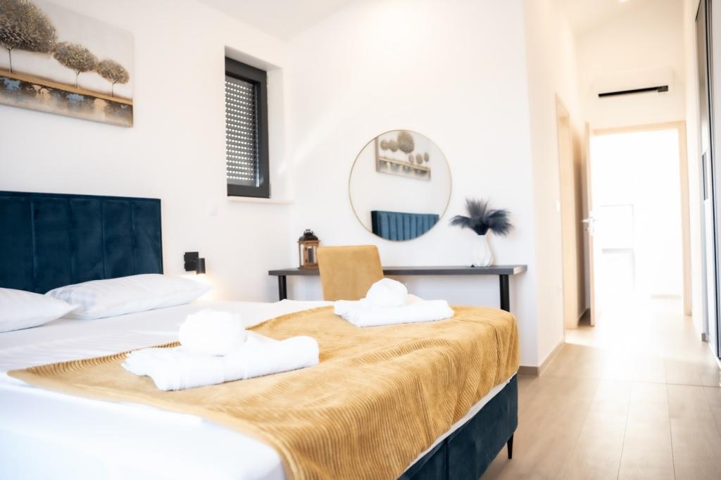 Cette belle villa est située dans un endroit très calme de Rebići, Barban, à seulement 2,5 km de la mer, entourée de beauté naturelle et de verdure, et en tant que telle, elle sert à des vacances parfaites et sans soucis, loin des foules de la ville, du bruit et de la circulation. Par temps clair, vous pourrez voir la mer depuis le balcon situé au premier étage de la maison. Chaque chambre possède sa propre terrasse pour des moments d'intimité et de paix en cas de besoin. La villa est décorée de manière très moderne, vous donnant l'atmosphère et la chaleur de la maison, elle a été construite en 2023 dans un style très moderne et elle contient également une installation extérieure avec une cuisine extérieure, un réfrigérateur et deux grills, au gaz et au bois. -brûlant. L'environnement est spécialement aménagé dans une combinaison d'une plage moderne autour d'une piscine à débordement mesurant 10 x 3,8 mètres et d'une belle pelouse décorée de vieux oliviers et d'autres plantes diverses, créant une oasis de détente. dans la cour il y a des transats, des parasols et des installations supplémentaires telles qu'une table de ping-pong, un baby-foot.