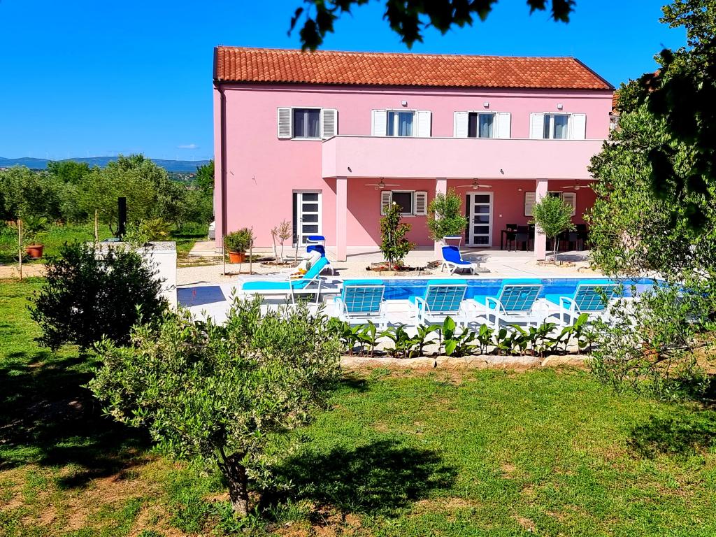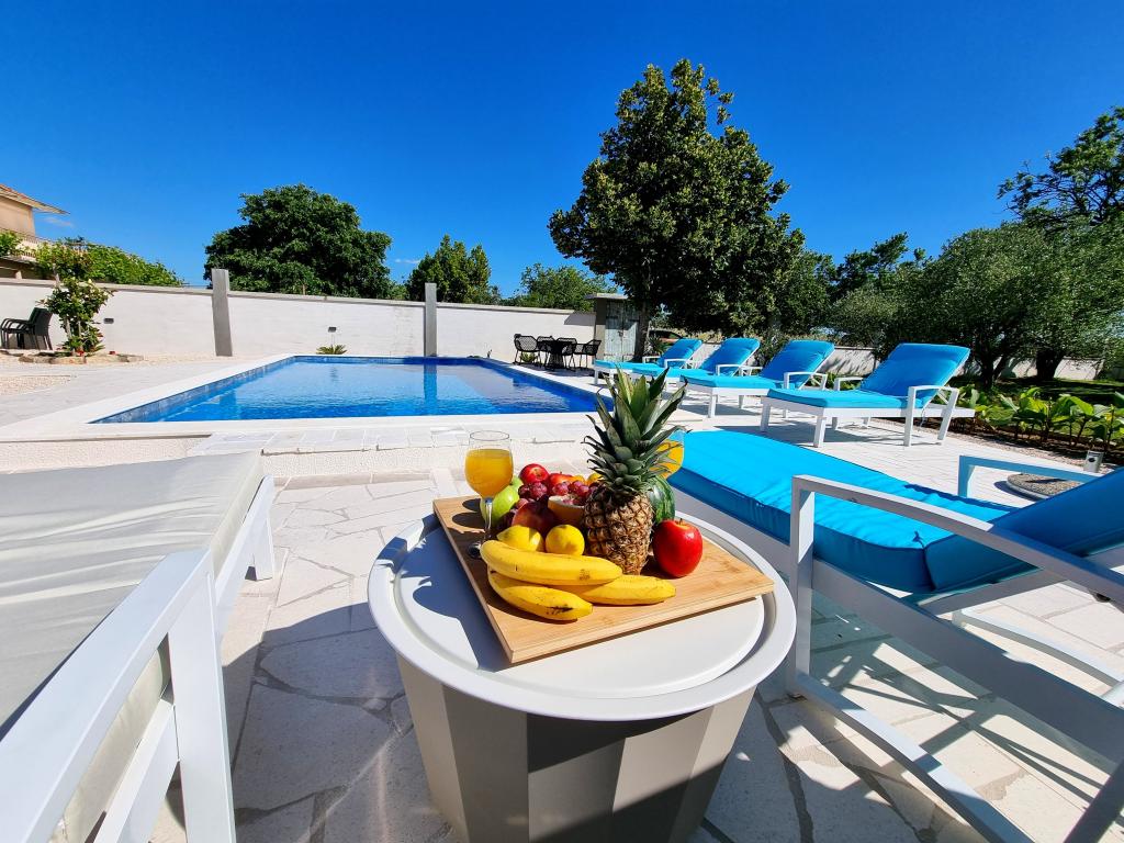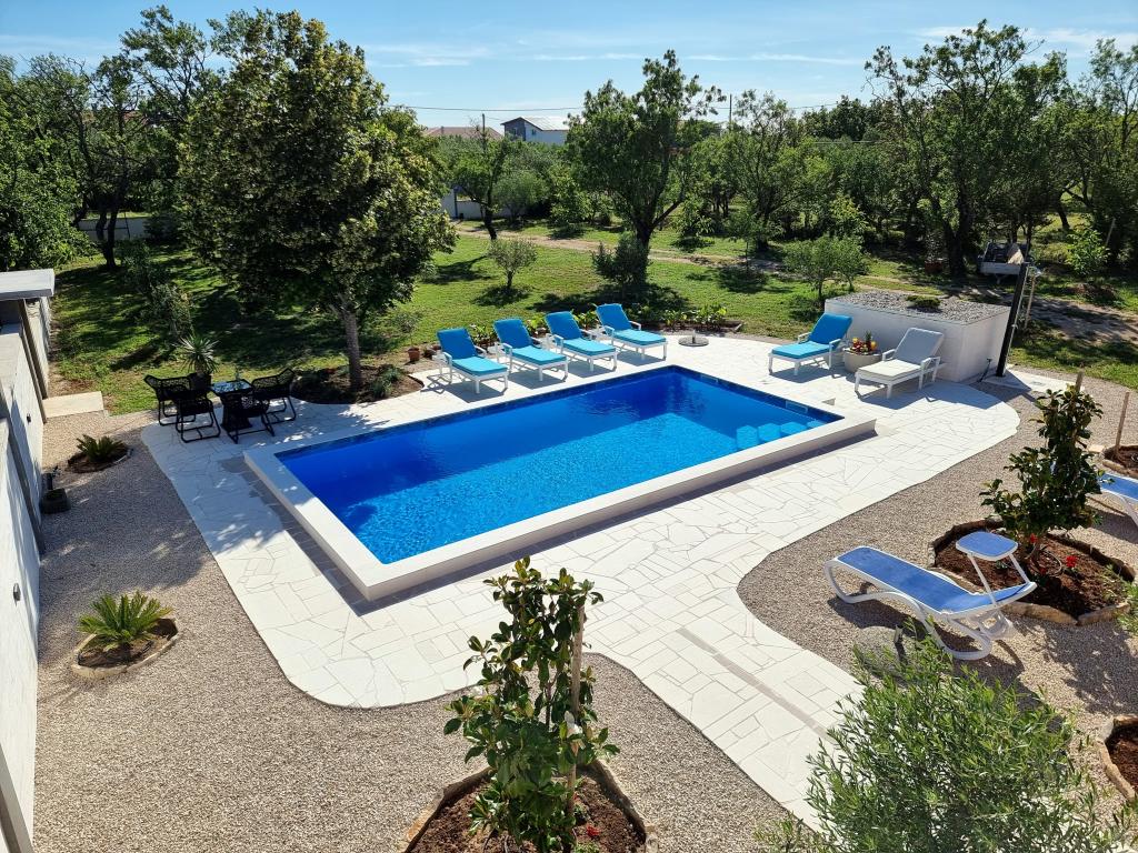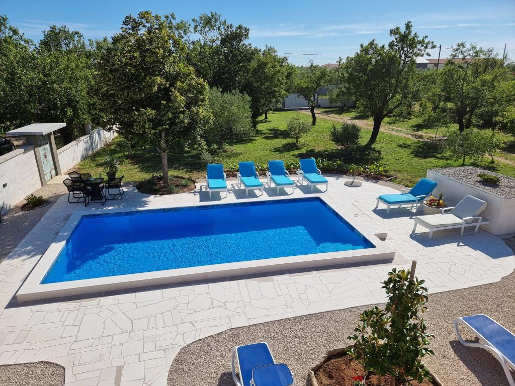Un coin calme et agréable pour vos vacances. Nous sommes situés dans le petit village de Podlug, à 6 km au sud de Benkovac, à 2 km de la sortie Benkovac sur l'autoroute A1. Nous vous proposons trois chambres et trois salles de bain. Au rez-de-chaussée il y a une chambre, une salle de bain, une cuisine et un salon, et au premier étage il y a deux chambres, deux salles de bain et un autre salon - une salle de jeux. L'établissement dispose également d'une salle avec cheminée. L'établissement dispose également d'une piscine extérieure de 8 x 4 m.