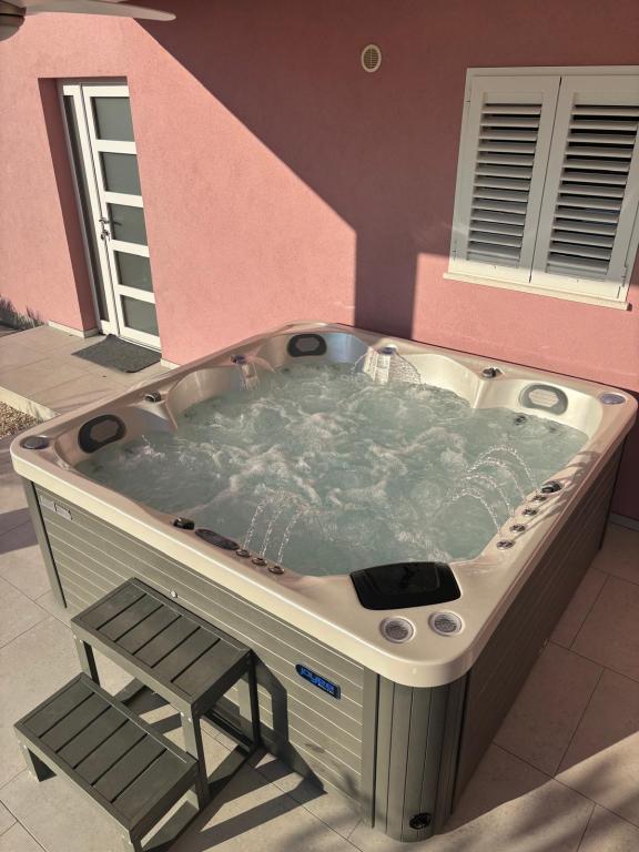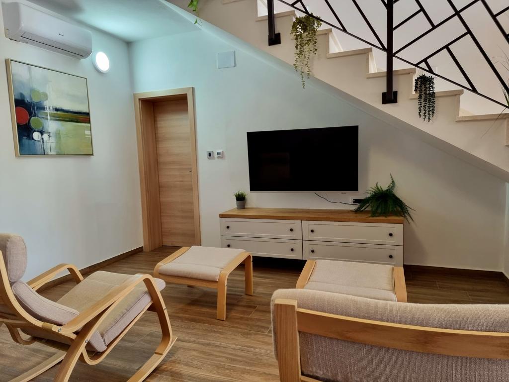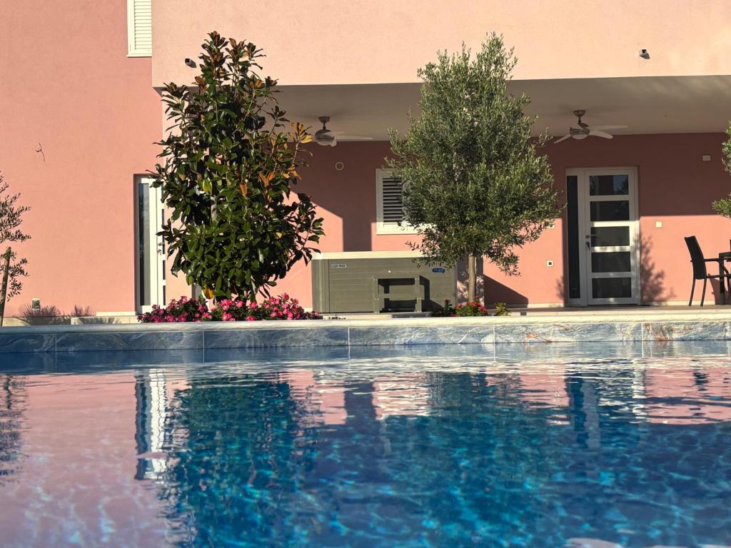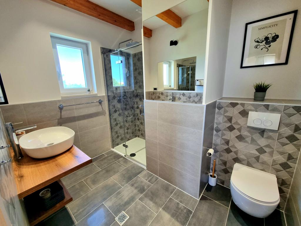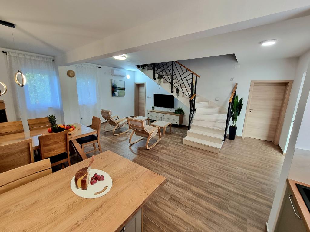 Un coin calme et agréable pour vos vacances. Nous sommes situés dans le petit village de Podlug, à 6 km au sud de Benkovac, à 2 km de la sortie Benkovac sur l'autoroute A1. Nous vous proposons trois chambres et trois salles de bain. Au rez-de-chaussée il y a une chambre, une salle de bain, une cuisine et un salon, et au premier étage il y a deux chambres, deux salles de bain et un autre salon - une salle de jeux. L'établissement dispose également d'une salle avec cheminée. L'établissement dispose également d'une piscine extérieure de 8 x 4 m.
