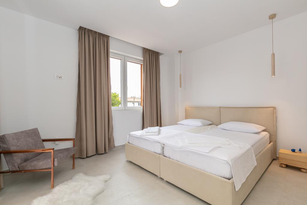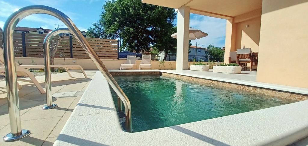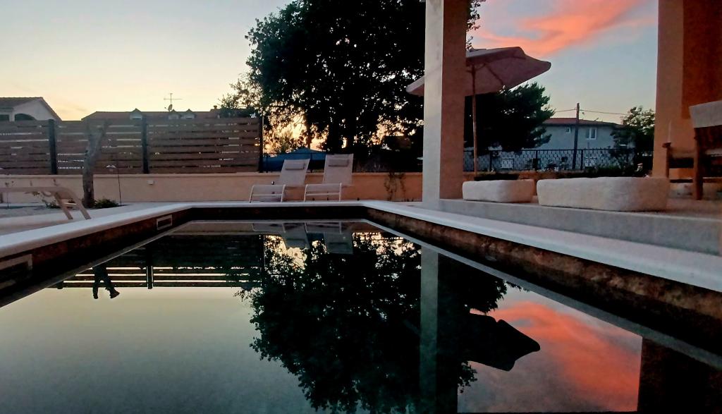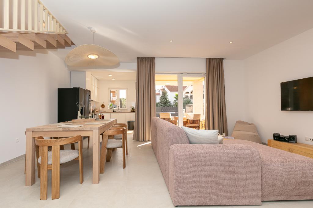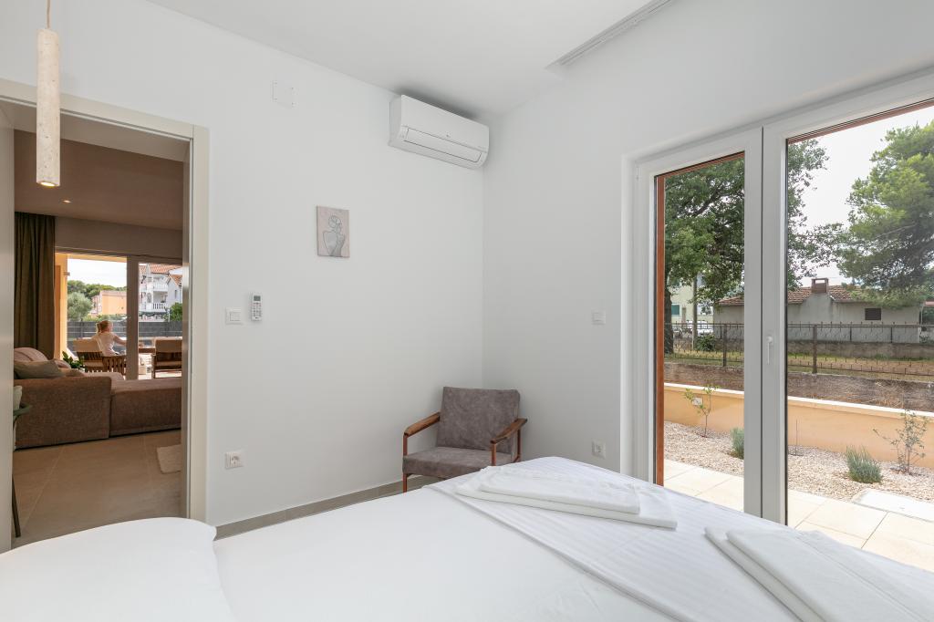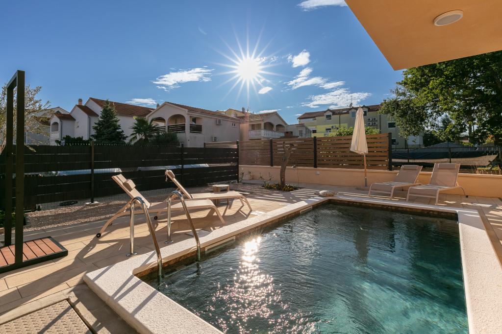 Située dans un quartier calme de Biograd na Moru, cette charmante villa moderne avec piscine est idéale pour des vacances reposantes. Son intérieur élégamment décoré offre tout le confort nécessaire, tandis que son vaste jardin avec piscine privée et solarium vous garantit de profiter pleinement du soleil méditerranéen. Profitez de l'alliance du confort, du style et de la proximité de la mer dans cette magnifique villa. Si vous recherchez un havre de paix, de détente et de confort pour vos vacances, cette maison est faite pour vous.