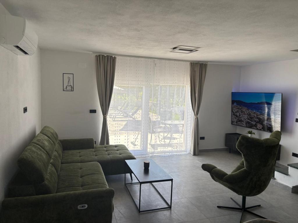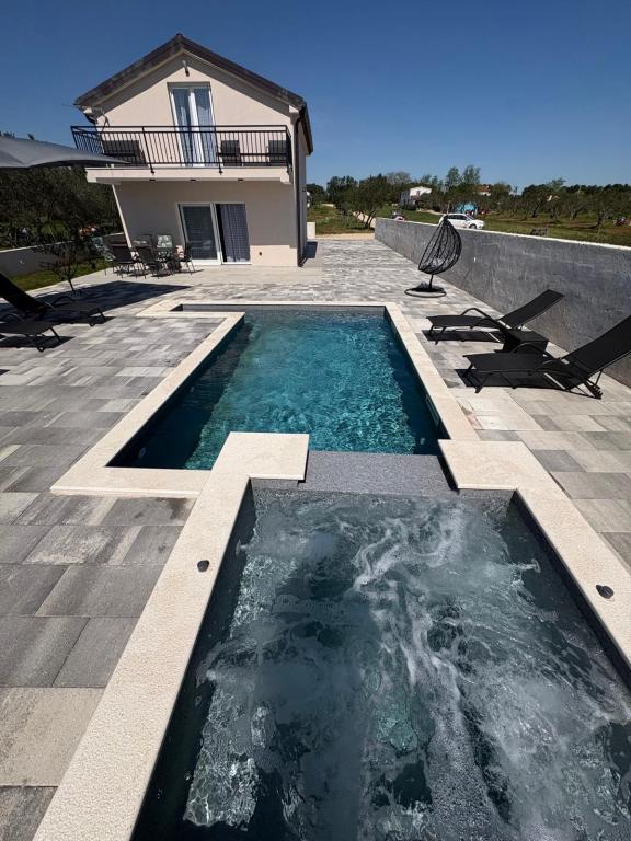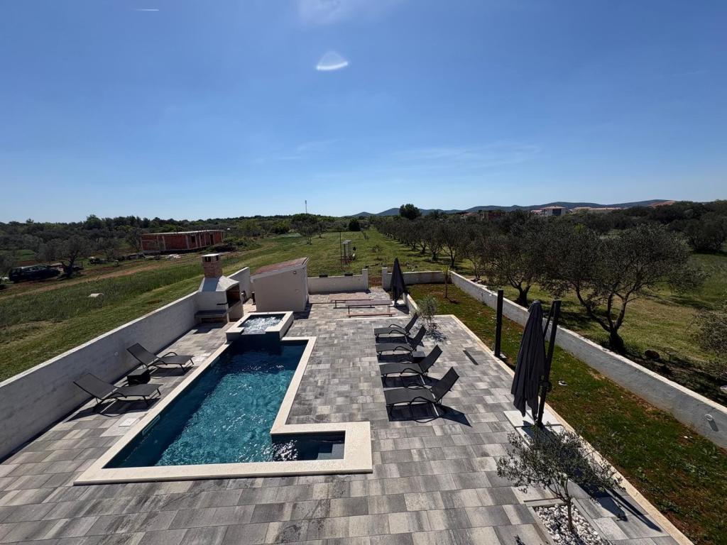 Située au cœur d'une oliveraie, à seulement 2 km de la mer, cette maison de vacances est idéale pour un séjour paisible et ressourçant. Entourée de nature, elle offre une intimité absolue loin de l'agitation urbaine. La piscine chauffée crée une atmosphère unique, parfaite pour profiter des belles journées de printemps et d'été. Le vaste jardin est idéal pour les activités en famille. Au premier étage, vous trouverez trois chambres avec lits doubles et une petite salle de bain. La troisième chambre dispose également d'un balcon offrant une vue magnifique sur la verdure environnante. Au rez-de-chaussée, une cuisine spacieuse et un salon complètent ce bien. La maison de vacances Frano est le choix idéal pour vous : elle allie le confort de la nature et la proximité de la mer, vous offrant tout le nécessaire pour un séjour inoubliable. La maison est entièrement équipée et dispose d'une cheminée extérieure.