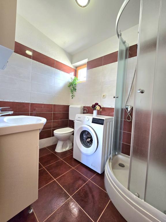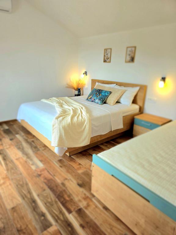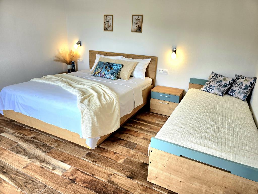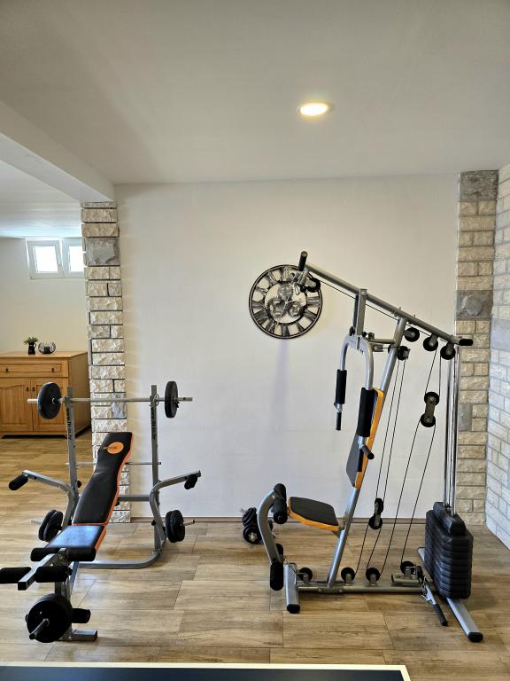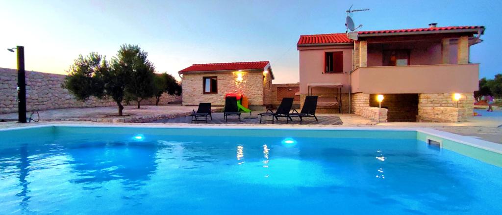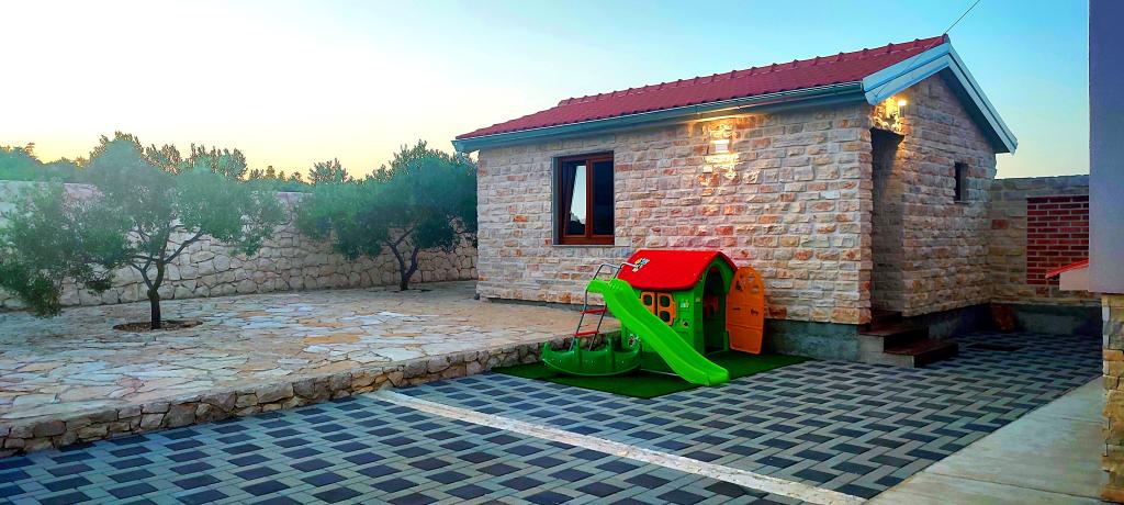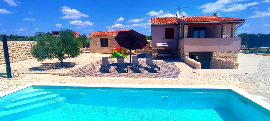 Notre maison de vacances est une évasion idéale loin de la foule de la ville et du stress accumulé, et elle est également adaptée aux plus jeunes. Depuis la terrasse, vous pourrez profiter de la vue sur la mer, qui évoque la sensation d'une fjaka dalmate. Dotée d'un parking privé, la maison dispose de 3 chambres et de 2 salles de bains, offrant un confort pour 7 personnes. L'espace est climatisé, la cuisine est entièrement équipée et nous proposons également un lit bébé et une poussette - gratuitement ! Pour plus de plaisir, il y a une grande piscine, un barbecue extérieur, une connexion Wi-Fi, Netflix, un trampoline, un vélo d'appartement, une salle avec fléchettes et ping-pong, et un coin enfants. Tout près de l'hébergement se trouve le lac Vrana, que vous pourrez explorer à vélo. Nous attendons votre arrivée avec impatience !