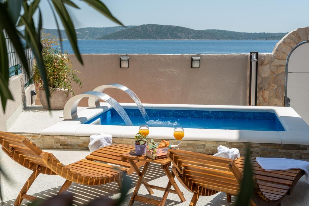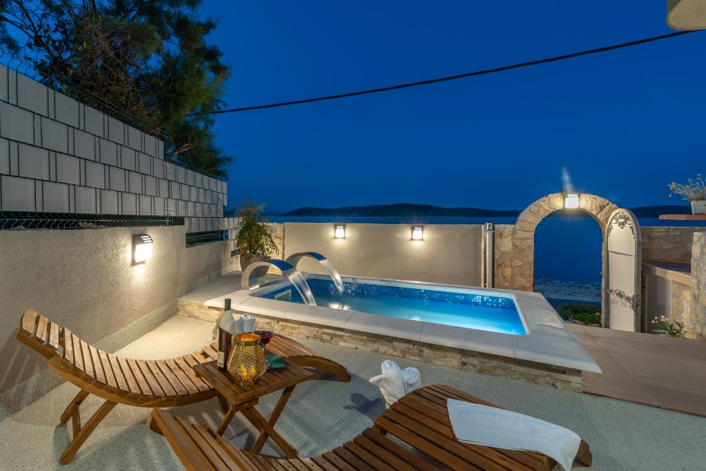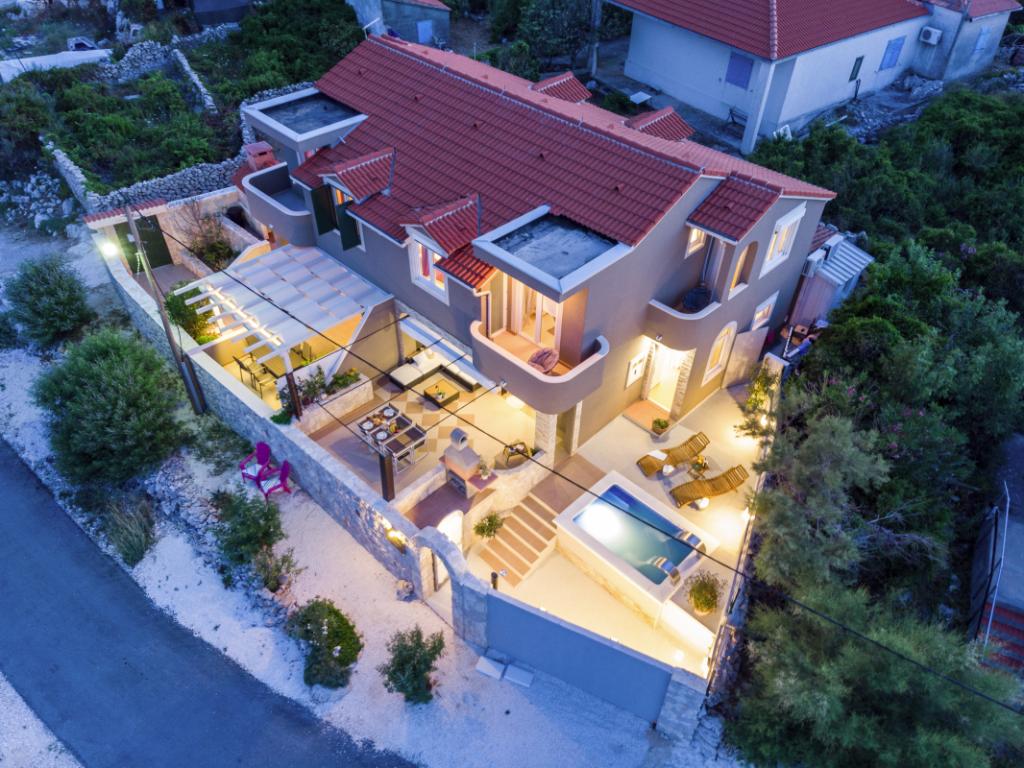 La Villa Insula Ventum est une maison de vacances située sur l'île de Drvenik Mali près de Trogir. Il y a un ferry pour l'île dans les deux sens plusieurs fois par jour. La maison est située en bord de mer, offre une cuisine entièrement équipée, 2 salles de bain, un salon et 3 chambres avec des lits queen size (180x200cm). Les clients ont à leur disposition une grande terrasse avec barbecue, salle à manger et coin salon. Dans la cour il y a une petite piscine avec vue sur la mer.