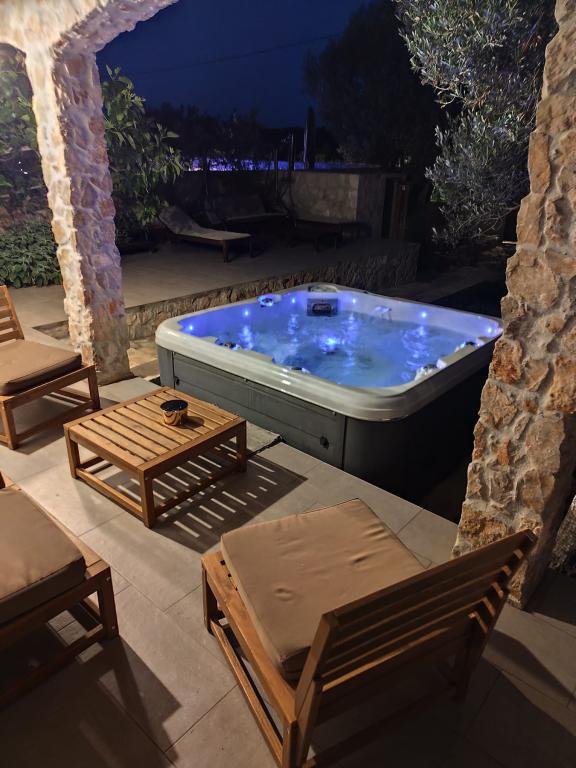 Magnifique endroit naturel et paisible. Maison avec jacuzzi à louer à Drvenik Mali, à environ 150 mètres de la mer. La maison comprend deux chambres, un salon avec cuisine et salle à manger, ainsi qu'une salle de bains. Le plus bel atout de la maison est la terrasse avec cheminée et barbecue en pierre. Drvenik Mali est entourée par les eaux cristallines de la mer Adriatique, une île proche de Trogir et de Split. Un petit ferry relie Drvenik Mali quatre fois par jour en saison. Drvenik Mali est une île très paisible, offrant une tranquillité absolue, une beauté naturelle unique et une mer d'une clarté exceptionnelle. C'est la destination de vacances idéale, loin de l'agitation de la ville, et un véritable défi pour tous les Robinsons modernes. Si vous recherchez une végétation méditerranéenne luxuriante, une atmosphère originale et une atmosphère insulaire authentique, Drvenik Mali est le choix idéal.