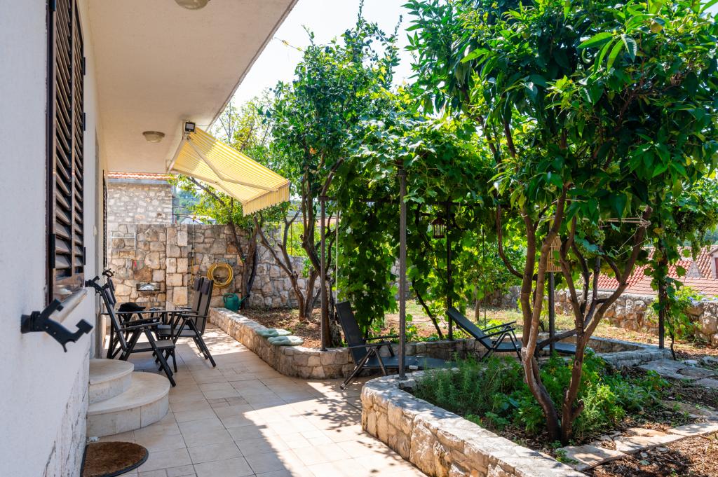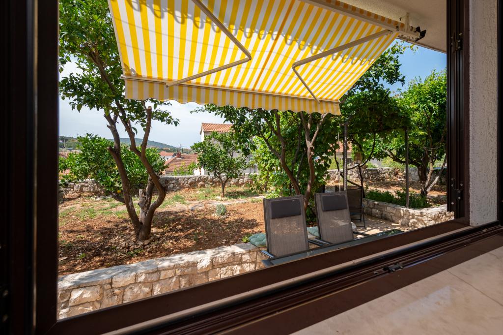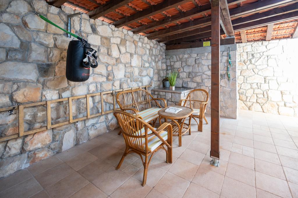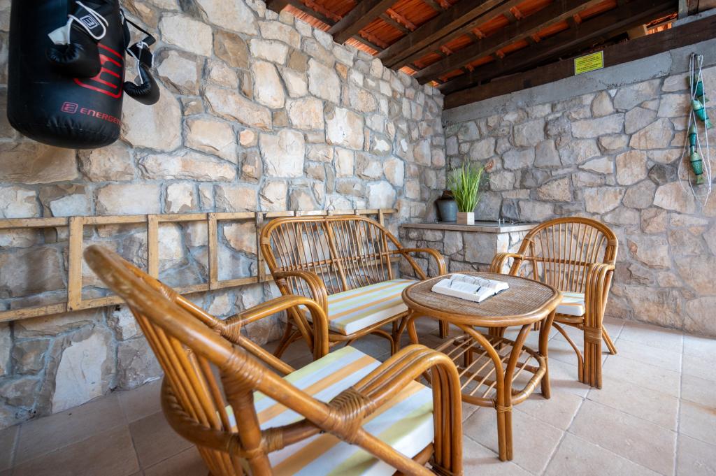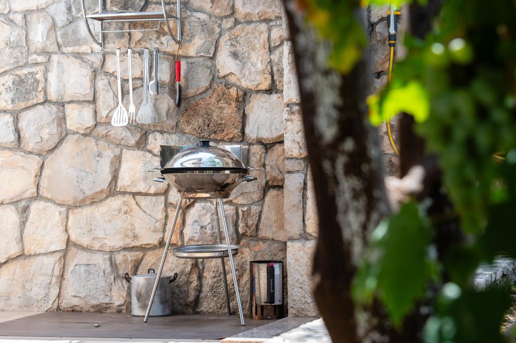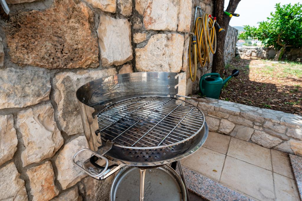 La maison de vacances Ines est située au cœur de la pittoresque ville de Drvenik Veliki, une île paisible près de Trogir et de l'aéroport de Split, auquel elle est reliée par un ferry régulier. Cette charmante maison offre calme et intimité grâce à ses hauts murs d'enceinte, et son jardin offre une vue magnifique sur la baie. Elle est idéale pour ceux qui recherchent une escapade loin du quotidien et souhaitent profiter du silence, du soleil et de la brise marine. Le grand jardin est idéal pour se détendre et se ressourcer : parfait pour un café le matin, un bain de soleil l'après-midi ou une soirée conviviale sous les étoiles. La plage en béton la plus proche se trouve juste à côté de la maison, tandis que des beautés naturelles comme le célèbre « Lagon Bleu » sont à découvrir sur des routes aménagées, accessibles à vélo ou en voiture. L'île de Drvenik Veliki respire une atmosphère méditerranéenne authentique, un air pur et une nature intacte, loin de la foule et du stress ; l'endroit idéal pour se ressourcer.
