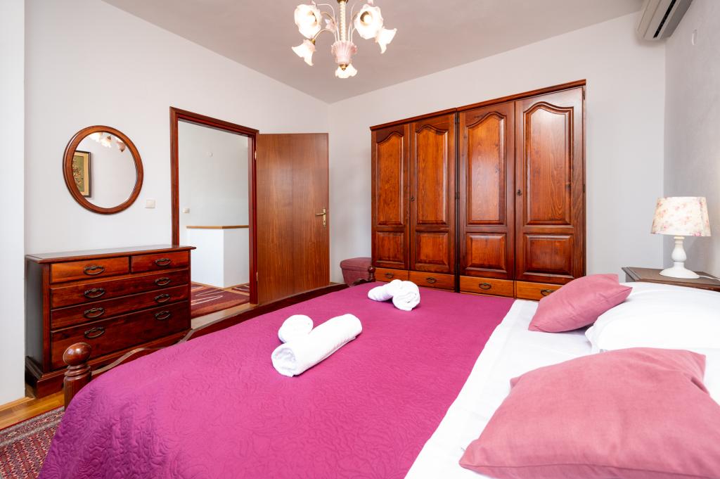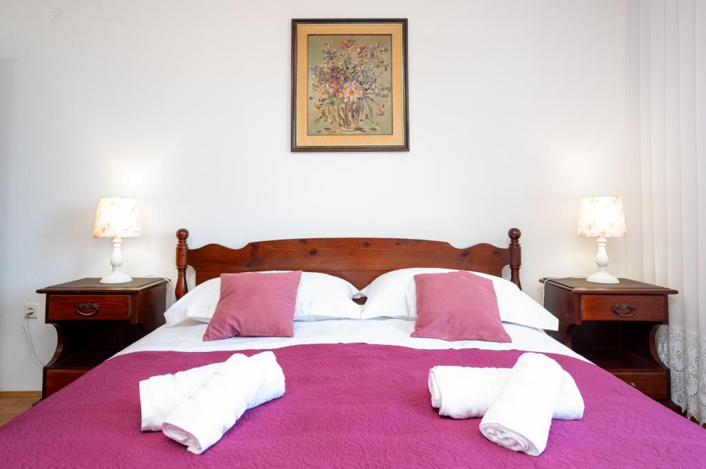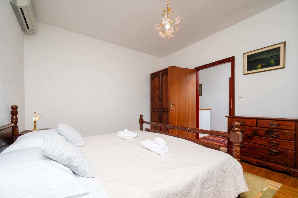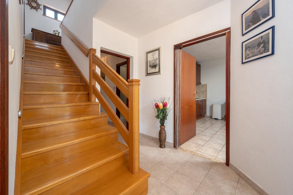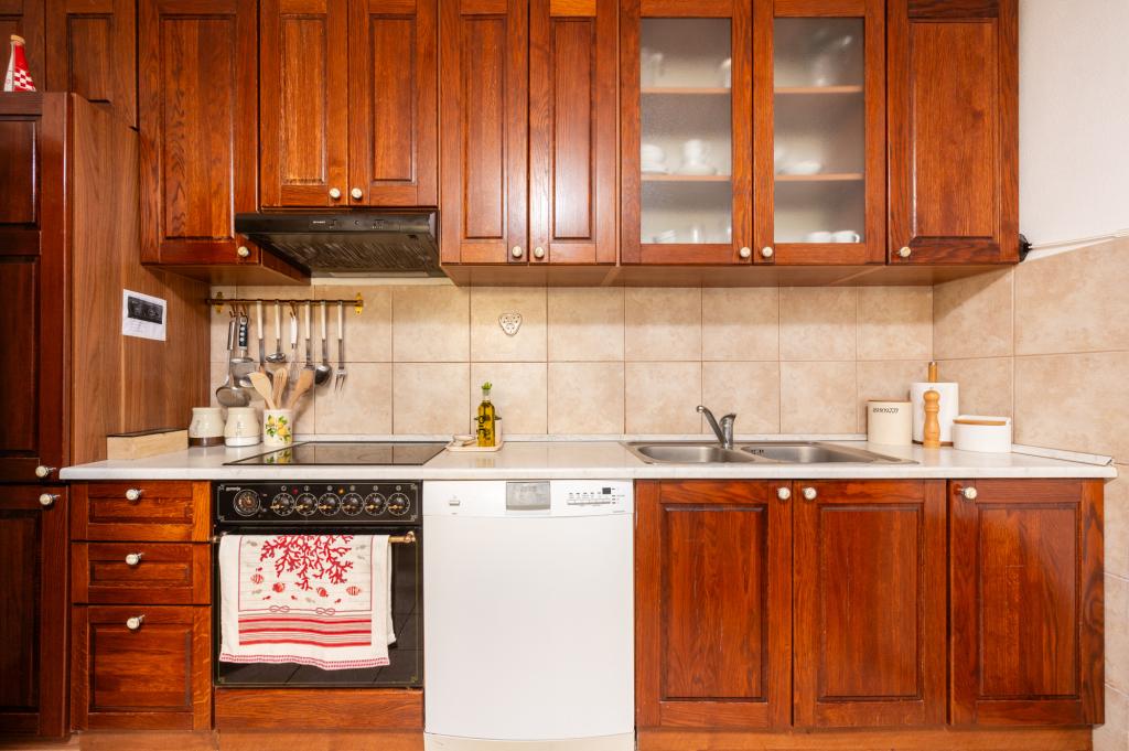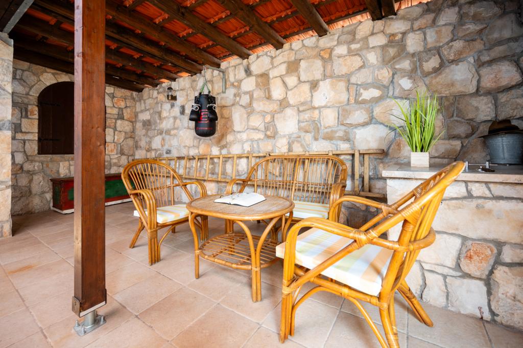 La maison de vacances Ines est située au cœur de la pittoresque ville de Drvenik Veliki, une île paisible près de Trogir et de l'aéroport de Split, auquel elle est reliée par un ferry régulier. Cette charmante maison offre calme et intimité grâce à ses hauts murs d'enceinte, et son jardin offre une vue magnifique sur la baie. Elle est idéale pour ceux qui recherchent une escapade loin du quotidien et souhaitent profiter du silence, du soleil et de la brise marine. Le grand jardin est idéal pour se détendre et se ressourcer : parfait pour un café le matin, un bain de soleil l'après-midi ou une soirée conviviale sous les étoiles. La plage en béton la plus proche se trouve juste à côté de la maison, tandis que des beautés naturelles comme le célèbre « Lagon Bleu » sont à découvrir sur des routes aménagées, accessibles à vélo ou en voiture. L'île de Drvenik Veliki respire une atmosphère méditerranéenne authentique, un air pur et une nature intacte, loin de la foule et du stress ; l'endroit idéal pour se ressourcer.