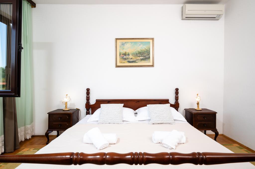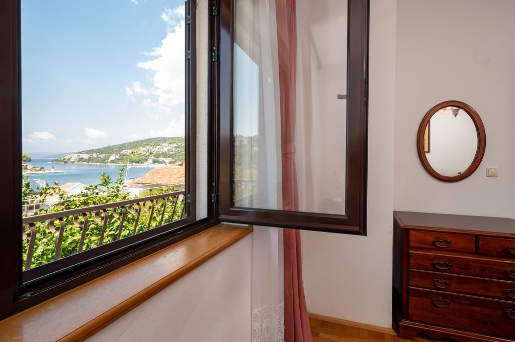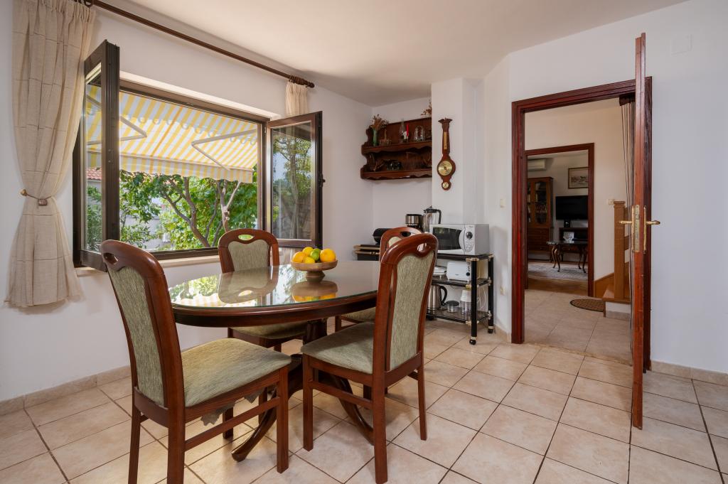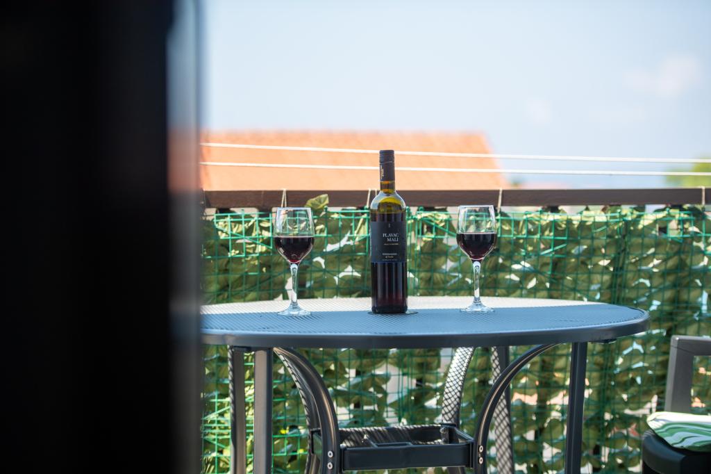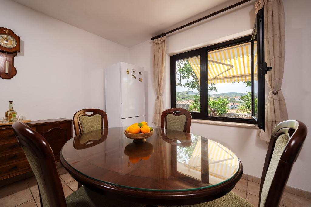Terrasse et jardin avec une vue magnifique. Ines et Damir sont des hôtes très sympathiques et d'excellents hôtes. La maison est exceptionnellement bien équipée et décorée avec goût et amour. Les lits sont confortables. Tout est impeccablement propre et rangé. Le port et la plage sont à une minute à pied, avec une mer cristalline. L'établissement dispose d'une boutique, d'une boulangerie, d'une pizzeria et d'une taverne. On trouve des tavernes et quelques bars de plage à Krknjaṣi. Un endroit idéal pour se ressourcer, loin du tourisme de masse, du bruit et de la pollution…