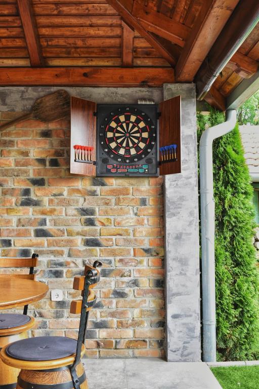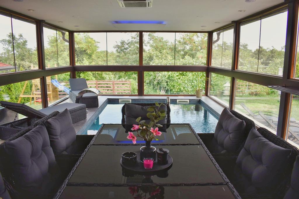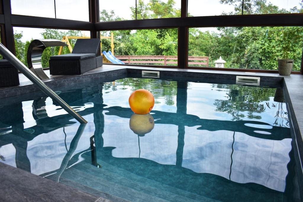 La Villa Edl est une maison de vacances élégante et luxueusement meublée classée 5 étoiles, située à Aljmaš (à 25 km de la ville d'Osijek). L'établissement dispose d'une piscine intérieure chauffée 5x4 m, d'une oasis de bien-être avec sauna infrarouge, d'une cuisine entièrement équipée, d'un salon avec cheminée, d'une terrasse fermée avec table à manger, d'une pièce pour laver et sécher les vêtements, de deux chambres avec lits doubles, et dans chaque chambre il y a un lit supplémentaire (4+2), deux salles de bain. Pendant les mois d'été, vous pourrez vous amuser sur le transat. L'établissement dispose d'une cour paysagée et clôturée, d'un parking gratuit, d'une place de parking couverte.Dans le chalet Rošilj, les clients ont accès à un gril à bois/charbon et un gril à gaz.Pour les plus jeunes, l'établissement dispose d'une aire de jeux pour enfants avec un toboggan et balançoires, fléchettes, badminton, etc. Linge de lit, serviettes, peignoirs, pantoufles, cosmétiques pour l'hygiène personnelle sont à la disposition des clients. Animaux acceptés Capacité : 6 personnes Auto-enregistrement WI-FI