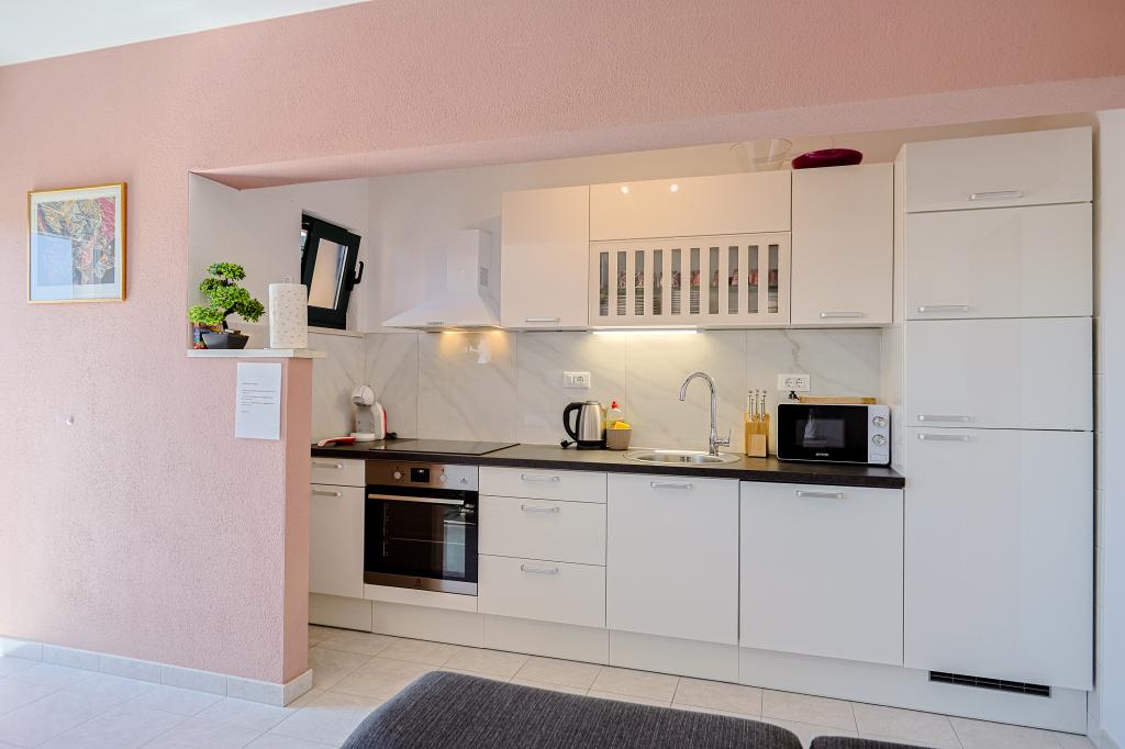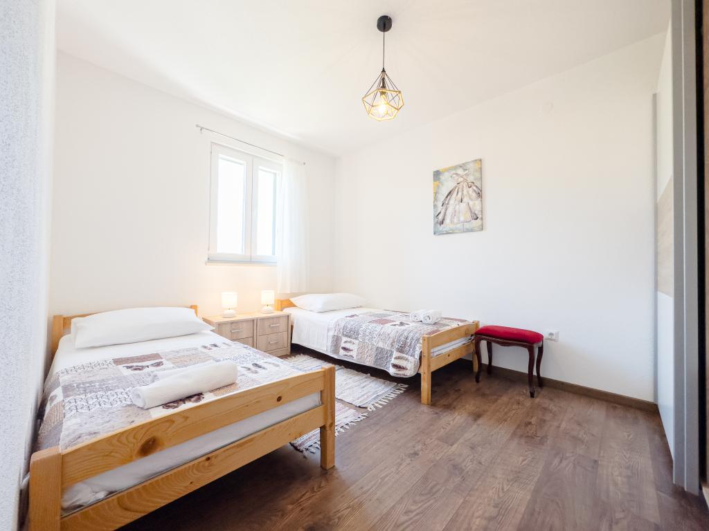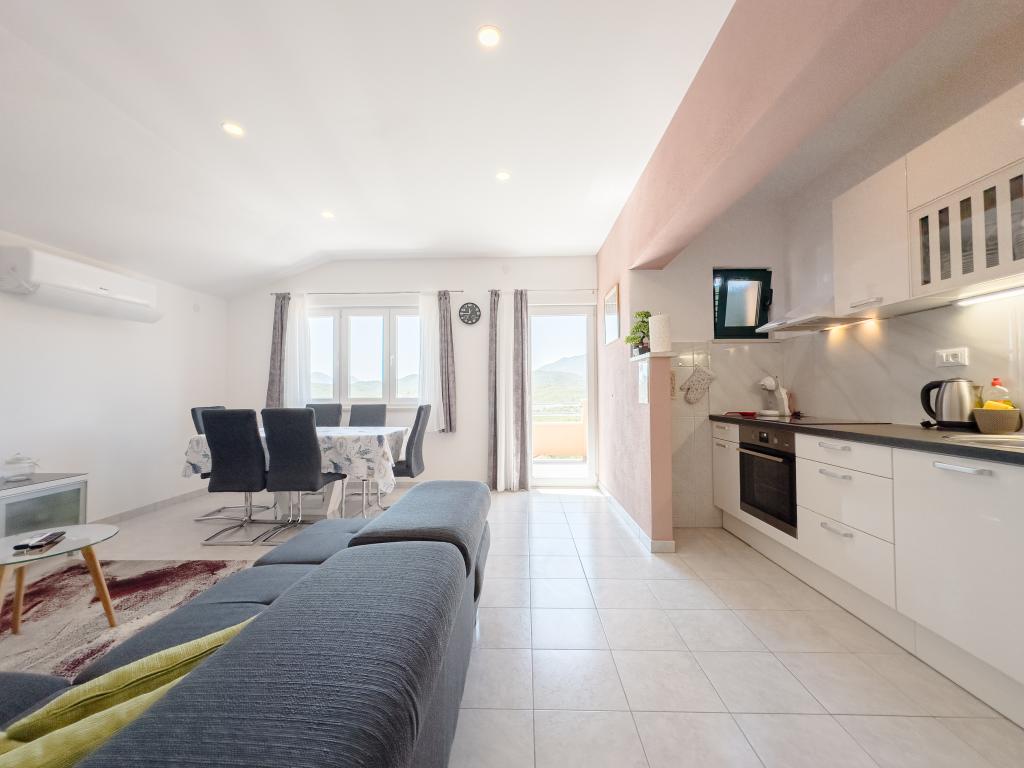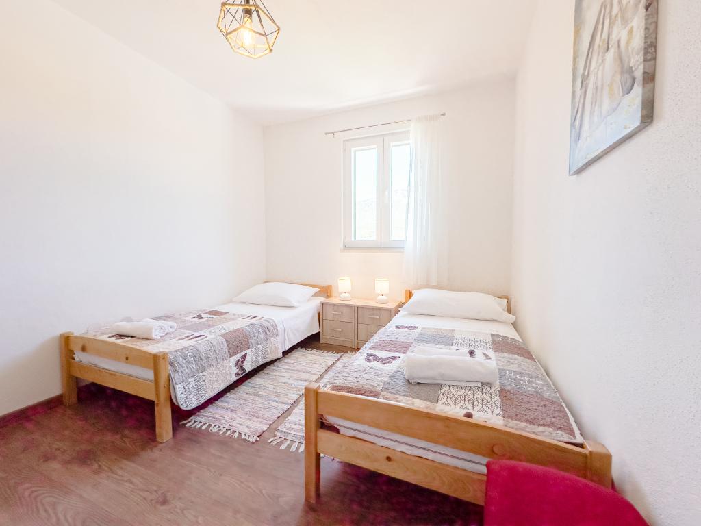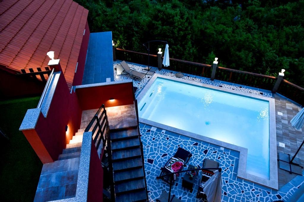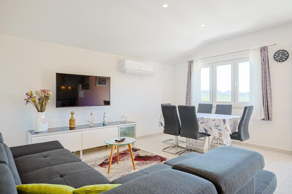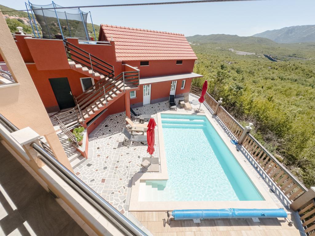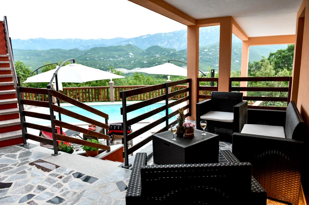 Cette spacieuse maison de vacances offrira un plaisir et une détente complets à 12 personnes. Grand jardin avec une piscine chauffée de 7x4 mètres avec massage eau et air pour le plaisir et la détente. À côté de la piscine se trouve une cuisine d'été avec une salle à manger et une salle de bain, qui comprend également un barbecue extérieur. Chaque appartement dispose de 3 chambres, de 2 salles de bains, de cuisines entièrement équipées, de salons spacieux avec téléviseurs intelligents et de balcons donnant sur la piscine et le mont Biokovo. L'offre comprend un trampoline pour les plus jeunes, un barbecue intérieur, 5 places de parking et une grande terrasse. L'unicité de cette propriété réside dans le fait que la maison est située dans une zone isolée, vous pouvez donc être sûr que vous profiterez d'une intimité totale. L'emplacement de la maison est excellent car elle se trouve à 25 minutes en voiture de la mer Adriatique, à 10 minutes en voiture des commerces, cafés et restaurants. Les villes de Makarska, Imotski, Split, Omiš, Međugorje, Makarska et d'autres endroits attrayants se trouvent à moins de 20 minutes à 1 heure de route de chez nous. L'entrée de l'autoroute est à 9 km.