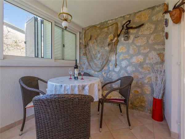 Maison de vacances entièrement meublée de 50 m2 avec un jardin de 240 m2, parking sécurisé pour 2 véhicules, à seulement 70 m de la plage de galets naturelle surplombant l’île de Krk. Situé dans un environnement calme propice au repos et à la détente, il se compose d'une chambre à coucher, d'une salle à manger spacieuse, d'une cuisine séparée, d'un grand salon et de deux terrasses entourées de verdure.