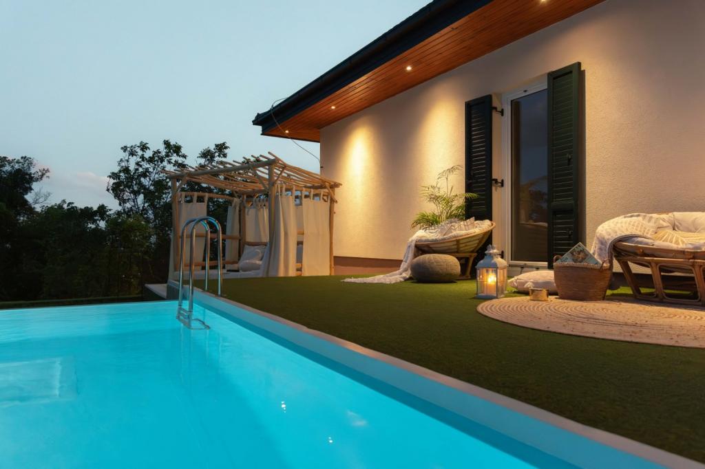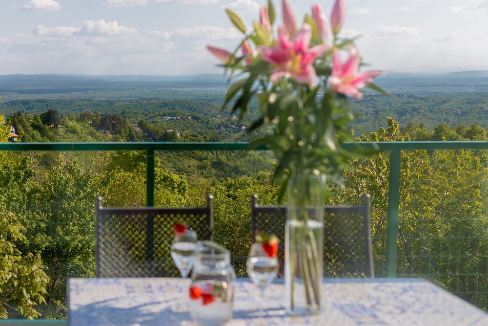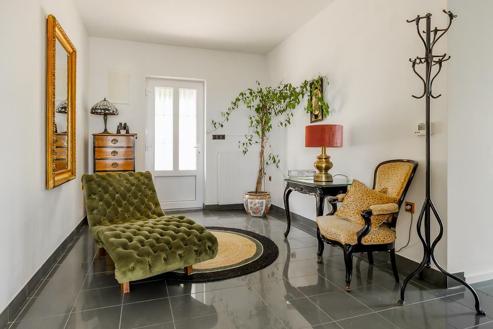 Villa Plešivica view est une combinaison de style industriel traditionnel, local et moderne, entouré d'une nature intacte. Une attention particulière est portée aux détails qui confèrent à la villa élégance, légèreté et chaleur. Bien qu'il s'agisse d'un nouveau bâtiment, il a été entièrement rénové en 2022. Il se compose d'un hall d'entrée unique, d'un spacieux séjour, de deux chambres, d'une cuisine séparée, de deux magnifiques salles de bains et d'une terrasse feu. La spécialité de cette villa est les panneaux de verre qui offrent une vue dégagée sur le ciel et les pentes féeriques des vignes et des vergers. Le terrain de la villa elle-même se compose d'une piscine à débordement, de quatre terrasses différentes et d'un charmant belvédère. Tout ce qui précède est encadré par plus de 3 000 m2 de zones herbeuses bordées d'arbres fruitiers autochtones et d'une riche végétation. La villa propose également une oasis de spa et de bien-être. La décoration de la villa elle-même est éclectique et représente une combinaison de mobilier design contemporain associé à des pièces restaurées art déco et art nouveau qui font partie du patrimoine familial.