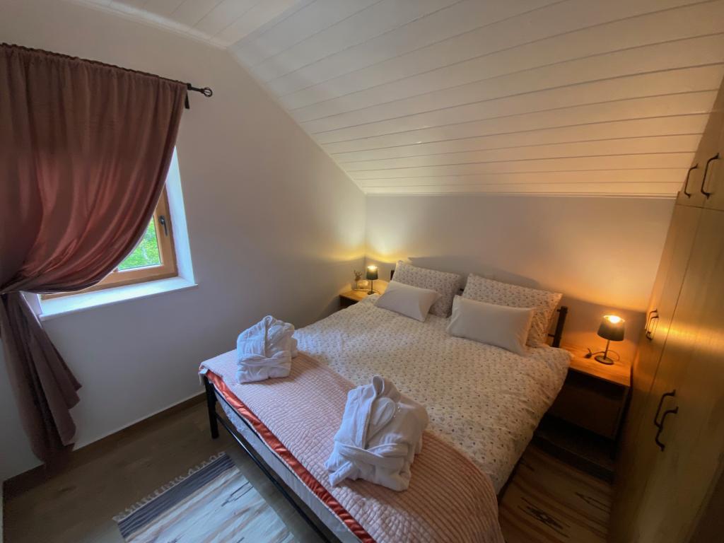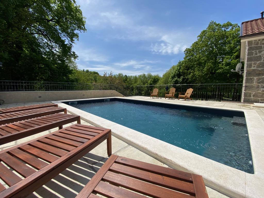 Maison en pierre récemment rénovée, située dans l'arrière-pays de Novi Vinodolski, à seulement 10 km de la plage de Klenovica. La Casa Tilia dispose de sa propre piscine privée de 32 m² et d'un sauna finlandais. Entourée de tilleuls centenaires (lat. tilia), elle est idéale pour se détendre pendant les chauds mois d'été, car elle est située à 800 m d'altitude. Si vous souhaitez être proche de la mer, vous pourrez rejoindre la plage en 10 minutes. Le village d'Omar, où se trouve la Casa Tilia, est connu pour ses Labyrinthes Célestes, d'où l'on offre une vue imprenable sur toute la baie de Kvarner, et pour sa chapelle de verre abritant d'anciens villages. Des sentiers de randonnée mènent du village à des sommets plus élevés (Kolevrat 1036 m), où vous pourrez croiser de magnifiques chevaux se promenant librement dans la forêt. La maison est idéale pour une famille ou un groupe d'amis (10 personnes maximum), car elle offre tout le nécessaire pour passer du temps ensemble. Barbecue à gaz extérieur, grande salle à manger commune, bar et plusieurs espaces extérieurs pour se prélasser dans les jacuzzis ou bronzer sur des chaises longues au bord de la piscine.