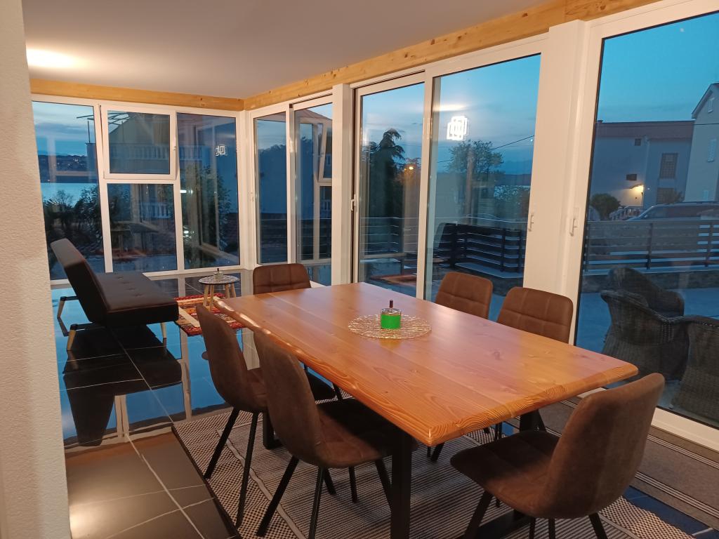 La maison de vacances est située à Klimno, à l'est de l'île de Krk, à seulement 10 minutes en voiture du pont de Krk. Avec sa vieille tradition touristique, Klimno est connue pour sa riche offre de restauration dans des restaurants proposant des fruits de mer et d'autres spécialités avec le vin autochtone obligatoire, des appartements et des villas privées. A 100 mètres de la plage dans la paisible ville de Klimno sur l'île de Krk, se trouve une luxueuse maison 5* de 200 m2 avec une grande piscine d'hydromassage pour 6 personnes, une terrasse bien exposée et un jardin. Si vous souhaitez profiter cette année de vacances en toute intimité avec une touche de luxe et à proximité de la mer, choisissez cette maison de vacances qui a tout ce dont vous avez besoin pour un séjour agréable et sans soucis. A l'étage, il y a 3 chambres doubles avec salle de bain privée, télévision et chaque chambre a accès à un balcon. Vous pouvez commencer vos matinées avec une vue sur la baie ensoleillée. Au rez-de-chaussée se trouvent une cuisine équipée moderne et un séjour qui s'ouvrent sur une belle terrasse vitrée couverte et un espace extérieur.