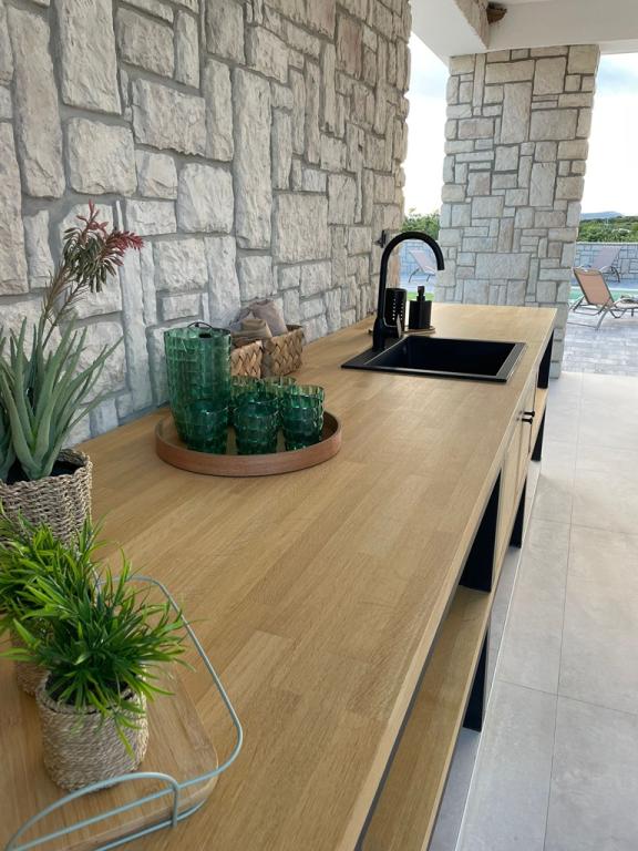 Construite en 2024, une toute nouvelle villa entièrement et équipée de façon moderne dans la capitale du meilleur fromage de brebis du monde, Kolan sur l'île de Pag, offre une combinaison parfaite entre détente et gastronomie de haut niveau. Situées à 1500 mètres de la mer et de toutes les commodités nécessaires, elles offrent un grand confort et la possibilité de se reposer. Dans un emplacement parfait, avec une vue magnifique sur la réserve ornithologique Kolanjsko blato, avec une superbe piscine et un sauna confortable, il offre à nos clients d'excellentes vacances dans quatre chambres équipées de façon moderne et dotées de toutes les commodités nécessaires.