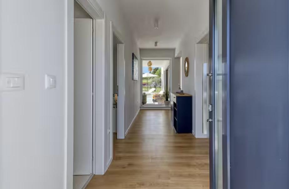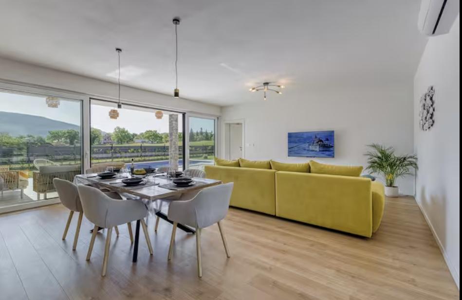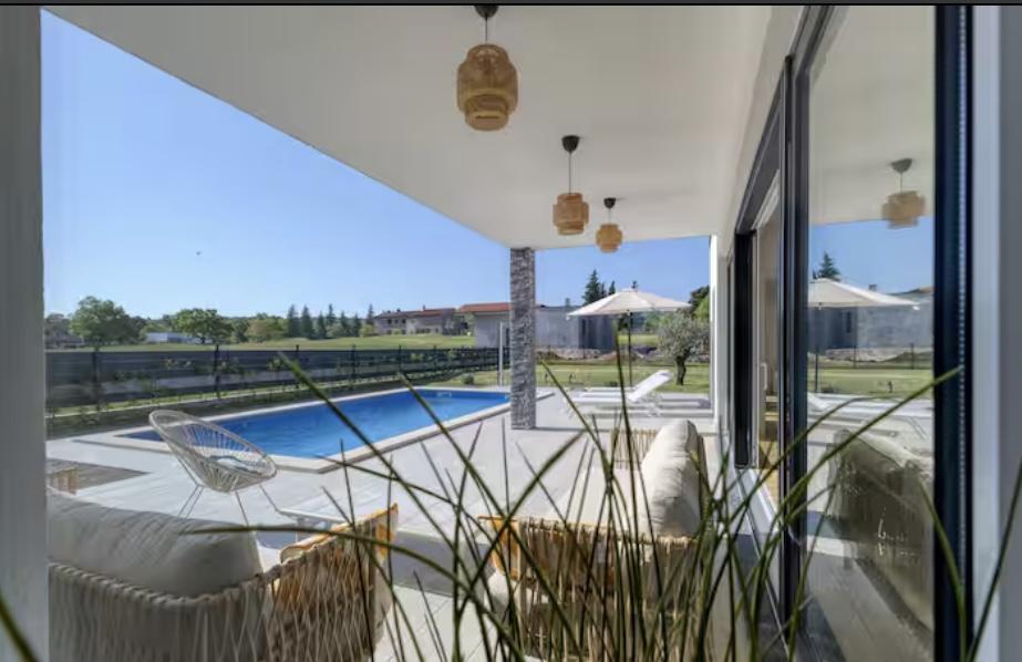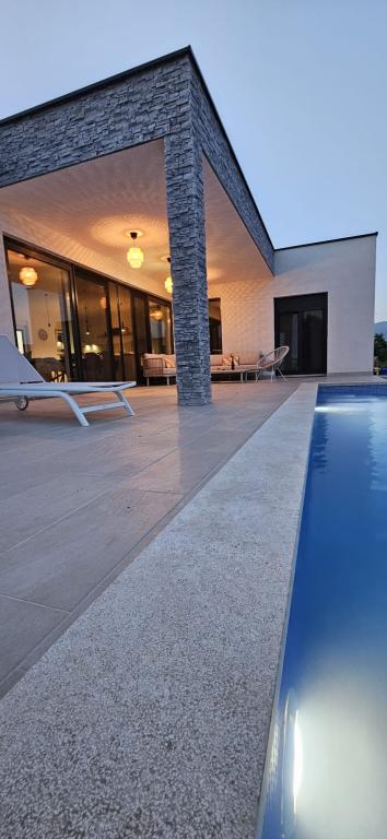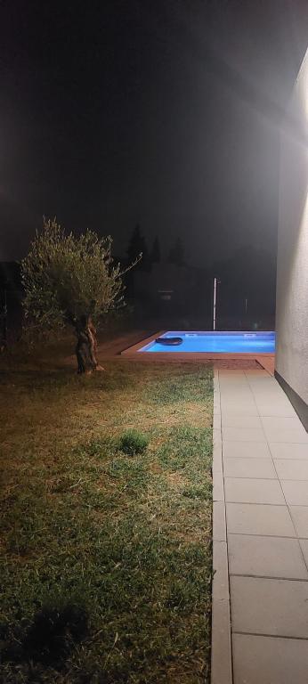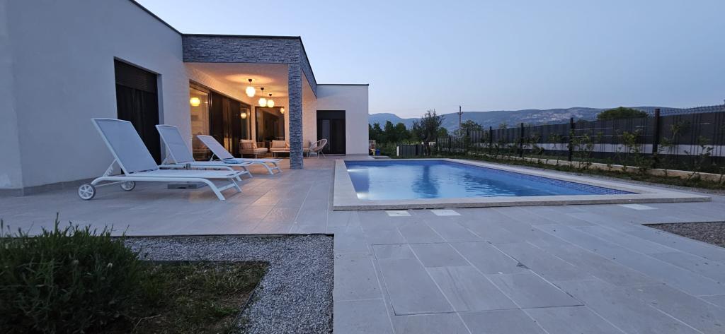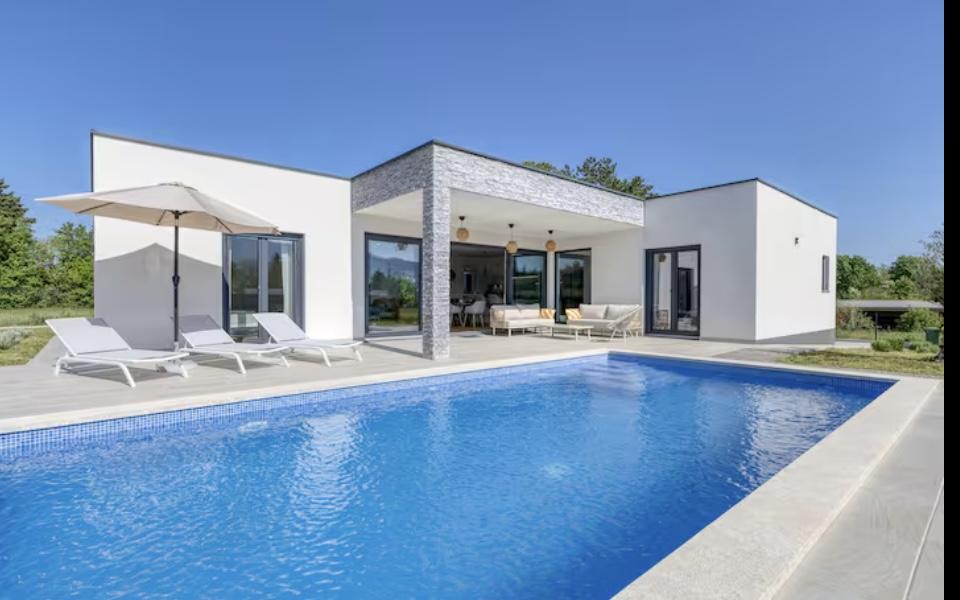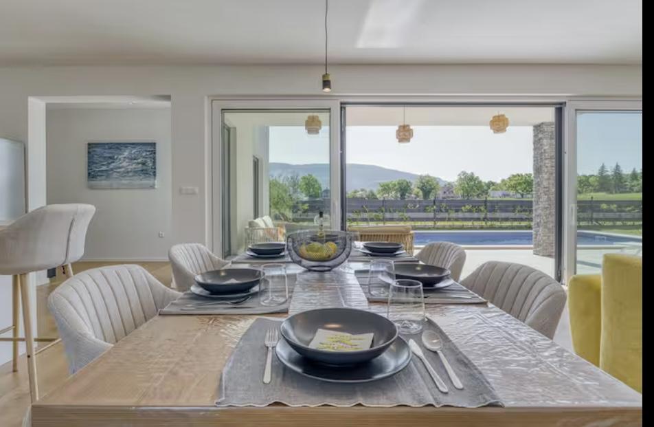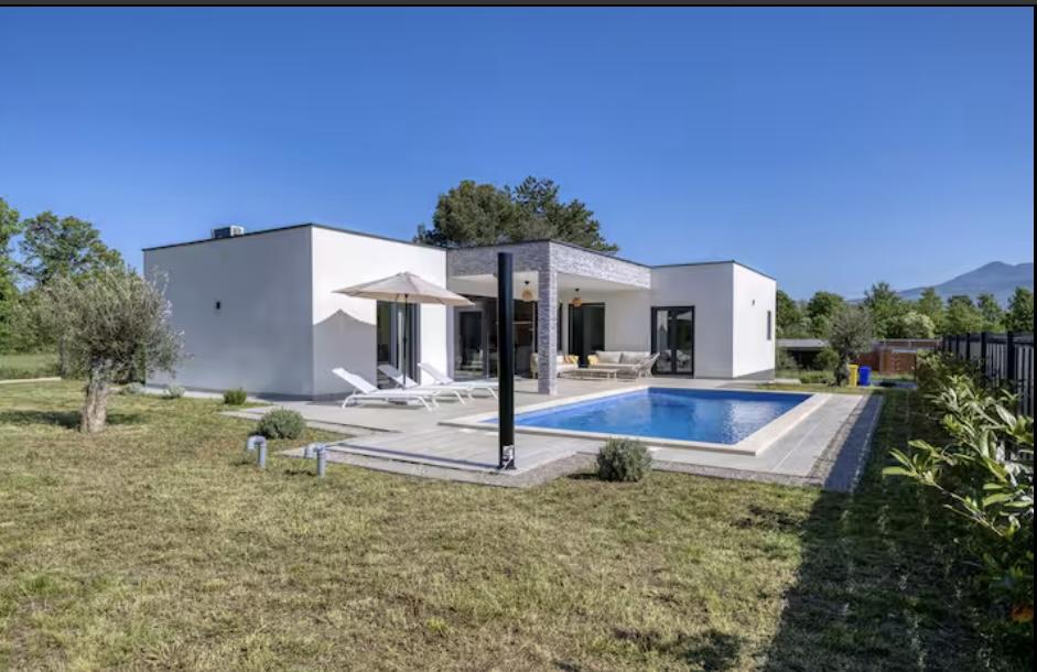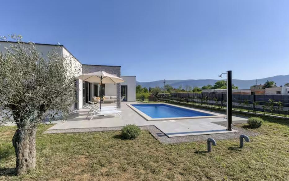 La Villa Marina est située dans le paisible village de Blaškovići, juste à côté de la ville pittoresque de Kršan. Cette maison moderne de plain-pied récemment construite est un endroit idéal pour échapper à l'agitation de la ville et se détendre dans un environnement naturel. À l'intérieur de la maison, nous trouvons trois chambres spacieuses, chacune avec sa propre salle de bain. Deux chambres ont un accès direct à la terrasse de la piscine. Le spacieux salon avec coin repas et cuisine est entouré d'un mur de verre, offrant beaucoup de lumière du jour. La cuisine est équipée de tous les appareils et ustensiles nécessaires et constitue un endroit idéal pour préparer de délicieux repas. Le salon donne sur une terrasse de piscine partiellement couverte et découverte, et la cuisine donne sur une autre terrasse, de sorte qu'il est possible d'utiliser l'espace au soleil ou à l'ombre, selon l'heure de la journée et de l'année. Les terrasses disposent de meubles confortables, de chaises longues et d'un barbecue, parfaits pour se détendre au grand air et préparer les repas. La Villa Marina bénéficie d'un excellent emplacement, à proximité des villes de Pazin et Labin et de la côte de Rabac.