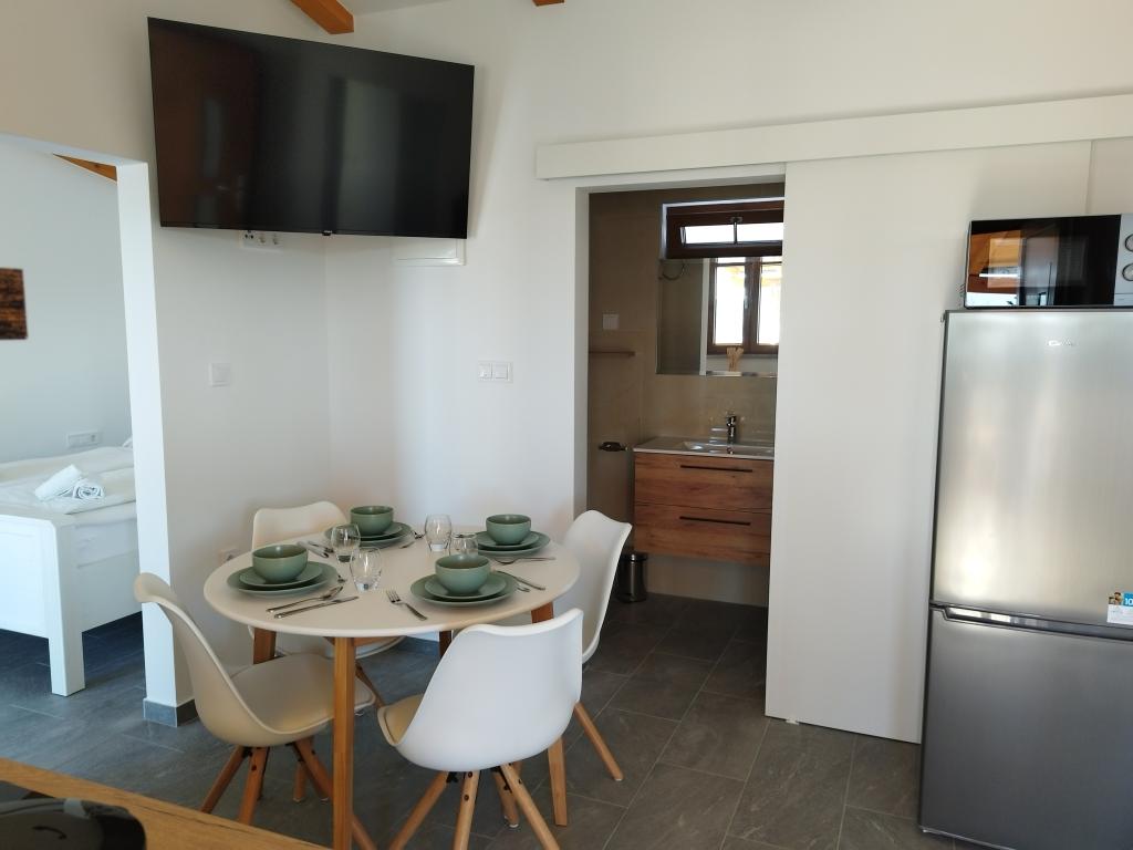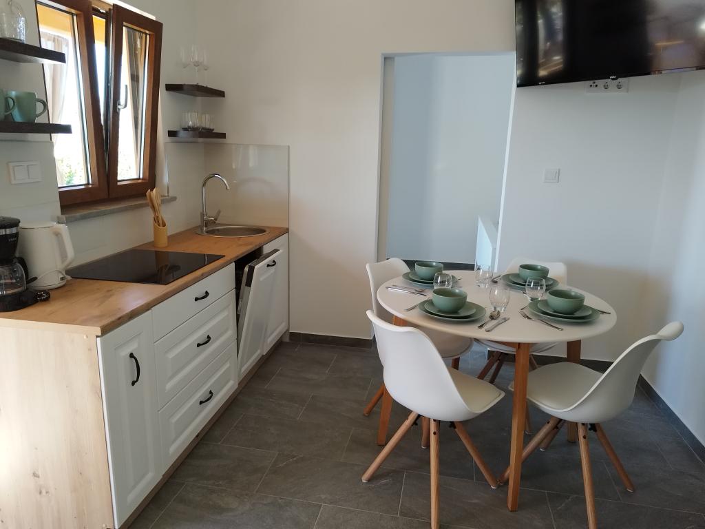 Bienvenue à la maison de vacances « Stipe », entièrement rénovée et située sur une colline paisible surplombant Lopar. Un lieu idéal pour se détendre, loin de l'agitation estivale, tout en restant proche de toutes les commodités. Offrez-vous une véritable pause et ressourcez-vous. Cette charmante maison, récemment rénovée, dispose de 45 m² habitables et comprend deux chambres confortables, une salle de bains élégante et une cuisine moderne entièrement équipée avec lave-vaisselle, micro-ondes, réfrigérateur et tous les ustensiles nécessaires. La salle à manger et le salon avec télévision offrent un espace convivial pour se retrouver. Chaque pièce est climatisée pour votre plus grand confort. Devant la maison se trouve une spacieuse terrasse couverte en pierre (70 m²) avec table à manger, salon de jardin et barbecue : l'endroit idéal pour savourer un café le matin, un long petit-déjeuner, lire un livre ou profiter d'un moment de détente au coucher du soleil.