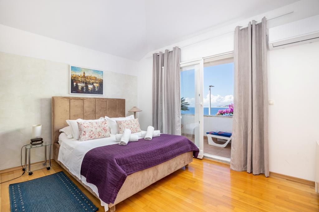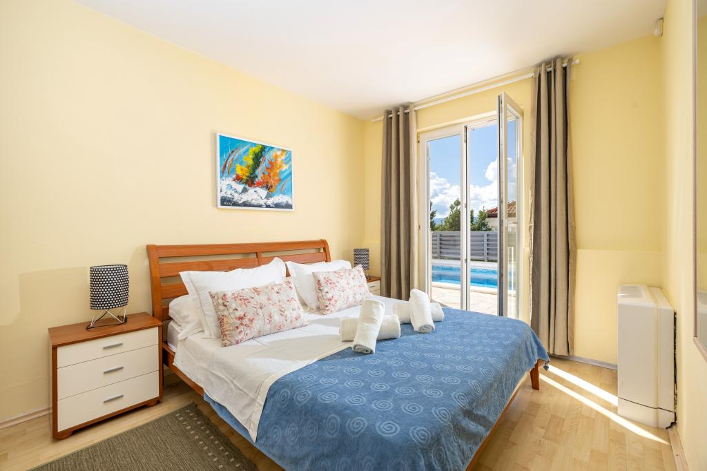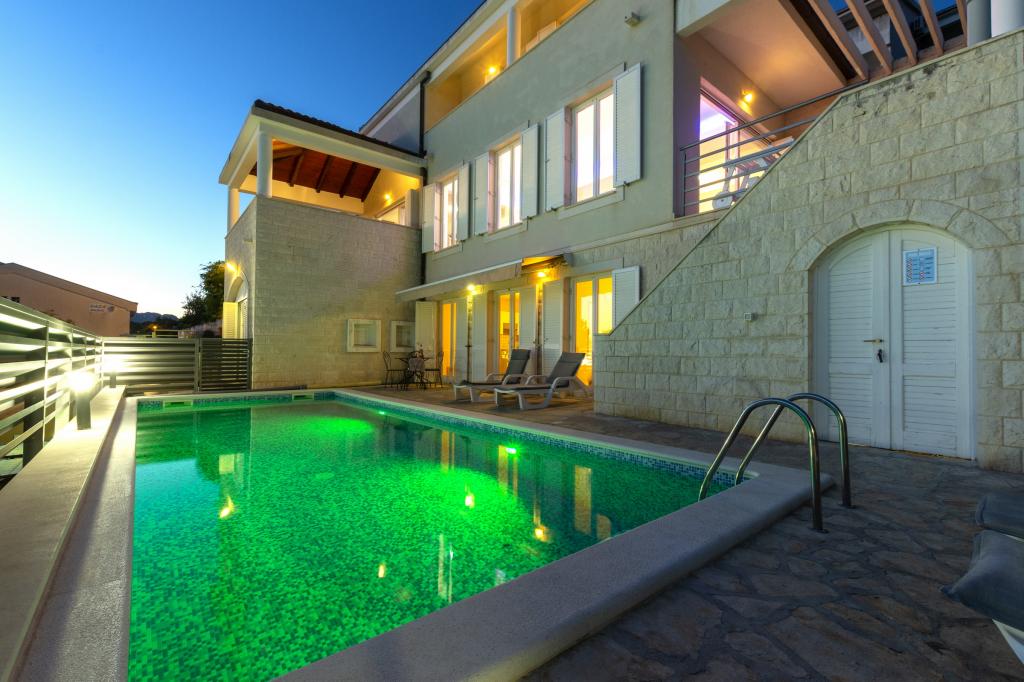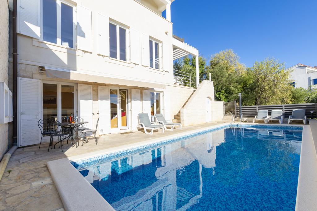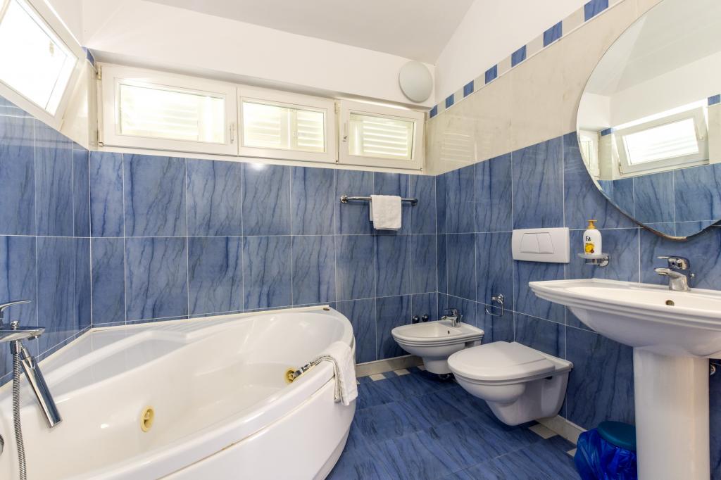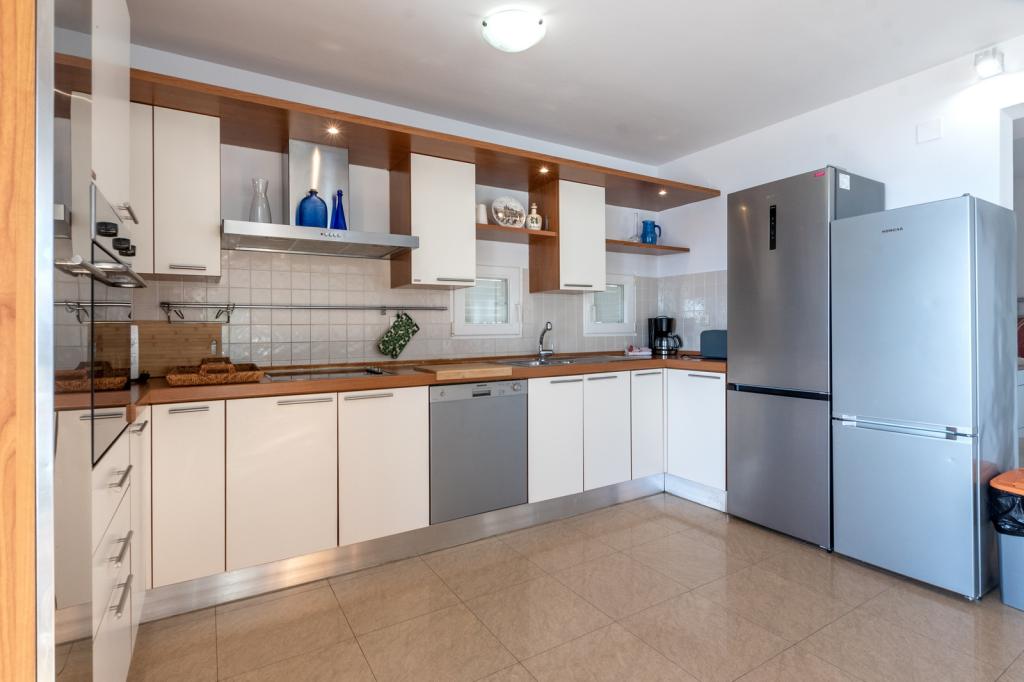 Villa très bien équipée avec piscine et jacuzzi. Une cuisine bien équipée dans le séjour au premier étage : deux grands frigos, assiettes, verres, verres, mixeur, mixeur, râpe, il ne manquait vraiment rien. Une grande terrasse surplombant la mer, où vous pourrez vous installer confortablement le soir. Deux salles de bain à l'étage, un WC au premier étage et une autre salle de bain au rez-de-chaussée est un gros plus pour un grand nombre de vacanciers. Belles plages climatiques à proximité. Aux commerces à environ 1 km, aux restaurants à environ 1 km ou 2 km. Pour Omiś marcher dans un cadre magnifique à environ 4 km. Une chambre sans fenêtre, dont nous ne savions pas très bien, nous avons eu un mauvais lit, mais je pense que le propriétaire pensera à le remplacer. Dans l'ensemble, tout le groupe a été très satisfait du séjour et nous recommandons chaleureusement ce siège.
