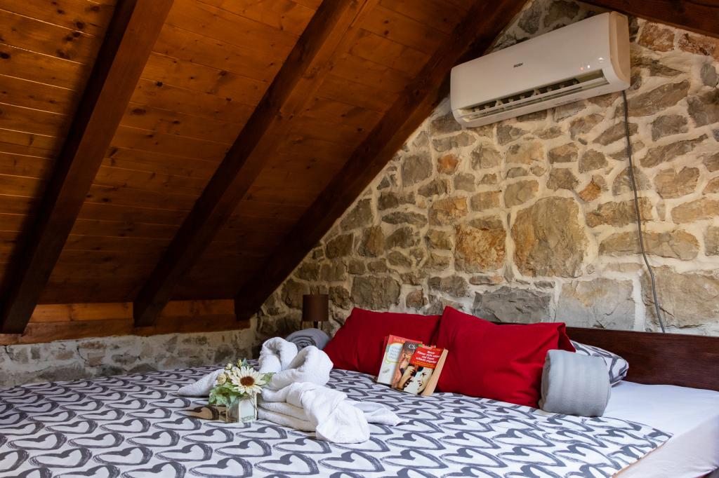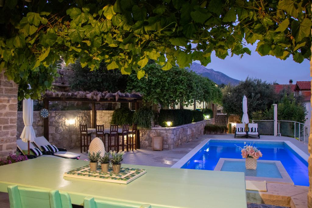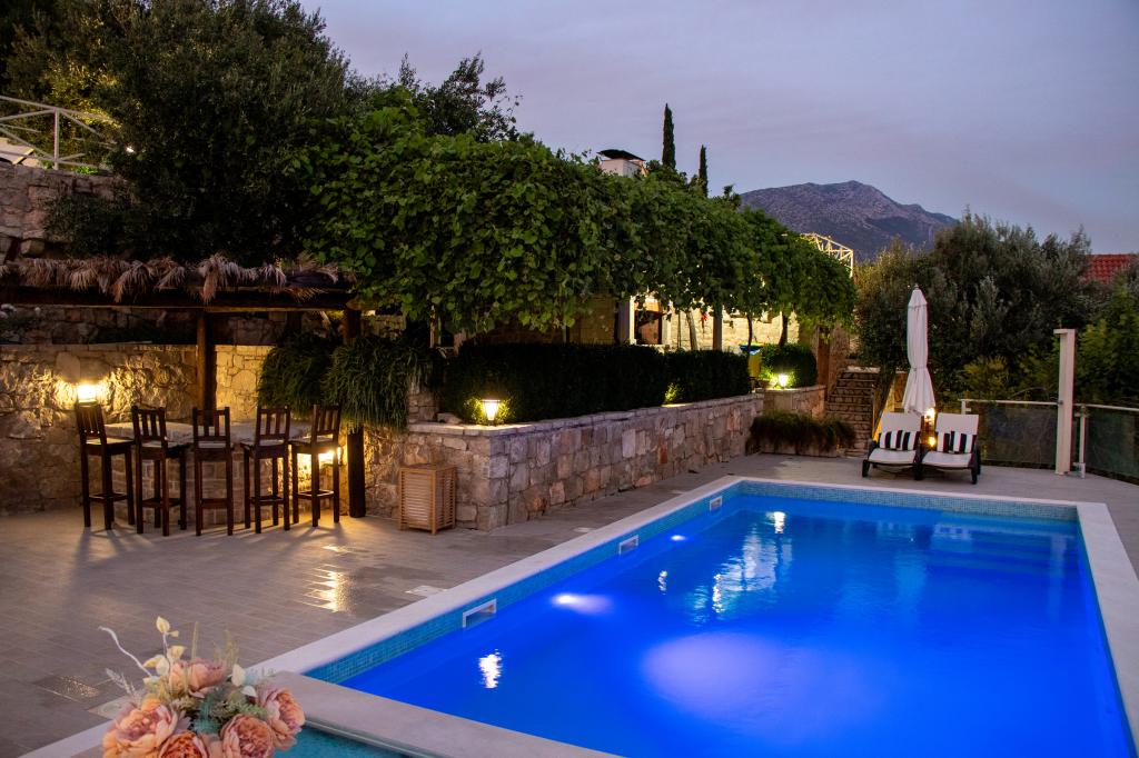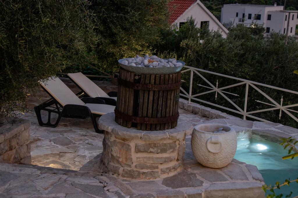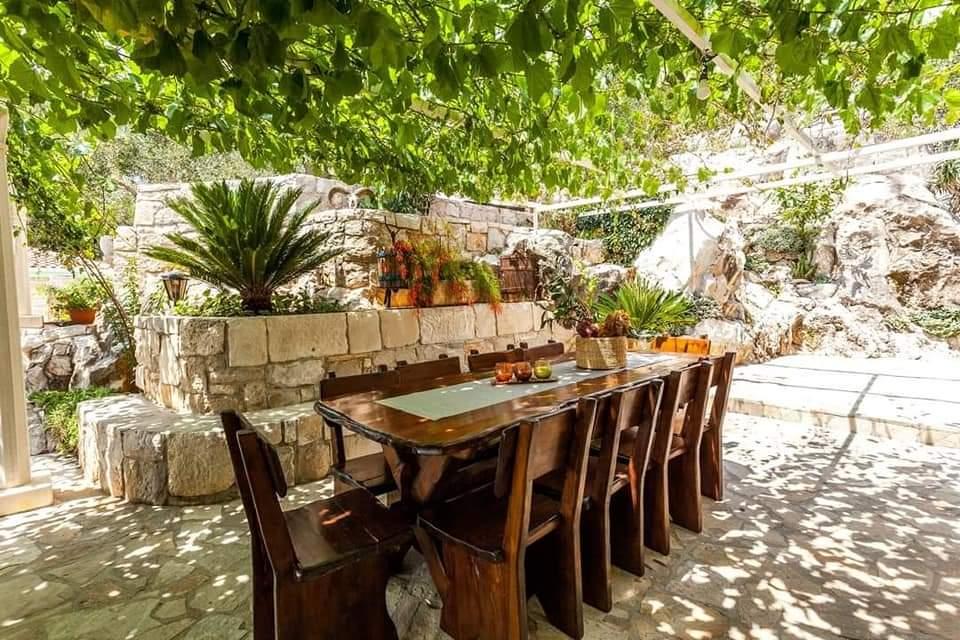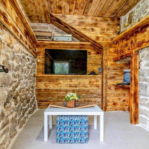 Le silence et l'atmosphère de la Méditerranée d'autrefois, l'intimité et la simplicité combinées à un luxe sans prétention se retrouvent dans l'ancien village de Stanković, construit au XVe siècle, au-dessus d'Orebić. Le bois sombre associé à la pierre blanche, les anciens tons vert pâle des galets et l'intérieur luxueux ne laissent pas les clients indifférents. La villa peut accueillir 14 personnes et dispose d'une piscine extérieure, d'un jacuzzi avec cascade, d'une salle de jeux, d'une salle de sport, d'un parc pour enfants, d'un barbecue extérieur et de beaucoup d'ombre pour une sieste l'après-midi. L'ensemble de la propriété de 2000m2 est idéal pour des vacances tranquilles en famille et pour réunir famille et amis. Elle se compose de : 3 maisons - Azur, Bois, Ston. Total-7 chambres. Téléviseurs, climatiseurs, lave-vaisselle et autres appareils électroménagers vous font sentir comme chez vous. MAISON EN BOIS-4 PERSONNES!! Le village de Stanković est une base idéale pour explorer l'île ou vous pourrez vous détendre lors d'une promenade dans la nature avec vue sur la mer qui sent bon la végétation méditerranéenne. Vous êtes à seulement 15 minutes de la ville et de la plage, tout en profitant de notre trésor caché.