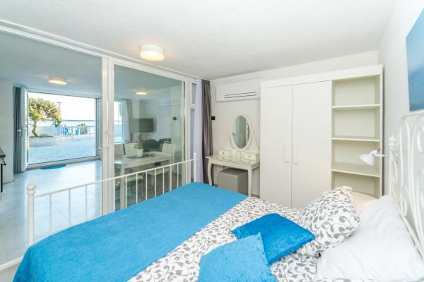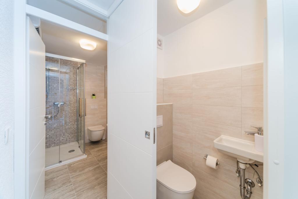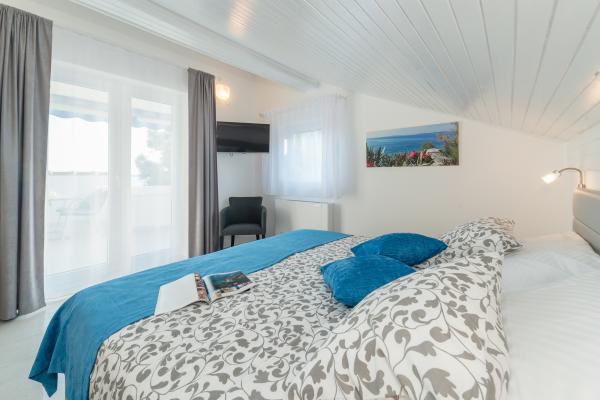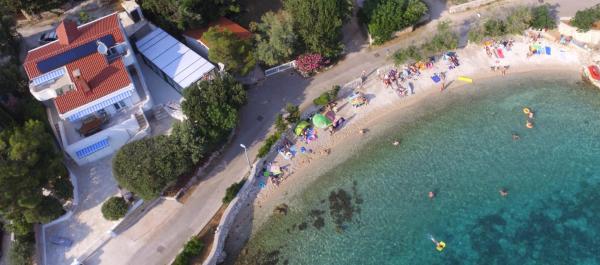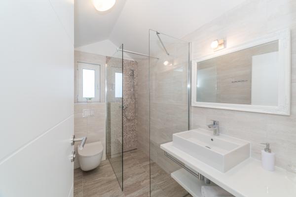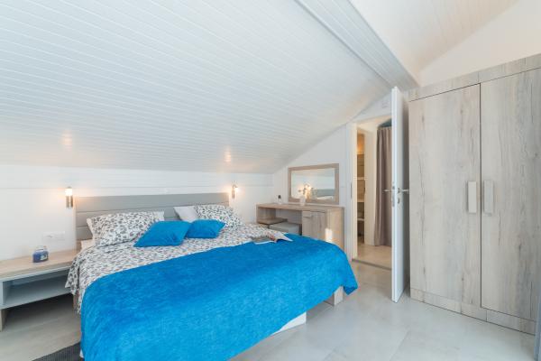 Agréable villa équipée et entièrement moderne avec piscine à Mandre, île de Pag, à 70 km de Zadar. Il se trouve à 120 m du centre ville. Devant la villa se trouve une belle et longue plage faite de petits galets, le long de laquelle s'étend une promenade. La villa est idéale pour des vacances reposantes en famille et entre amis. Toutes les terrasses de la villa offrent une vue irrésistible sur la mer cristalline et les îles. Dans la cour se trouvent une piscine couverte et chauffée avec nage à contre-courant et massages, une douche extérieure et un solarium avec vue sur la mer et un endroit pour se reposer à l'ombre des pins. La villa a trois étages (rez-de-chaussée, premier étage et grenier), elle peut accueillir 12 personnes. A chaque étage il y a une unité résidentielle avec sa propre entrée, SAT/TV, refroidissement. Chaque unité dispose d'une cuisine, d'une salle à manger, d'un salon et d'une terrasse avec vue mer. Le logement au rez-de-chaussée comprend deux chambres (4 personnes), une salle de bain et un WC. A l'étage se trouvent deux chambres, une salle d'eau, un WC et une autre chambre avec sa propre salle d'eau (6 personnes). Dans les combles il y a une chambre (2 personnes) et une salle de bain