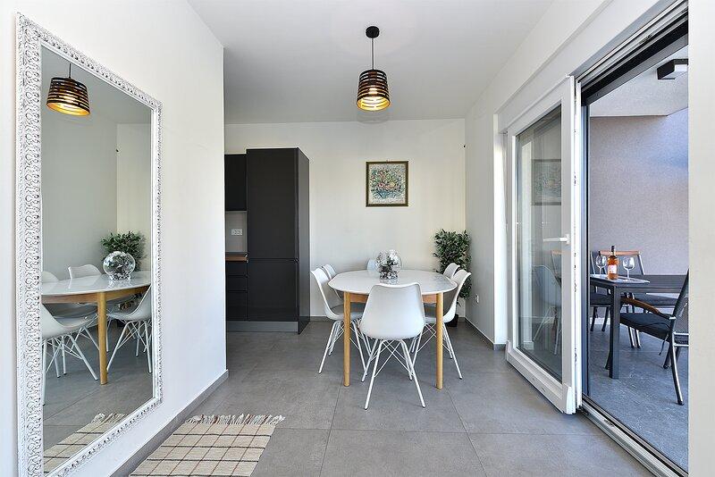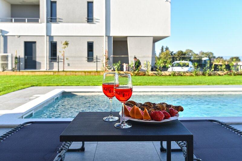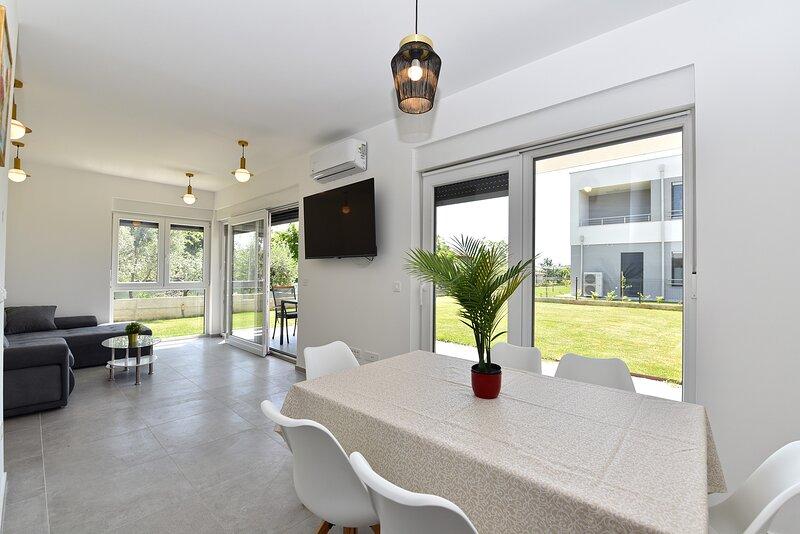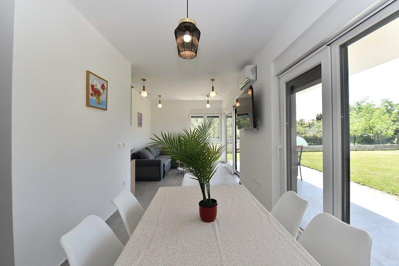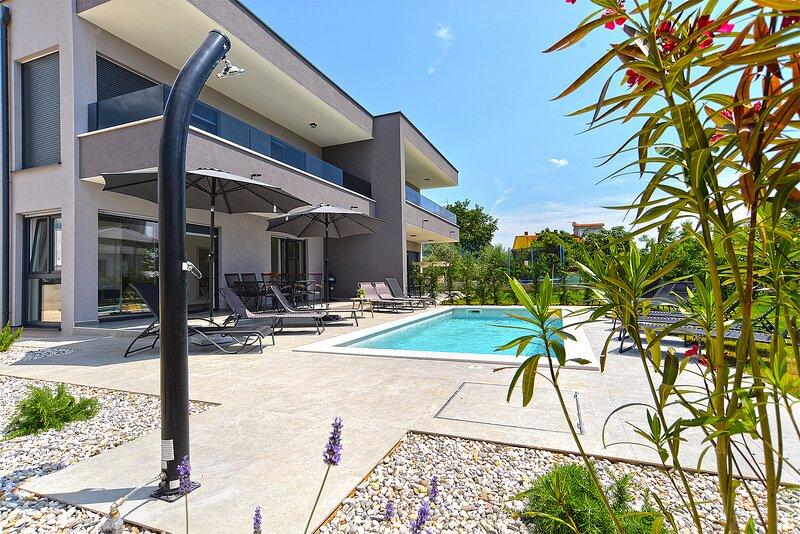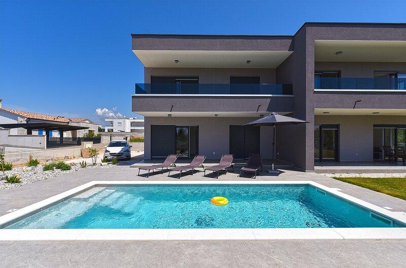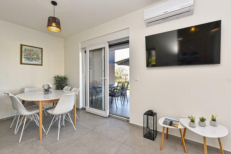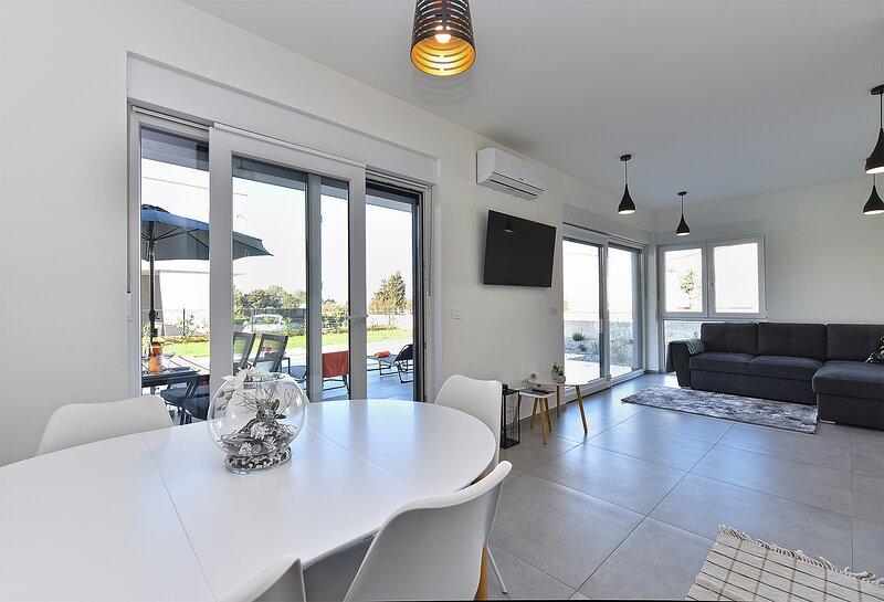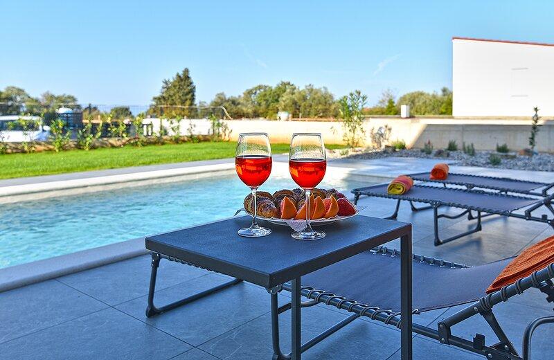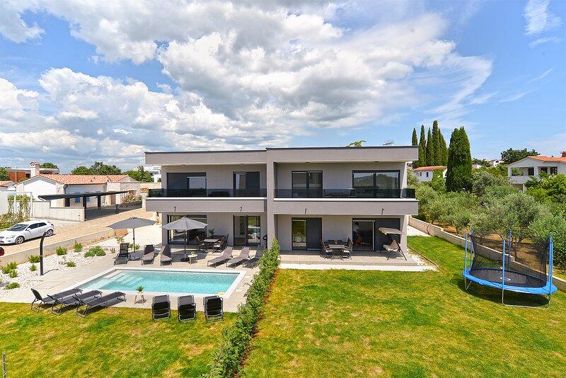 La Villa Lippa avec vue sur la mer vous accueille dans le paisible village de Peroj, près de Pula et du parc national de Brijuni. Cette villa au design moderne est idéale pour des vacances reposantes en famille. L'espace extérieur est idéal pour se rafraîchir sur la terrasse couverte et profiter de la piscine chauffée en été et en avant-saison. La villa offre un hébergement confortable pouvant accueillir jusqu'à 12 personnes dans 4 chambres. La Villa Lippa Peroj vous accueille avec un plateau de charcuteries istriennes et du poisson fraîchement grillé – voir la catégorie photos supplémentaires. La Villa Lippa à Peroj, près de Pula et du magnifique parc national de Brijuni, est une villa moderne et magnifiquement conçue, idéale pour des vacances reposantes en famille avec une vue magnifique sur la mer Adriatique. Confort et style pour toute la famille. La Villa Lippa a été conçue pour offrir un maximum de confort et de détente à un maximum de 12 personnes. Avec son design contemporain et ses équipements soigneusement sélectionnés, elle est idéale pour les familles ou les groupes d'amis souhaitant profiter d'un environnement paisible.