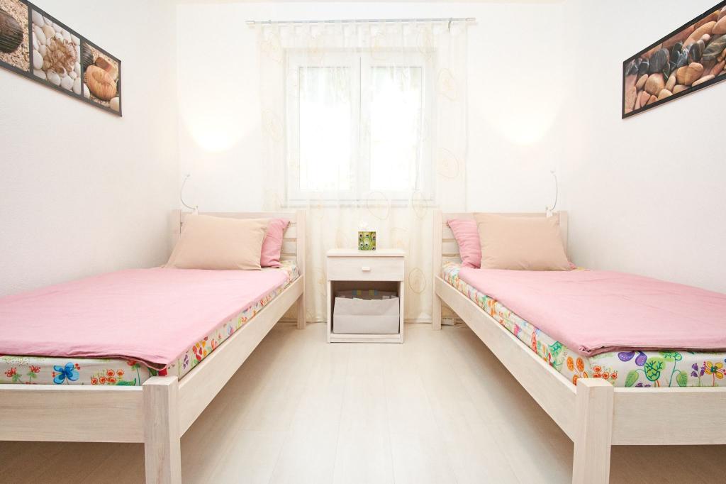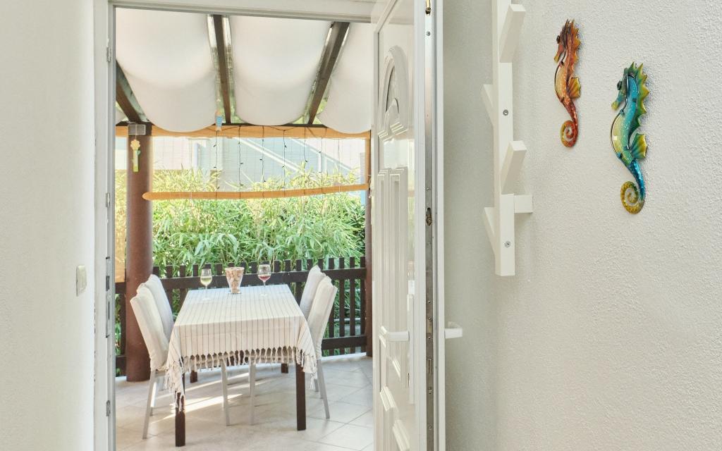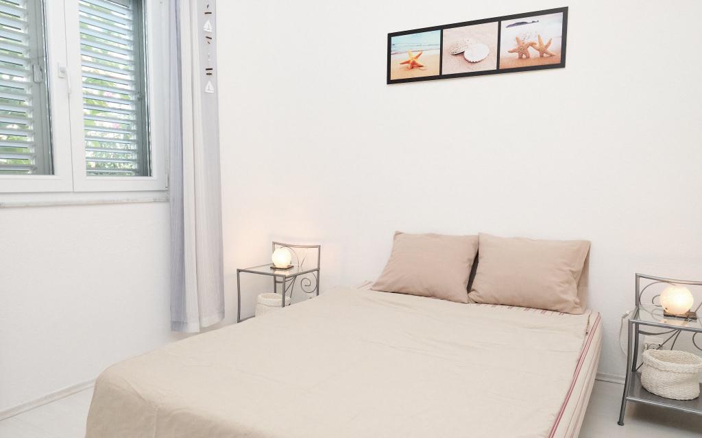 Vous disposez d'une place de parking dans la cour, d'une terrasse latérale cachée avec un barbecue et un local de rangement avec chaises de plage et autres équipements, et d'un jardin à l'arrière de la maison. Il y a une douche solaire de jardin devant la terrasse. Pendant les mois d'été (de mi-juin à mi/fin août), la maison peut accueillir jusqu'à 6 personnes (dans 3 chambres), tandis qu'en dehors de la haute saison, le nombre d'invités est limité à 4 personnes et seulement 2 chambres. Le prix comprend tous les frais touristiques, Internet WiFi (accès illimité), le parking, l'électricité et autres services publics, et le linge de lit et les serviettes sont également fournis.