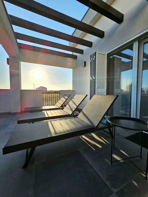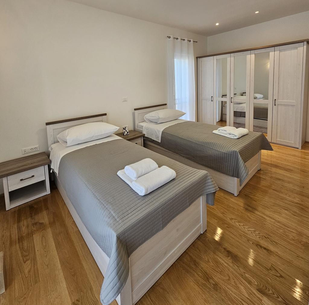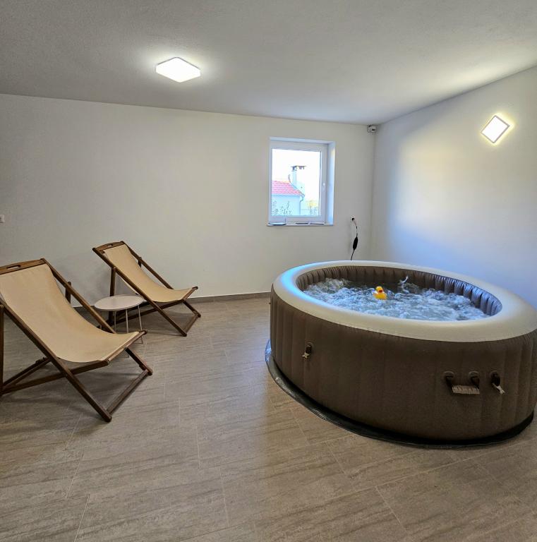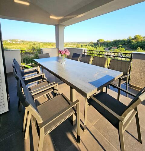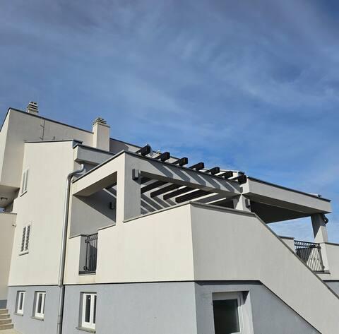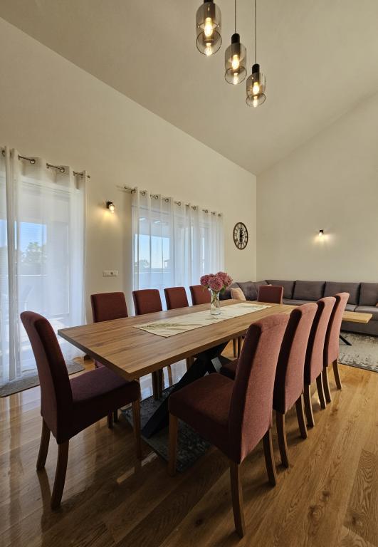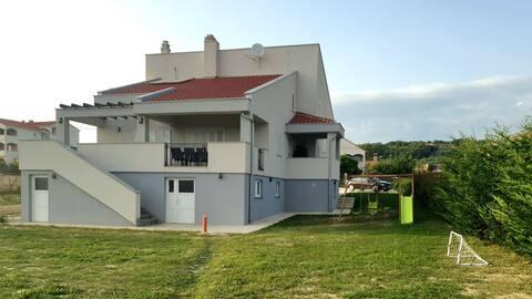 Bienvenue dans votre maison de vacances familiale de 324 m² près de Zadar ! Spacieuse et conçue pour la détente et les loisirs, cette maison offre un cadre idéal pour les parents. Profitez du jacuzzi privé ou de la salle de sport entièrement équipée pour vous dépenser, tandis que les enfants s'amusent dans leur aire de jeux extérieure sécurisée. Pouvant accueillir confortablement jusqu'à 10 personnes, la maison dispose de cinq chambres meublées avec soin, de trois salles de bains modernes, de deux cuisines entièrement équipées, d'un coin repas et d'un salon lumineux avec télévision. Un espace de travail et une buanderie sont également à votre disposition pour les longs séjours. Le jardin privé entièrement clôturé garantit intimité et sécurité, un atout majeur pour les familles avec enfants. L'extérieur est le point fort de cette maison : deux balcons avec transats, une grande terrasse avec barbecue, un espace repas extérieur spacieux et un coin bain de soleil vous permettront de profiter pleinement des douces soirées dalmates. Un parking privé gratuit est disponible sur place.